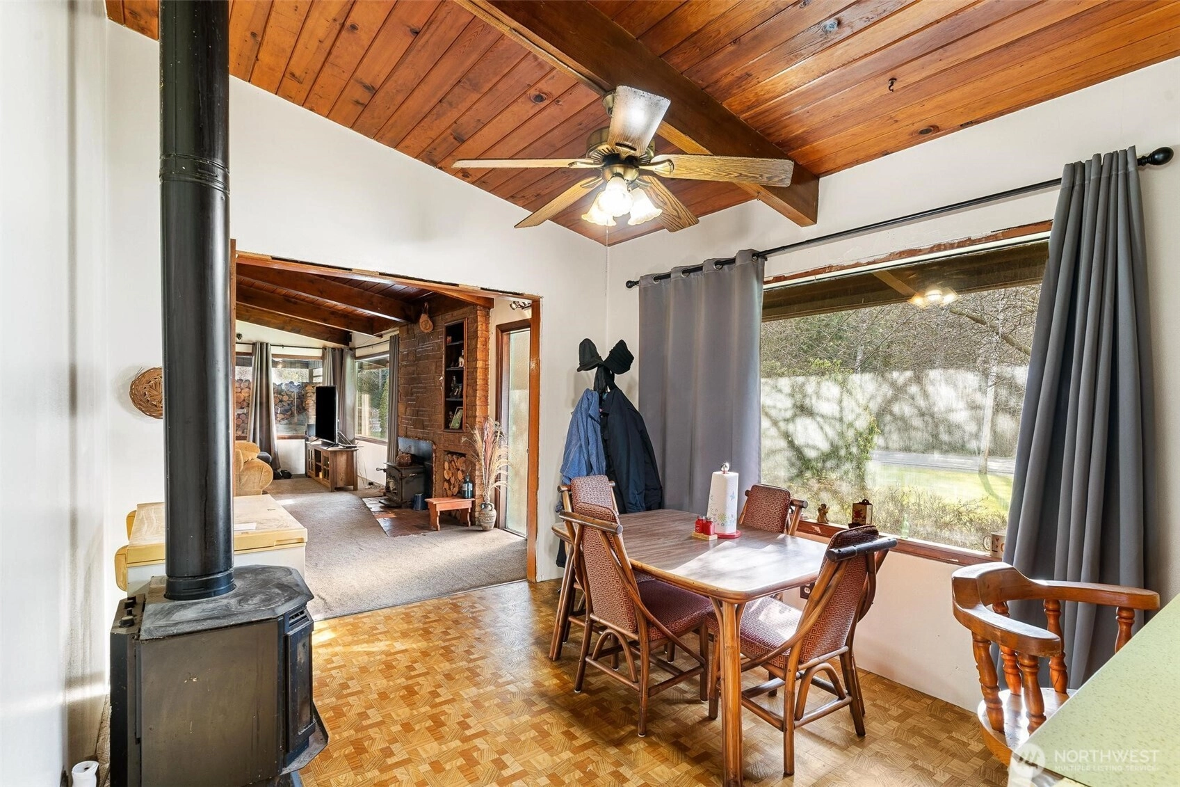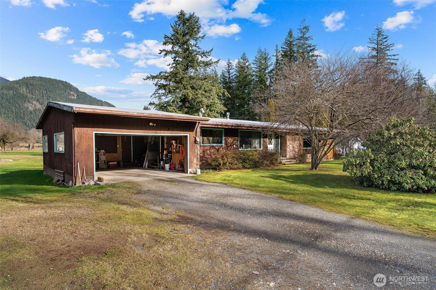 **Investment Alert** This home features warm vaulted ceilings, exposed beams, and a brick fireplace that anchors the main living area. Additionally, there is another wood stove in the basement along with a propane fireplace in the dining area. The propane is not connected or currently being used. Kitchen is nicely sized with lots of counter space. There is a separate laundry room in the garage. Three moderately sized bedrooms. The unfinished basement is huge and ideal for storage, hobbies, or future expansion. Outside, the 1-acre property opens up to a level lawn with mature trees, open sky, and great surroundings. It is situated right on the Scenic North Cascades Highway perfect for outdoor adventures. This home cannot be financed. It needs a new roof and garage door. Needs carpet replaced or wood flooring brought back to life. Has lots of potential for someone willing to put in the work. Home is sold "As Is". Seller not able to make repairs.