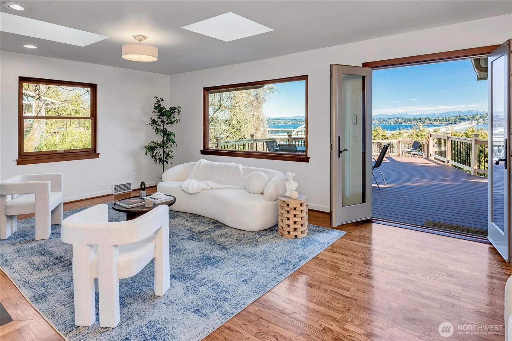 Welcome to your private oasis overlooking Lake Washington! Perched on a dead end street in the lovely Mt. Baker neighborhood, this 4 bed, 1.75 bath home features eye-catching views from every living space in the home. Just off the living room, the views expand from the 1,300 square foot trex deck perfect for entertaining, sunning and watching the Seafair festivities. Bald eagles frequent the nearby trees and 180 degree views include Mt. Rainier, Seward Park, Mercer Island, Bellevue, the Cascades and of course, Lake Washington. The kitchen includes a new fridge and dishwasher while a view of the lake is always available over your shoulder. Two spacious bedrooms and a light filled bathroom complete the main level. A spacious and light-filled family room awaits you downstairs, as well as two more bedrooms, a full bath, laundry facilities and space for an in-home office. The 7,200 square foot lot is incredibly private, giving you the feeling of serenity from the moment you step through the arched entryway through the hedge. Recent improvements over the past couple of years include a new furnace, water heater, gas fireplace insert, motorized exterior sun shades and more. The current owners took care of the bones, so you can focus on the fun stuff - enjoying life and making this gorgeous property your home!