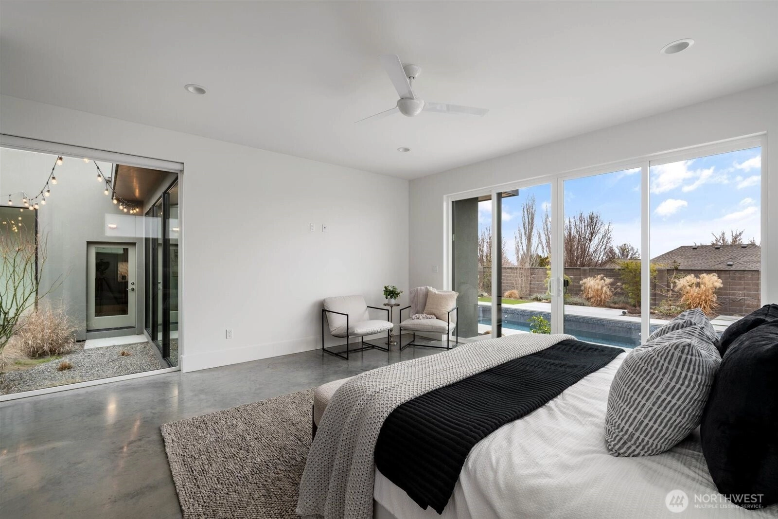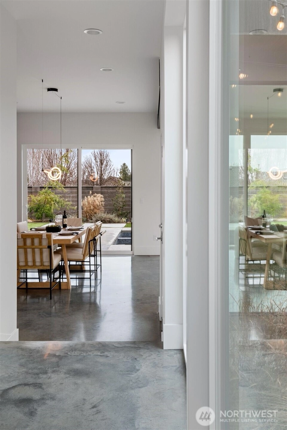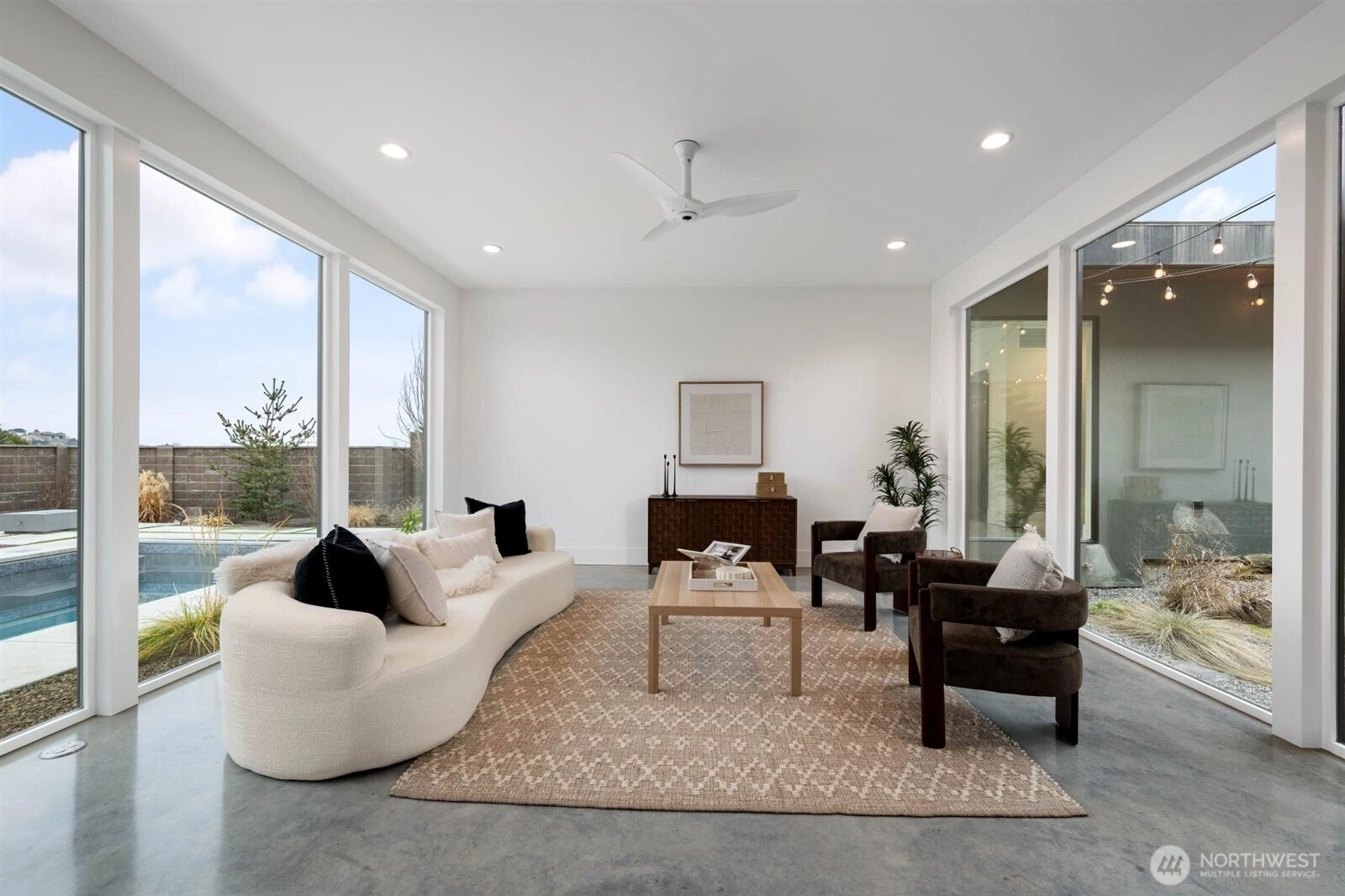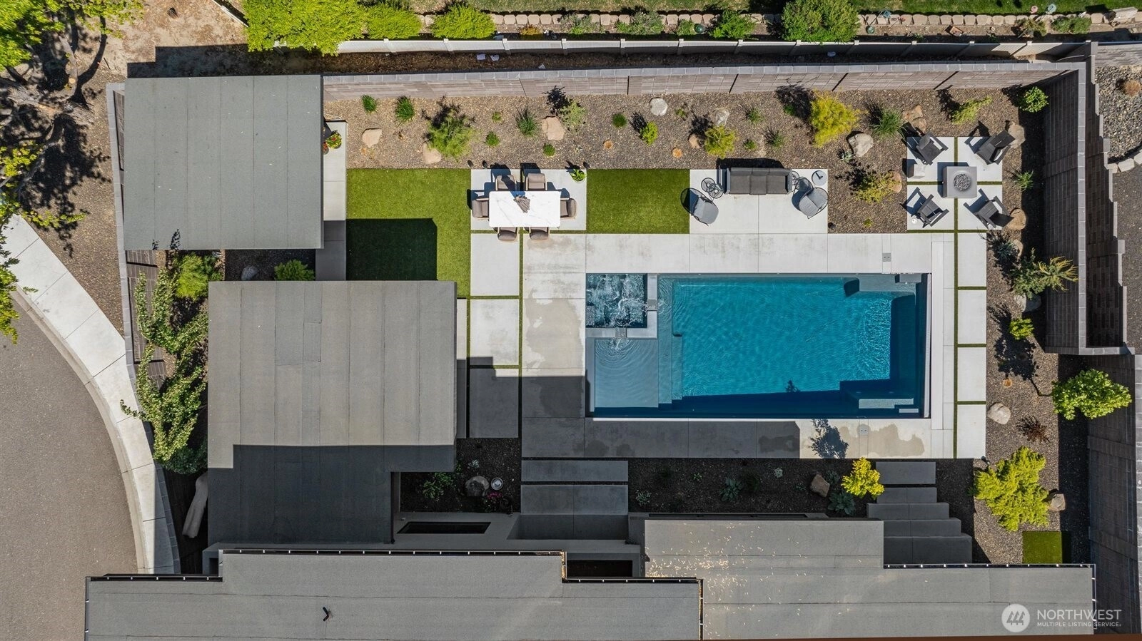 Welcome to 522 Melissa Street, a one-of-a-kind custom modern residence by Dream Builders Homes in the heart of Richland. Designed for elevated living and seamless indoor-outdoor flow, this home blends striking architecture with effortless comfort.Radiant-heated concrete floors span both levels, delivering warmth and efficiency year-round. The professionally designed kitchen features clean architectural lines, integrated appliances, a Miele refrigerator, and a full Fisher & Paykel suite including induction cooktop, oven, dishwasher, and hood. A built-in ice maker makes entertaining easy.Built-in Sonos audio enhances the primary suite, kitchen, shared bath, and family room, with full surround sound in the family room and landscape audio extending outdoors.Outdoor living defines the property with a fully automated saltwater pool and hot tub, gas firepit, outdoor BBQ, and multiple roof decks positioned for sunset views. A dramatic 18’ x 16’ atrium fills the home with natural light and serves as a stunning focal point.A detached heated and cooled 12’ x 12’ gym or studio adds flexibility, while a true four-car garage with additional storage completes the home.Every detail was intentionally designed to elevate how you live.