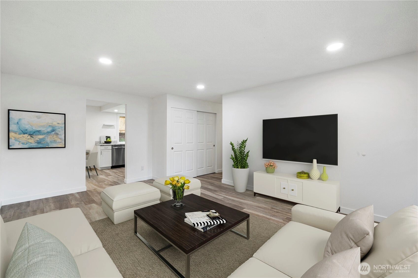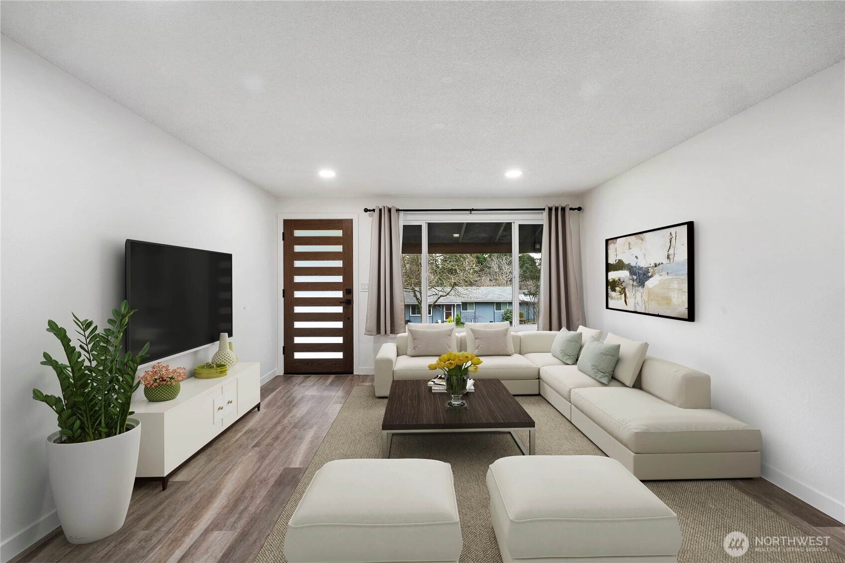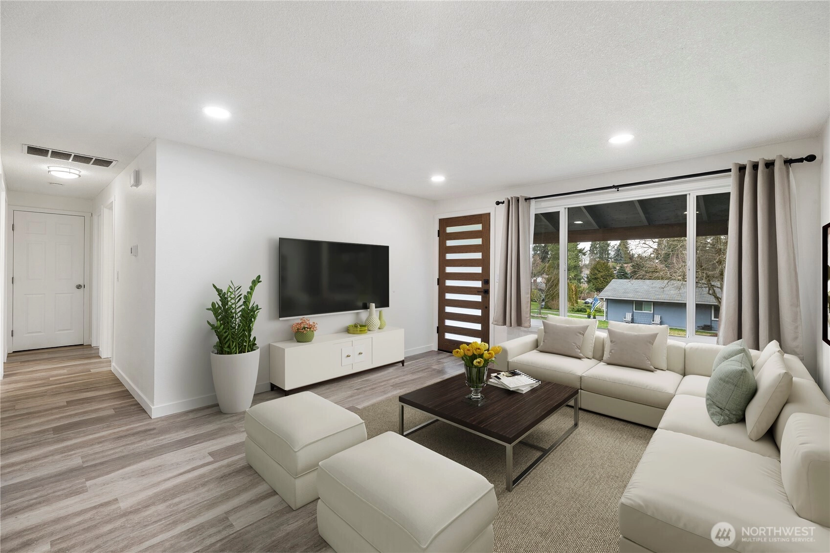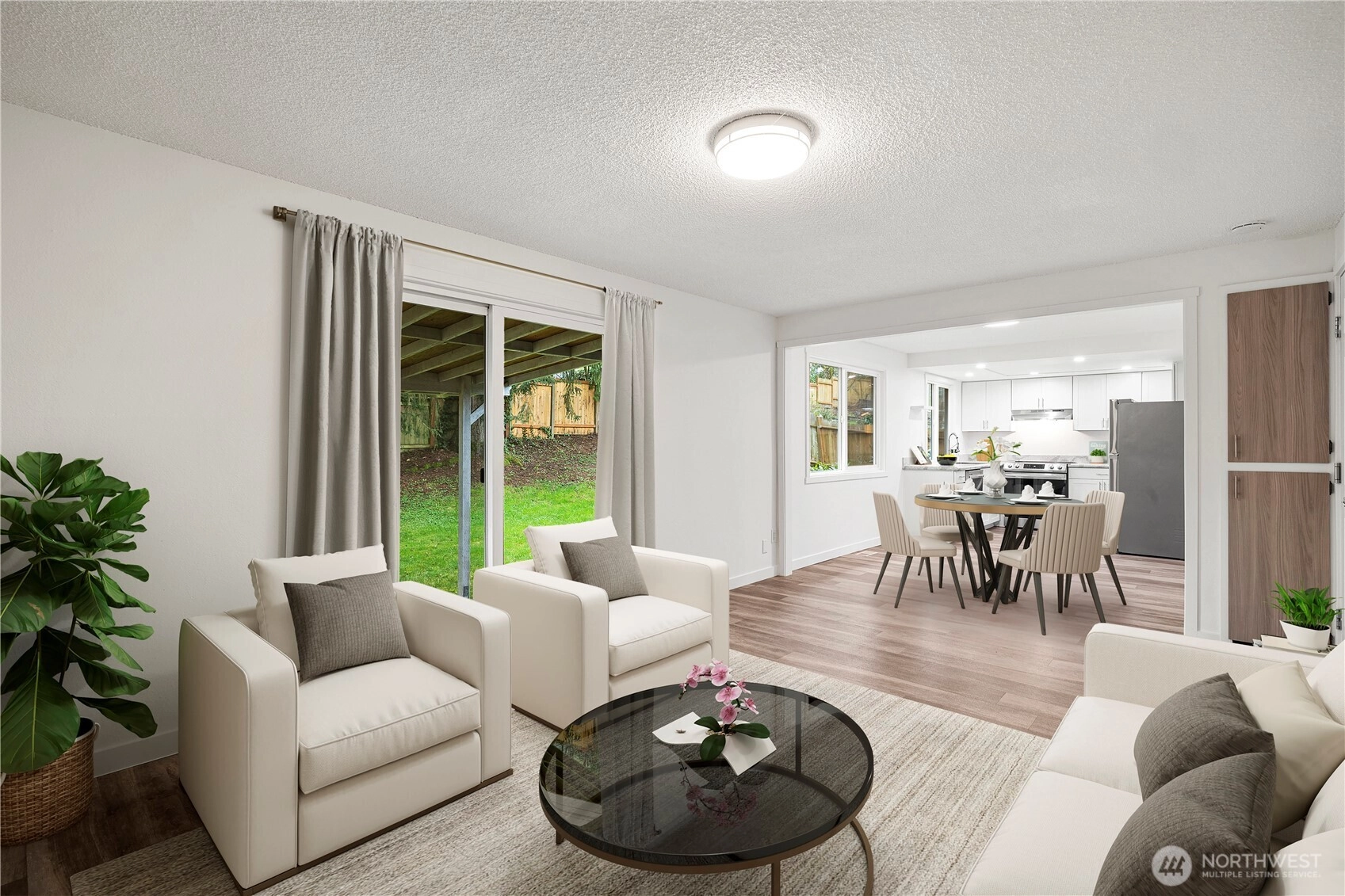 Welcome to Alder Dale Glen, conveniently located with easy access to I-5, Alderwood Mall, and walking distance to parks, groceries, shops and restaurants. Enter to excellent one-level floorplan with living room, family room, wood fireplace, kitchen with stainless steel appliances, and dining area. All appliances stay. Three bedrooms including primary suite with ensuite powder room. Full guest bathroom. Fresh interior paint. Covered back patio and fully-fenced yard with plenty of room to garden and entertain. Two-car attached garage with additional loft storage space. Sought-after Edmonds School District.