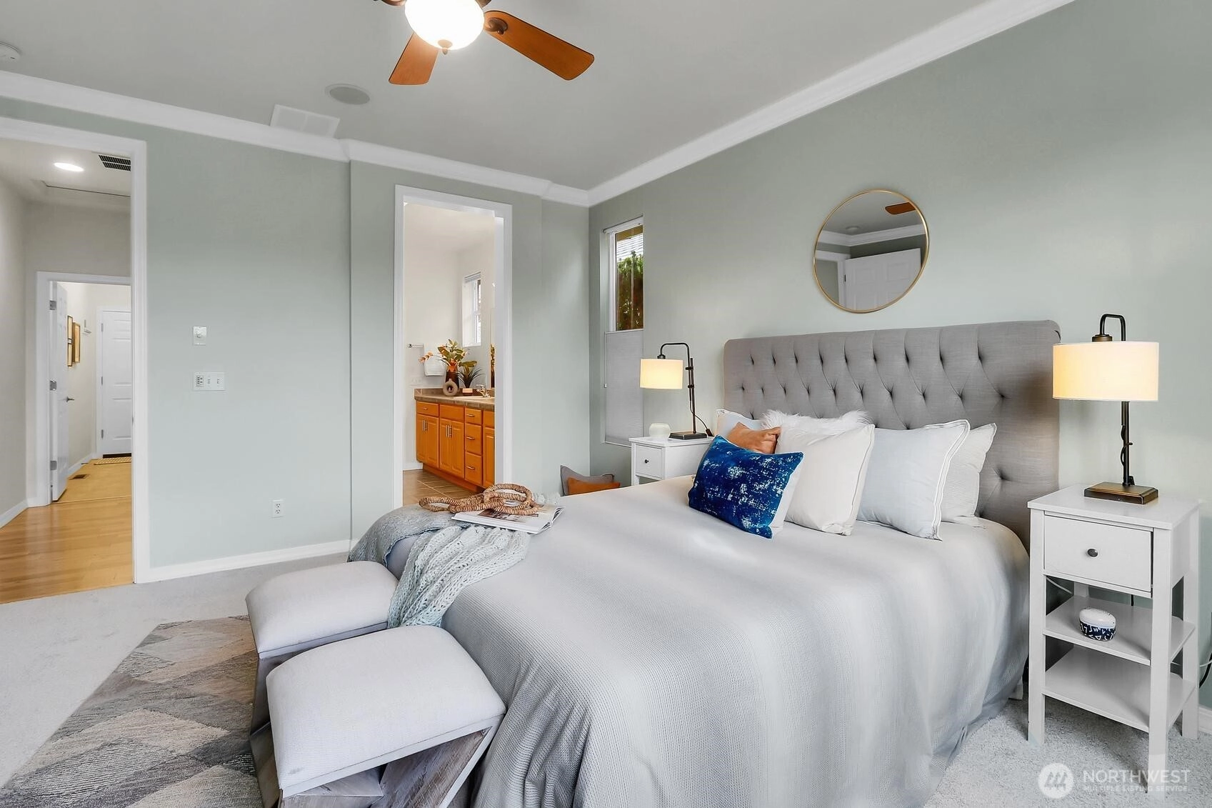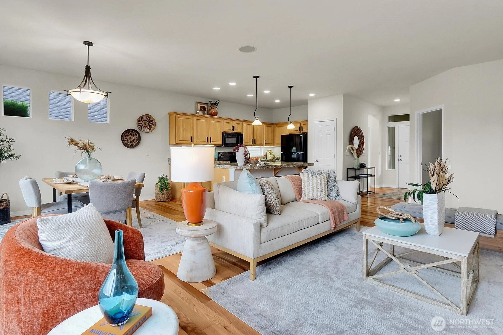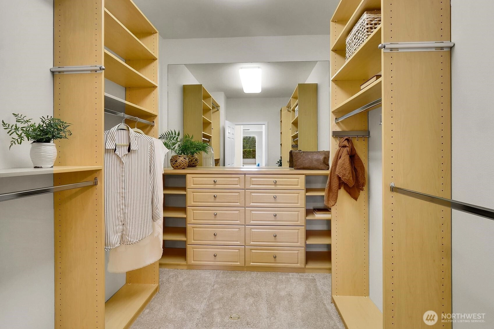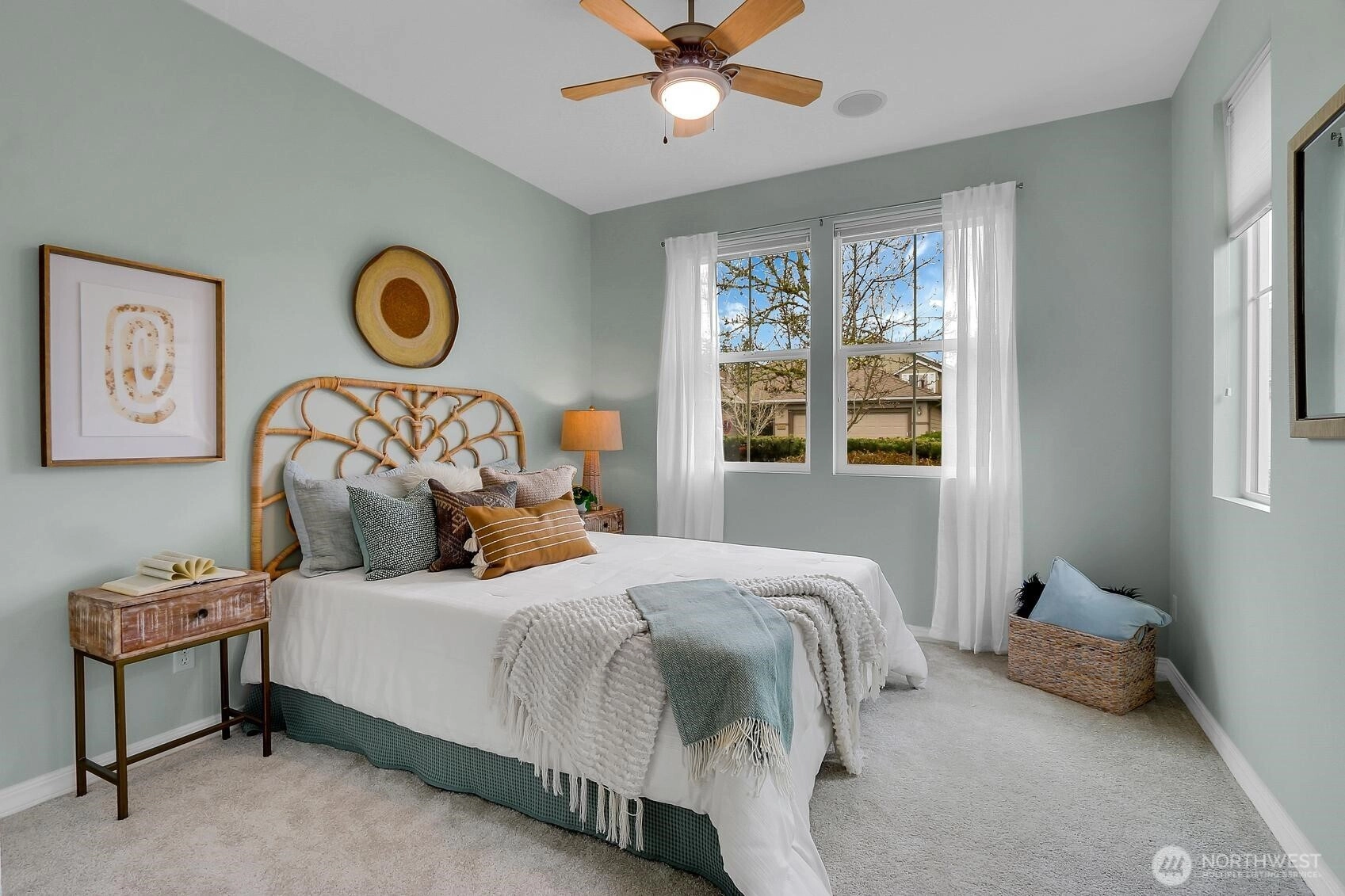 Trilogy at Redmond Ridge is the premier master-planned 55+ active-adult community offering resort style living.This immaculate “Vashon” great-room floorplan has been incredibly well cared for & offers so many upgrades; built-it speakers throughout, quality Hunter Douglas up/down blinds, built-in shelving & drawers, 5” crown molding in the primary, huge walk-in w/California closet, ceiling fans, utility sink, sprinkler & security system + a brand new roof! The bedrooms are thoughtfully located on opposite sides of the home creating privacy when hosting guests.There’s a den/hobby/workout rm too offering added flexibility. Enjoy spectacular views of nature from every window! Fresh interior paint & new carpet to boot. This is truly a must see!
