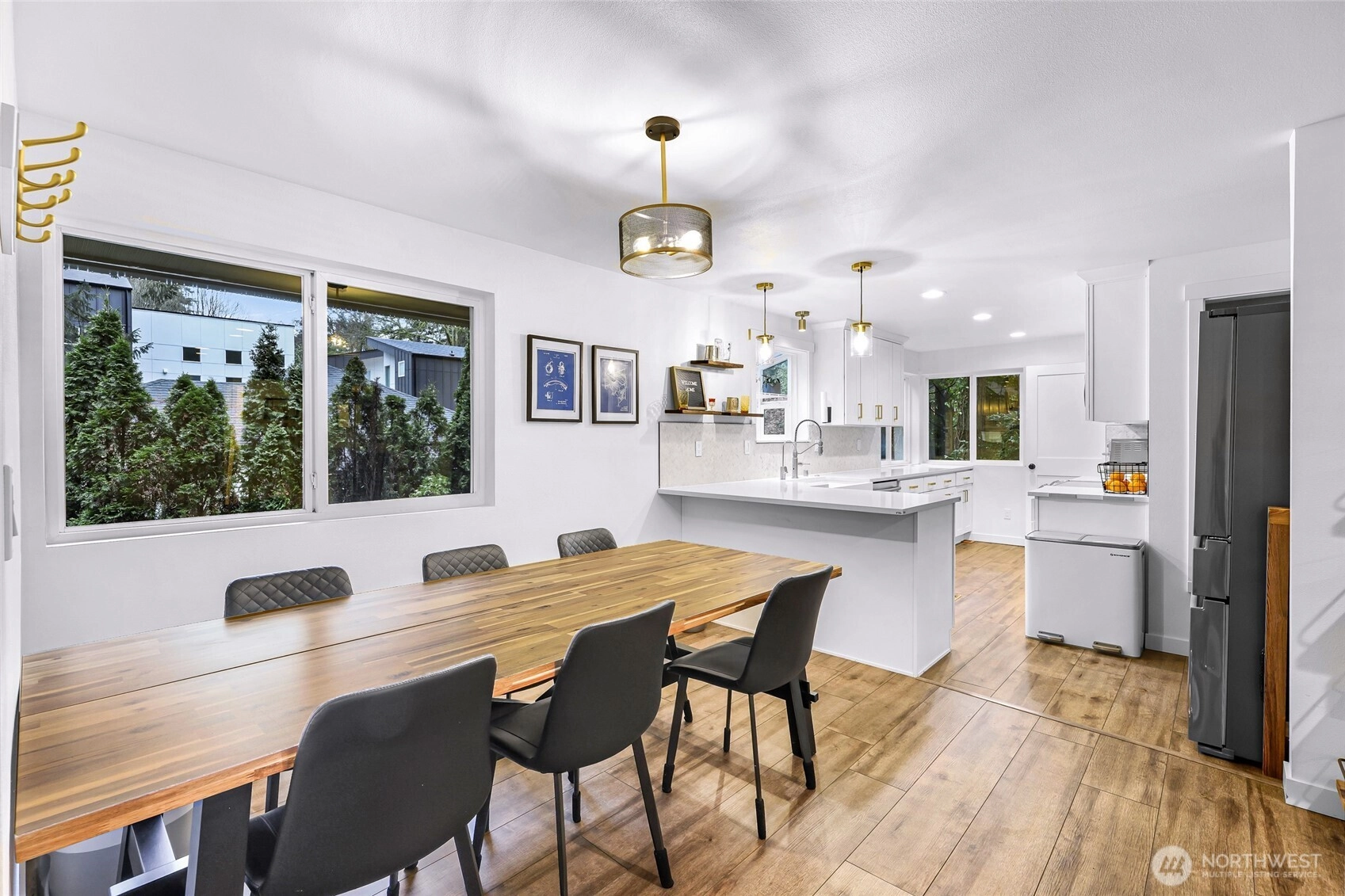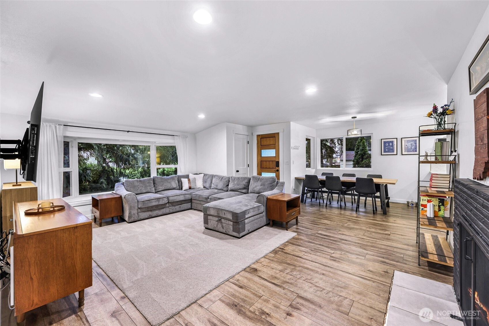 Step inside and feel the ease of truly turnkey living in the quiet and convenient neighborhood of Pinehurst. Reimagined in 2022, the main floor opens into a modern living space with warm LVP floors, a cozy fireplace, and bay window. With long quartz counters, the fresh kitchen is perfect for everyday cooking or weekend gatherings. Three comfortable bedrooms, a tiled ¾ bath, and a powder room offer effortless main-level living. Downstairs, a second living area with its own entrance, fireplace, kitchen area, and full bath creates incredible flexibility—ideal for guests or multigenerational living. Newer plumbing, electrical heat pump and a new roof in 2025 add peace of mind. All this is just minutes from light-rail and an easy commute!