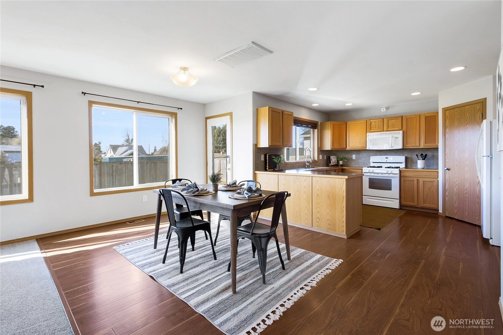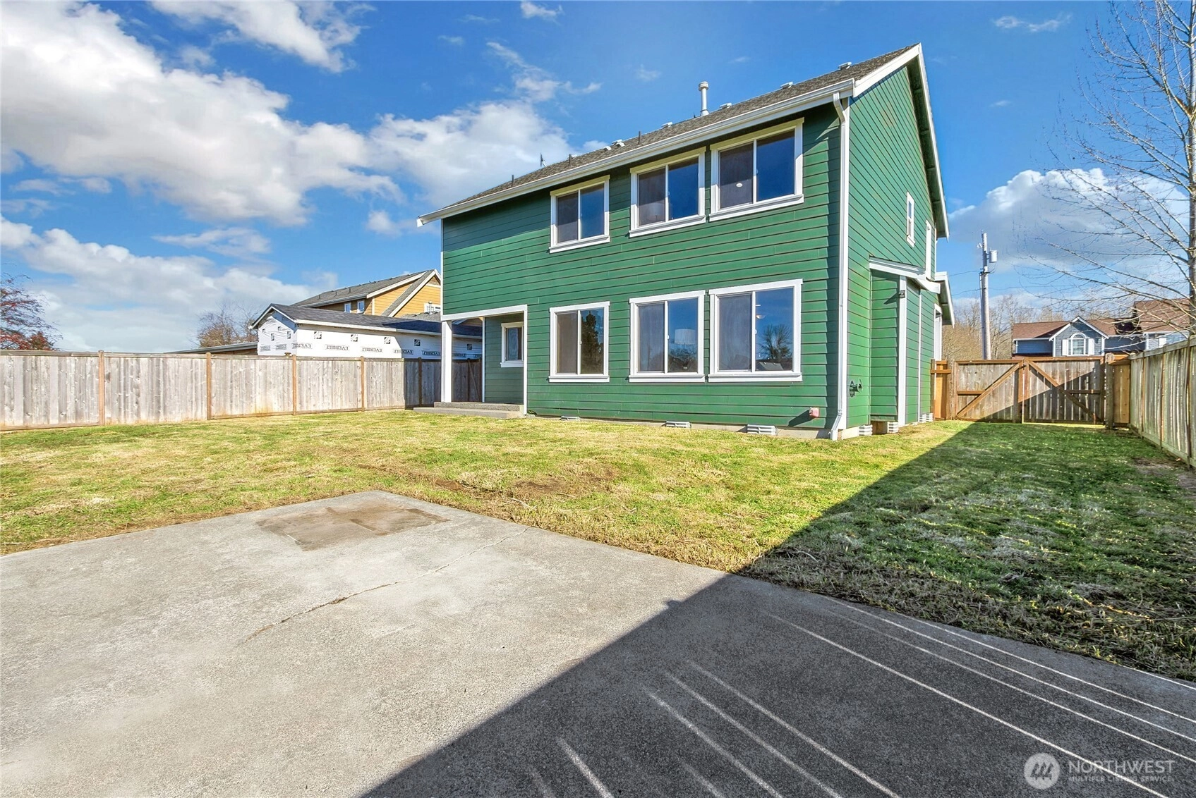 Don't wait! This beautiful two-story home features an open-concept kitchen & dining room. Tons of cabinet space & well laid out floor plan, w/ fresh paint & new carpet throughout. Enjoy this well taken care of 3 bed/ 2.5 bath home that is located near downtown Buckley. The home is surrounded by tons of open grass fields; it has a stunning territorial view right at your doorstep. Enjoy the three large bedrooms, including a primary suite with a 5-piece bath, upstairs laundry, and a two-car attached garage. Double gates provide easy backyard or RV/trailer storage. The fully fenced backyard includes a poured concrete pad for a shed or kennel and plenty of space for entertaining! Come & enjoy all the wonderful things small town living has to offer.