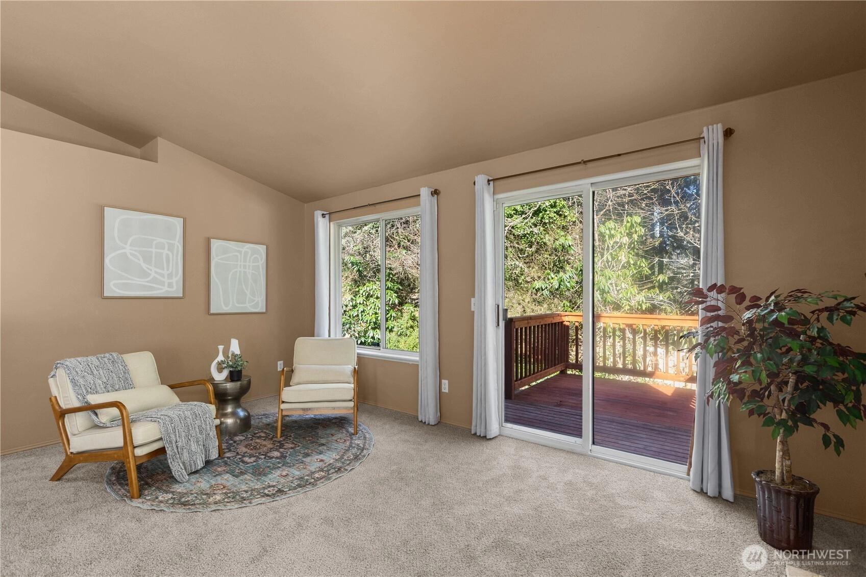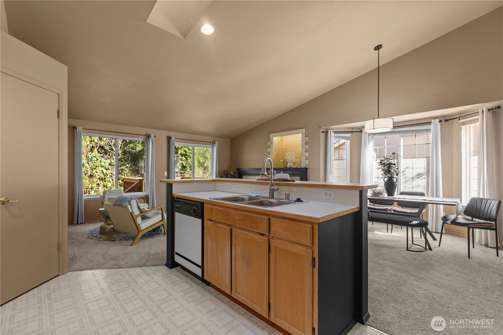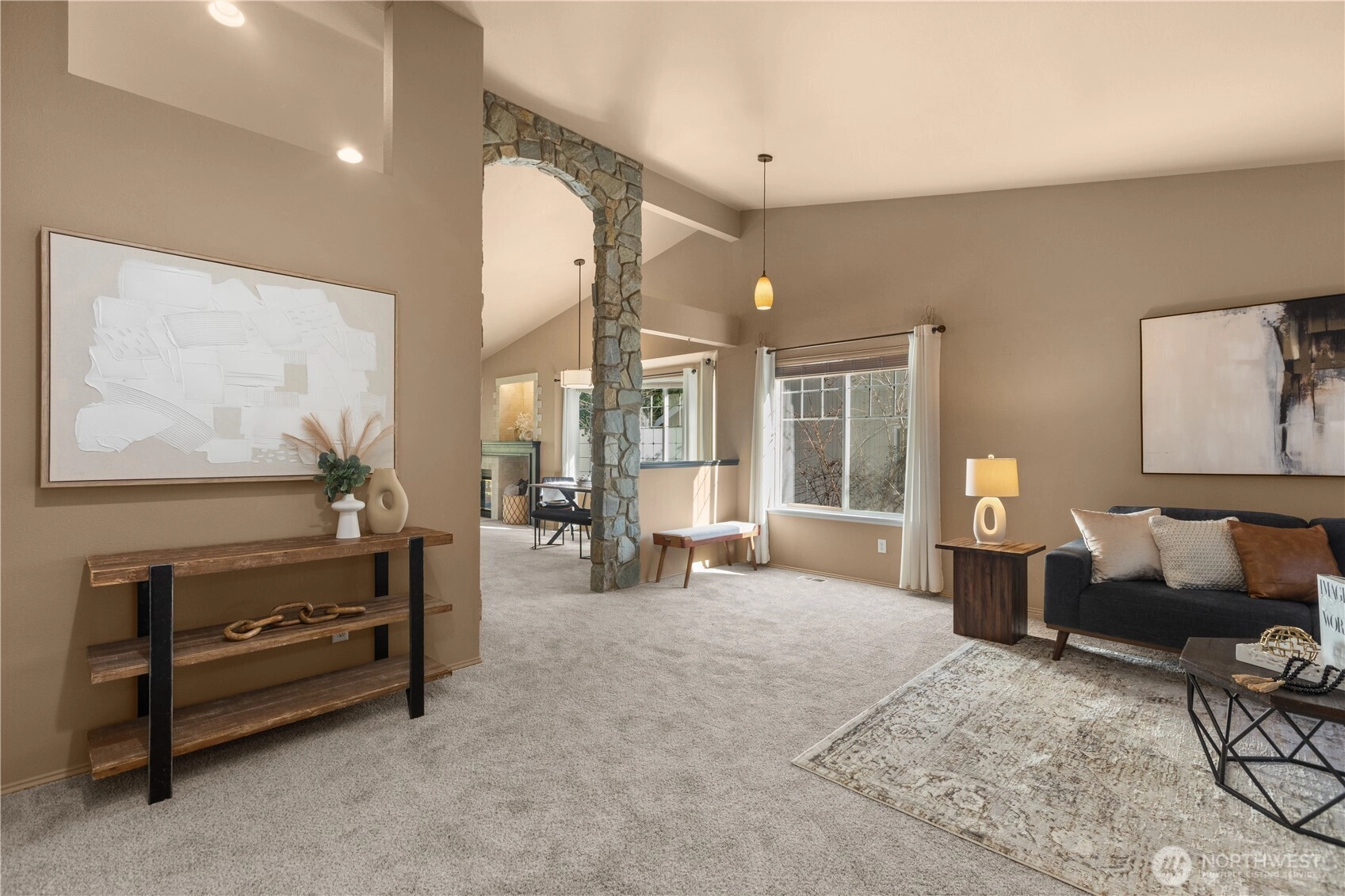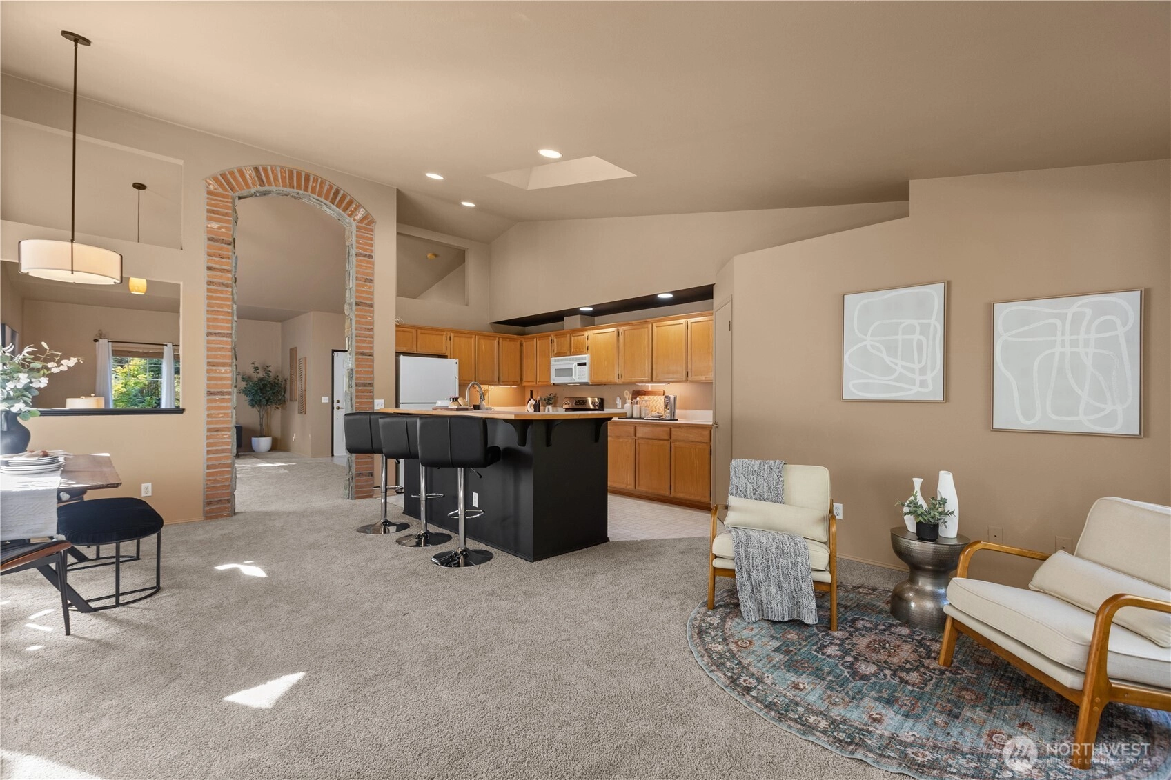 Excellent contemporary rambler in top condition on a quiet, private lot. Features an open floor plan with brand new carpet, fresh paint through out and vaulted ceilings in the living room, family room, and kitchen. Kitchen includes new sink and an island that flows seamlessly into the main living area. Spacious primary with a full bath and dual sinks. Newer roof for added peace of mind. Enjoy expansive deck and patio space, perfect for entertaining and outdoor living.