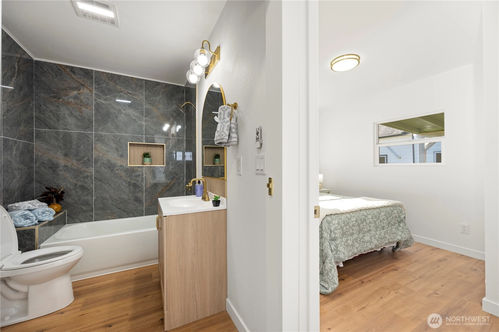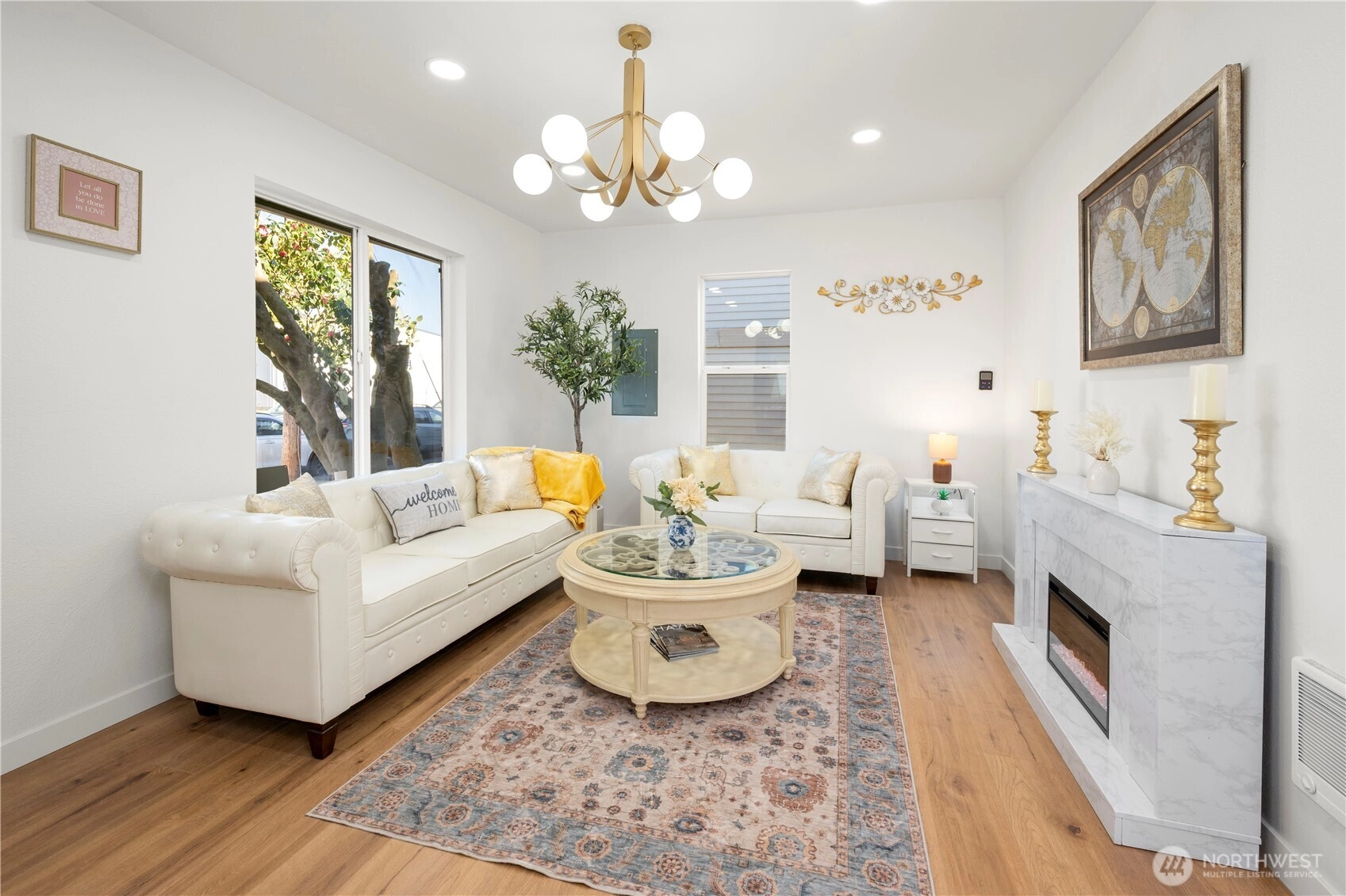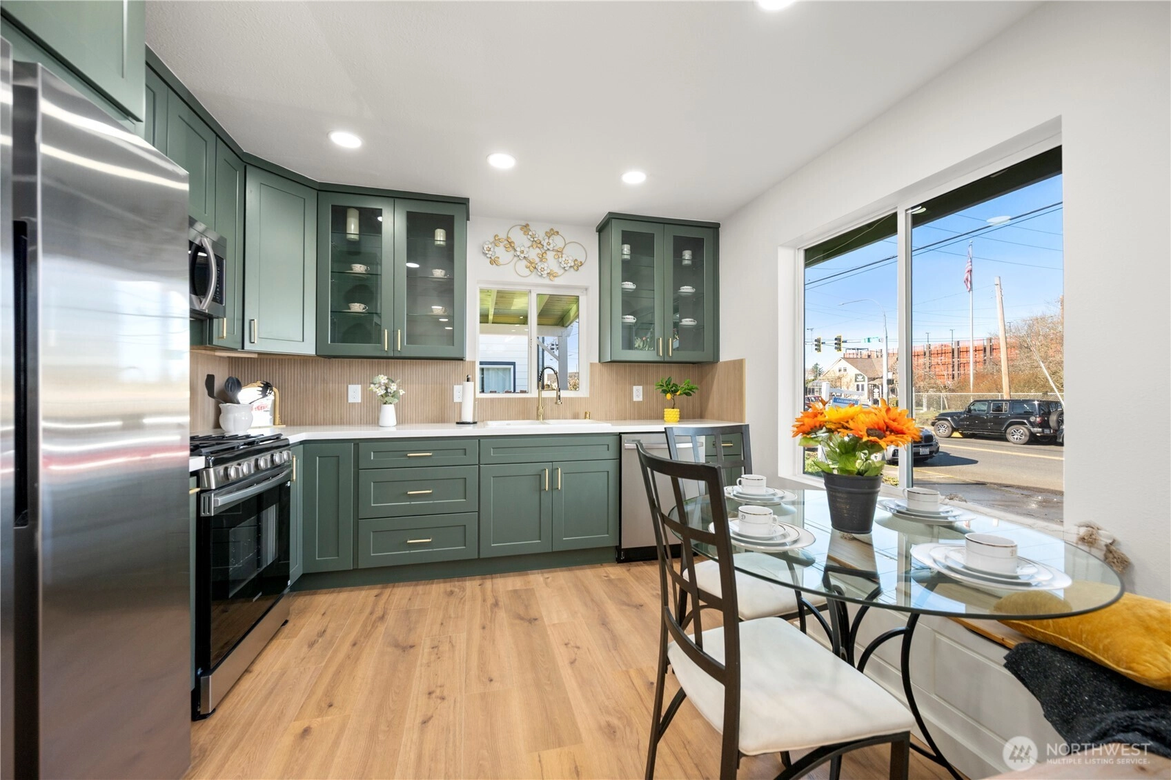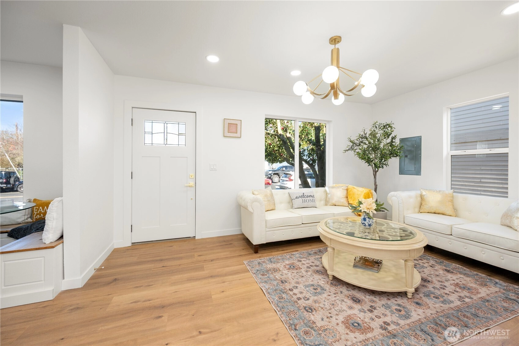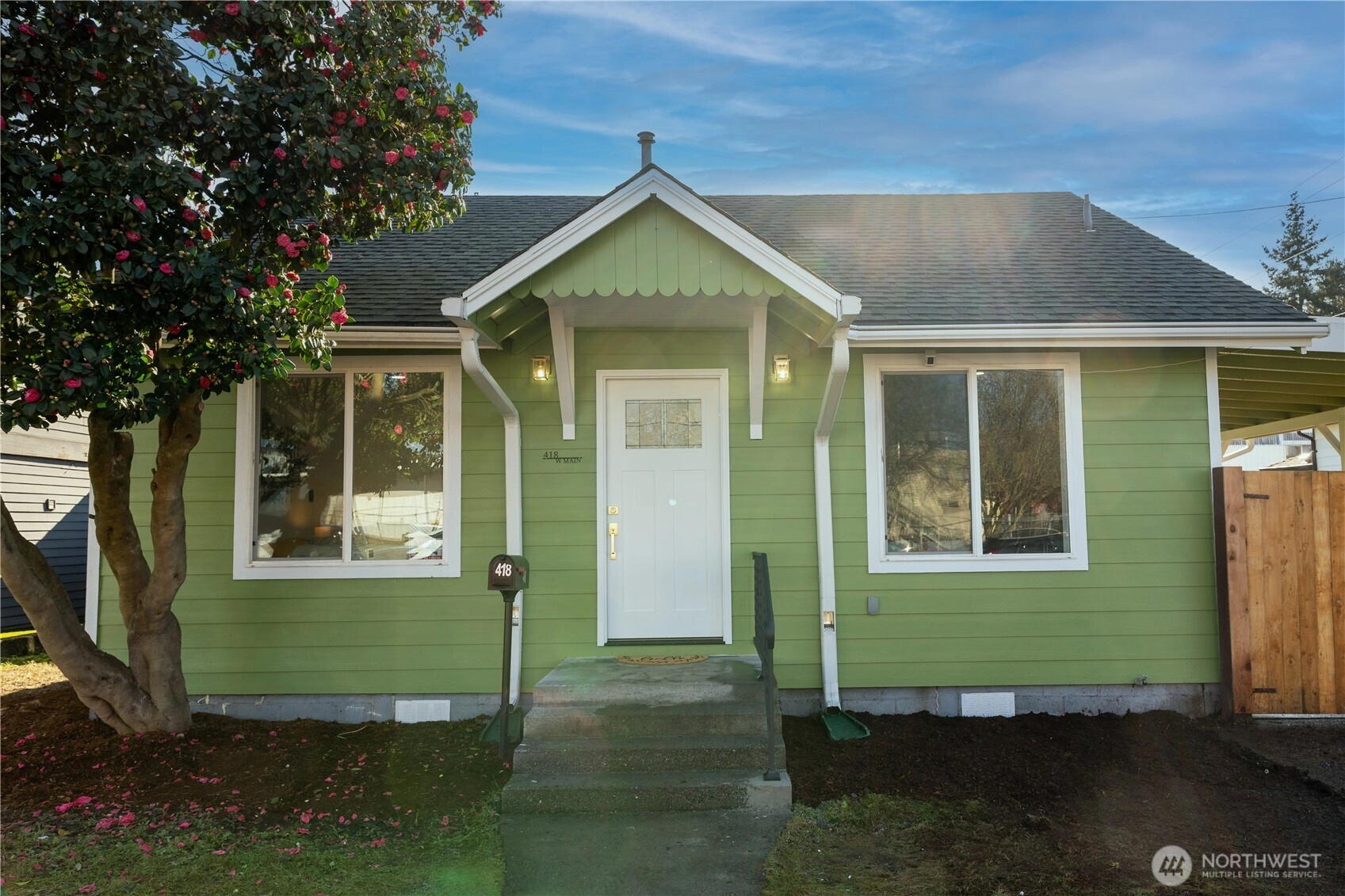 Welcome to this beautifully remodeled 2-bed, 1-bath home in the heart of Puyallup. Perfect for anyone who is looking for a home that can grow with them. It blends comfort, convenience, and incredible future potential. Ideally located within walking distance to downtown Puyallup, where you’ll enjoy local shops, dining, coffee spots, farmers markets, and year-round community events. The Washington State Fairgrounds are just a short stroll away for easy access to concerts and fair fun. Transit Center is a few steps away, making it simple to commute to cities like Seattle. Nearby parks and trails offer plenty of options for outdoor recreation. Inside, the home shines with abundant natural light and thoughtful updates throughout. Fresh interior and exterior paint, new siding, updated molding, and stylish finishes create a crisp, modern feel. The remodeled kitchen features stainless steel appliances, updated cabinetry, and beautiful new flooring that flows seamlessly through the home. Every detail has been carefully curated to deliver a truly move-in ready experience. Leaf-guard gutter protection adds low-maintenance peace of mind. The spacious yard provides room to garden, entertain, or expand. Located in the RM-Core zone with up to 90% lot coverage, this house offers exciting possibilities for a DADU, shop, home extension, or future development. It's truly an exceptional house that combines charm, upgrades, walkability, and flexibility for years to come.