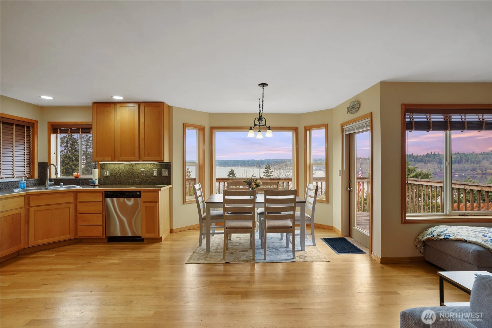 Expansive Puget Sound views set the stage for this beautifully positioned 4 bedroom, 3.5 bath home offering 2,266 sq ft of comfortable living space. Enjoy morning coffee as boats pass in the distance and unwind with peaceful sunsets from the spacious deck. Elevated above it all, the home captures the kind of scenery that makes everyday life feel calm and restorative. Large picture windows bring the water front and center, filling the home with natural light and creating a seamless connection to the outdoors. The open kitchen flows effortlessly into the dining area and living space, making it ideal for both entertaining and quiet evenings at home. A gas fireplace adds warmth and comfort during cooler months. Upstairs, the primary suite showcases stunning water views and a private bath designed for relaxation. Additional bedrooms offer flexibility for guests, remote work, or hobbies. The lower level features a separate entrance with its own living space, providing excellent options for extended living, guests, or potential rental income. Previously operated as a successful Airbnb and VRBO with 5 star reviews, the home has been well maintained and thoughtfully cared for. Located just minutes from downtown Bremerton, ferry access to Seattle, parks, dining, and major employment centers, this property offers a rare balance of tranquility, convenience, and unforgettable views.