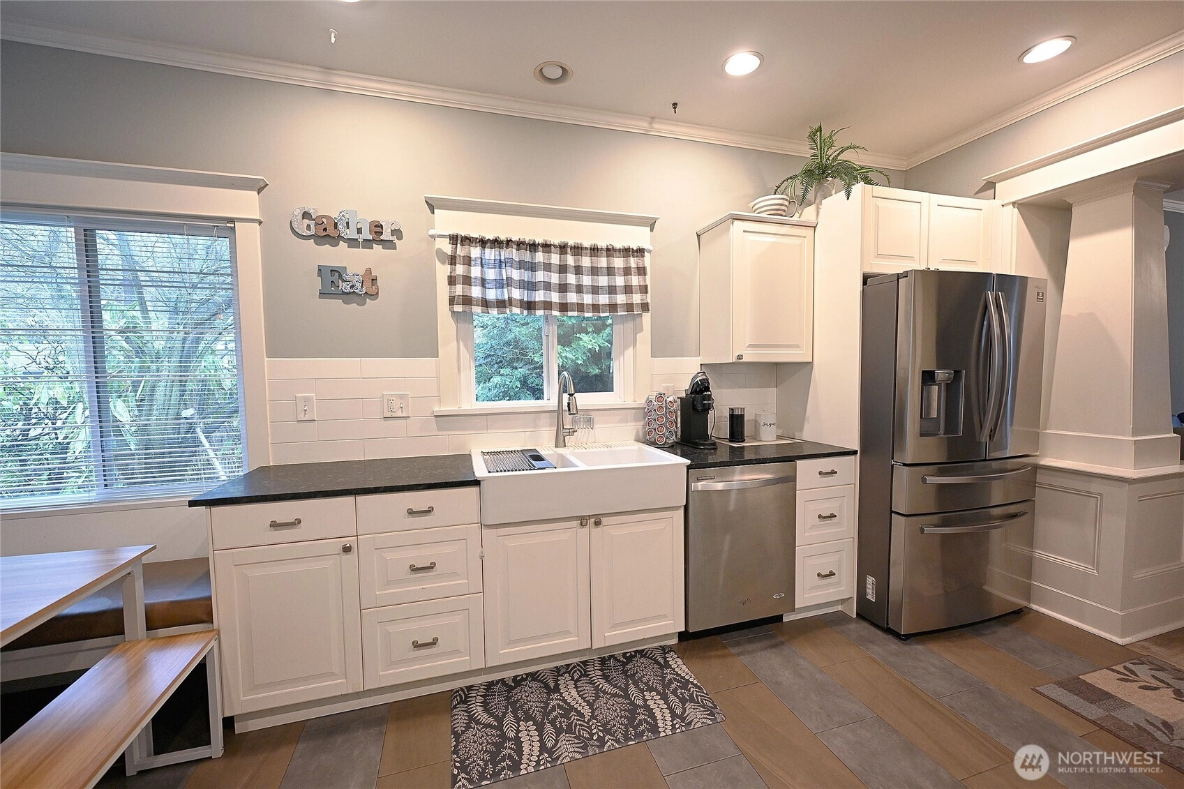 Discover the perfect blend of history and contemporary living in this stunningly remodeled 1919 Craftsman. Perched high off the street, this home welcomes you with gleaming, refinished old-growth fir floors that radiate warmth and character. The heart of the home is the expansive, open-concept chef's kitchen, featuring slab granite countertops, a classic farm sink, a gas range, and custom cabinetry—an absolute dream for entertaining. Spread out over nearly 3,000 square feet, the thoughtful layout includes four spacious bedrooms and an spacious lower-level family room perfect for movie nights or a playroom, complete with a updated tiled bathroom. Beyond the cosmetic beauty, enjoy total peace of mind with updated electrical, plumbing, and windows throughout. Step outside to your private outdoor oasis, ready for summer BBQs. Located just minutes from the vibrant dining scene in Georgetown, the light rail, and I-5, this is the turnkey lifestyle you’ve been waiting for. Welcome home.