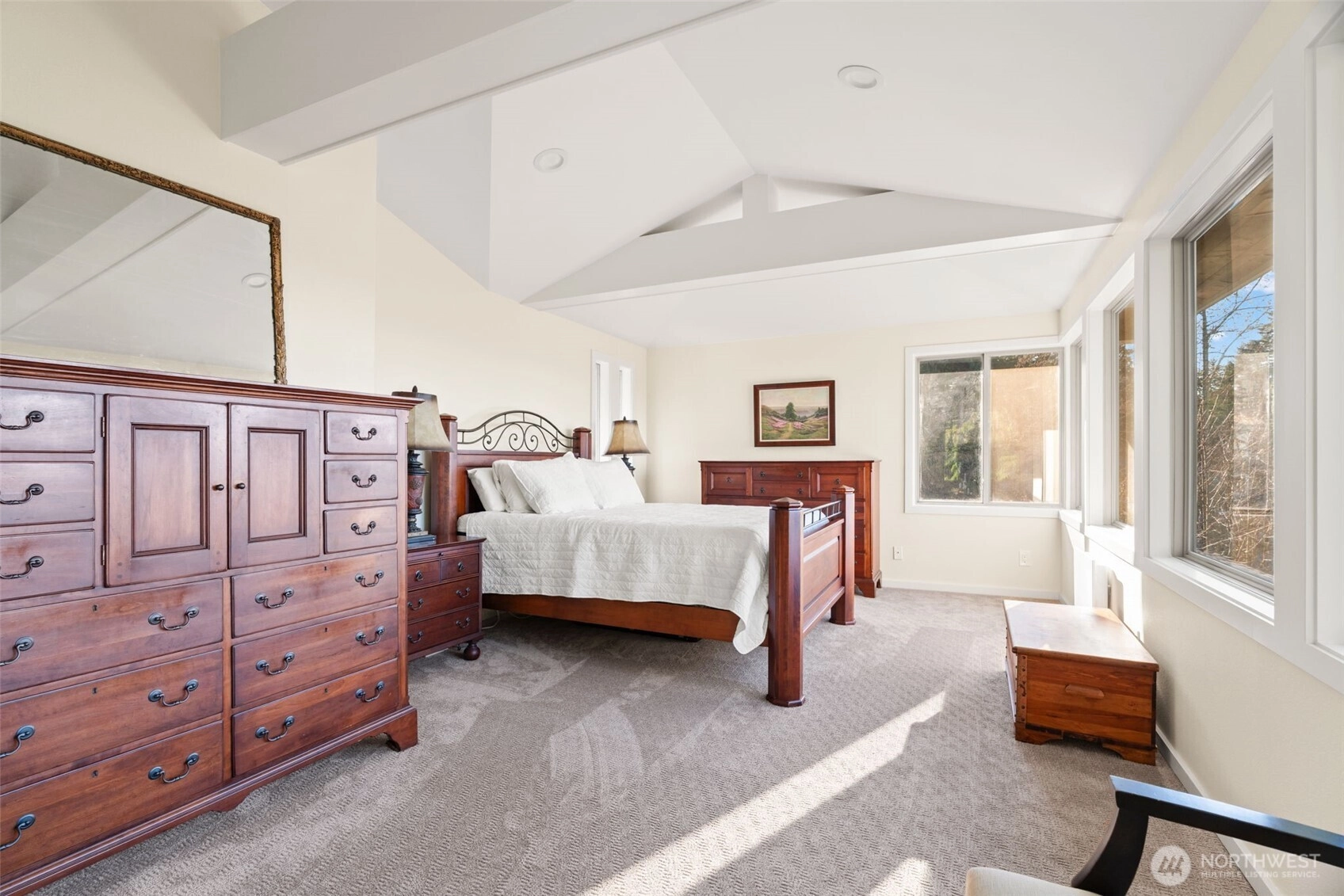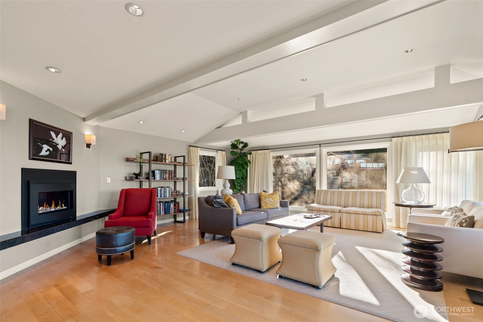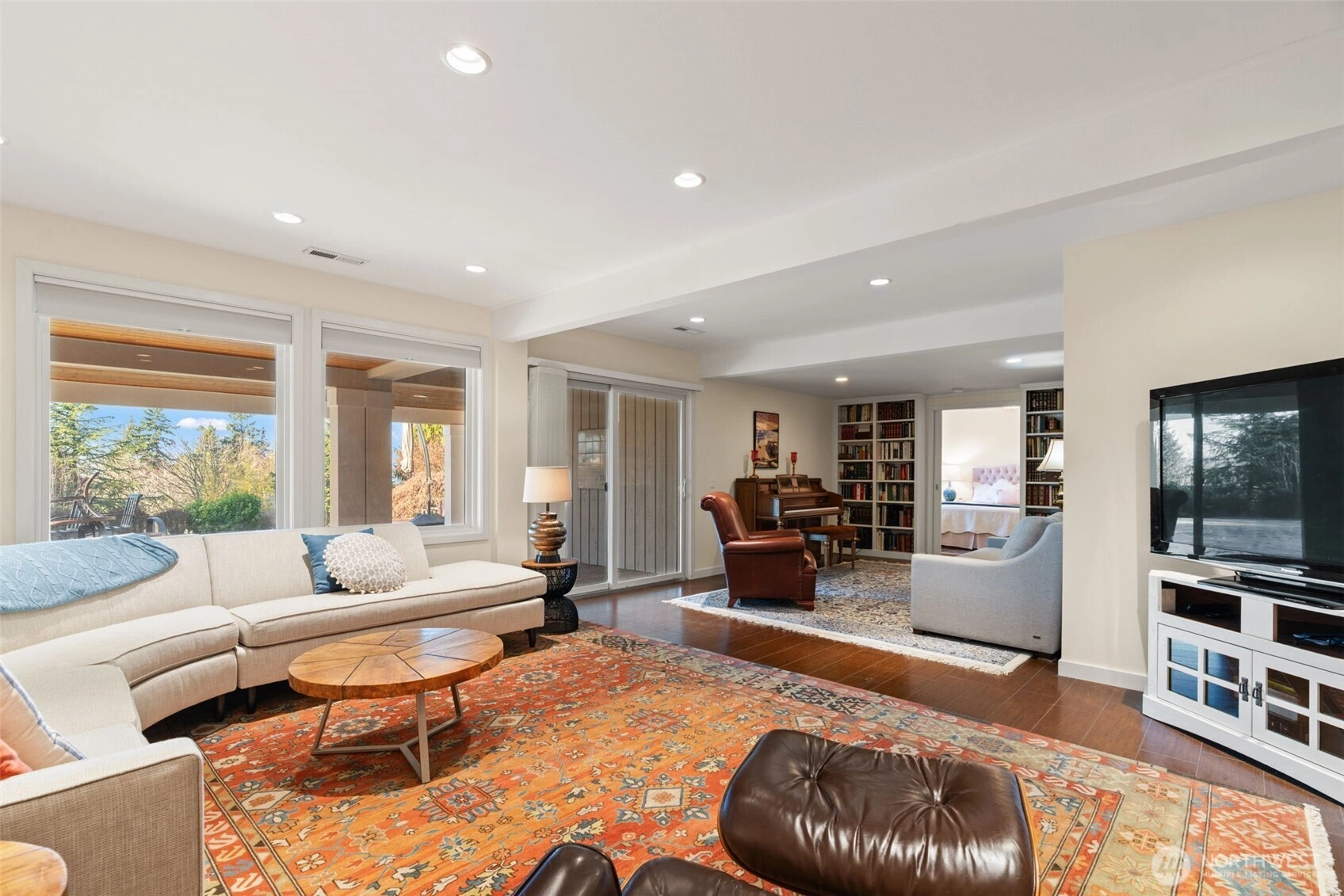 Tucked at the end of a private drive on an expansive 36,768 s ft shy-acre lot, this fully updated Edmonds retreat offers breathtaking views of Puget Sound and Whidbey Island from a setting that feels worlds away. Surrounded by trees and sky, the home lives like a luxury treehouse – private, peaceful, and elevated above it all. The main living spaces are open and light-filled, featuring hardwood floors, a statement fireplace, and seamless flow to an expansive entertainment deck complete with a hot tub – perfect for sunset watching or year-round gatherings. The kitchen is designed for both function and style, offering abundant storage, a large center island with gas cooktop, and stainless appliances, all opening to a dedicated dining area. The upper level is anchored by a stunning primary suite with spa-inspired bath, including a slipper tub, walk-in shower, and generous walk-in closet. The lower level adds flexible living with a family room featuring a second fireplace, custom built-ins, and a wet bar, along with additional private guest space. Outdoor living is just as impressive with a stamped concrete patio, expansive backyard, and a heated shop/studio is ideal for hobbies, creative space, or additional storage. Every detail has been thoughtfully updated with luxury finishes throughout, creating a home that feels both refined and effortlessly livable – private, serene, and truly one of a kind.