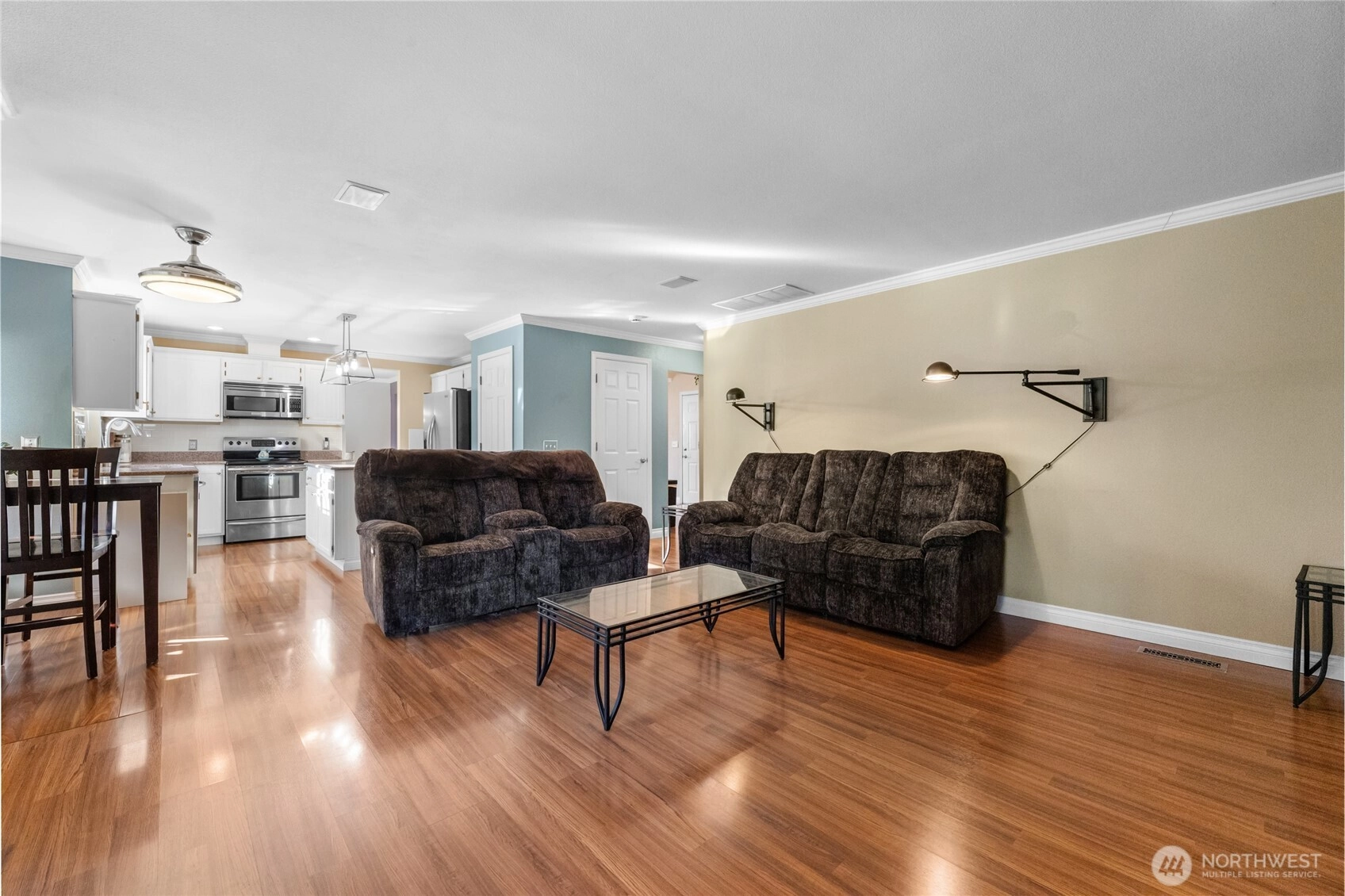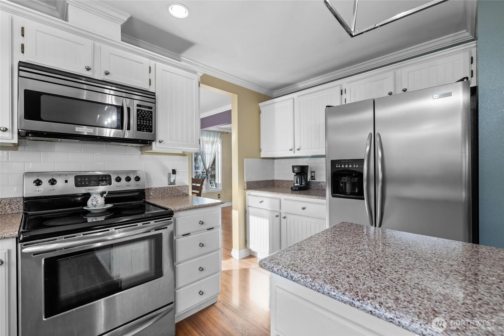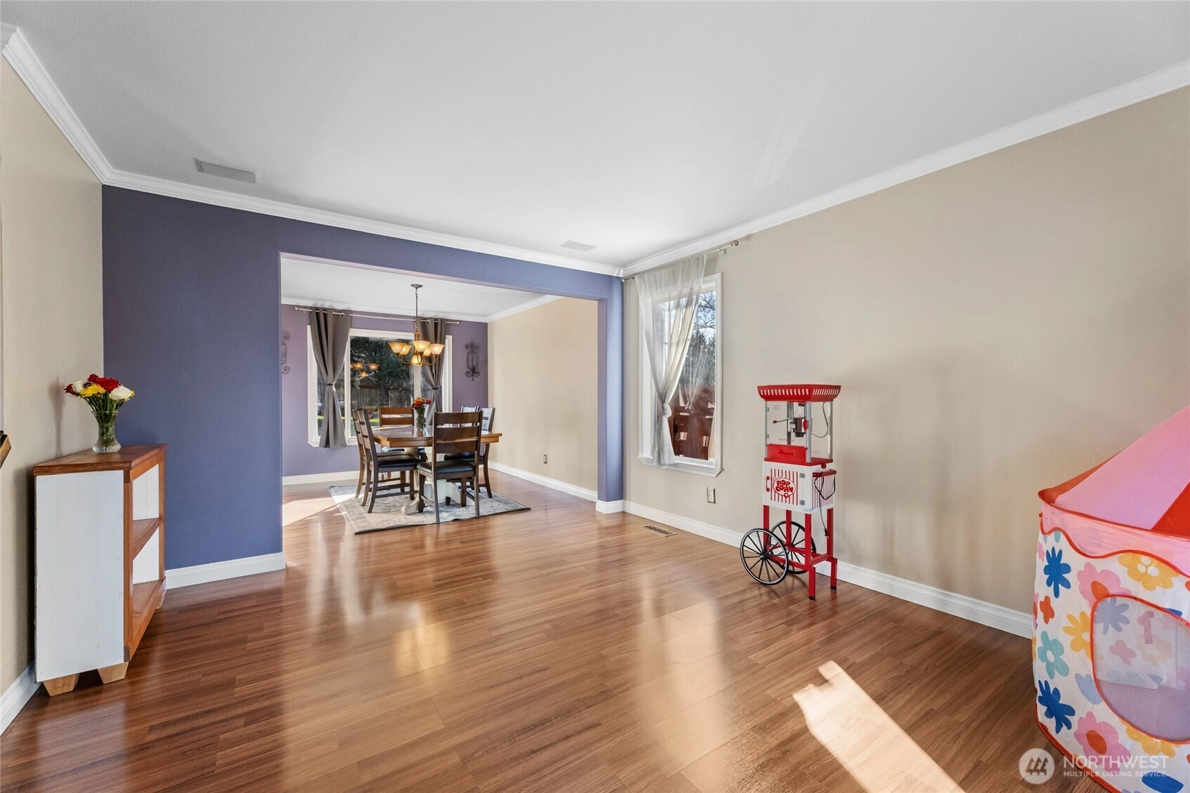 This stunning home is perfectly situated on over a 1/3-acre private, fully fenced lot in a quiet cul-de-sac — with no HOA. The main level showcases vaulted ceilings and an open-concept design ideal for both everyday living and entertaining. The spacious kitchen features a center island, abundant cabinetry, and generous counter space, all overlooking the inviting living room with a cozy gas fireplace. Step seamlessly from the main living area to the covered patio and expansive park-like backyard. A large bonus room and formal dining room complete the thoughtfully designed main floor. Upstairs, the primary suite offers a luxurious 5-piece bath and walk-in closet. Two additional spacious bedrooms, a versatile recreation room, and a full bath provide flexibility for a variety of lifestyles. Additional highlights include RV parking, outbuildings, sprinkler system, and an oversized 3-car garage with shop & a shed with electric. Conveniently located near shopping, with easy access to JBLM and highly regarded schools. This home offers space, privacy, and versatility — a rare opportunity you won’t want to miss!