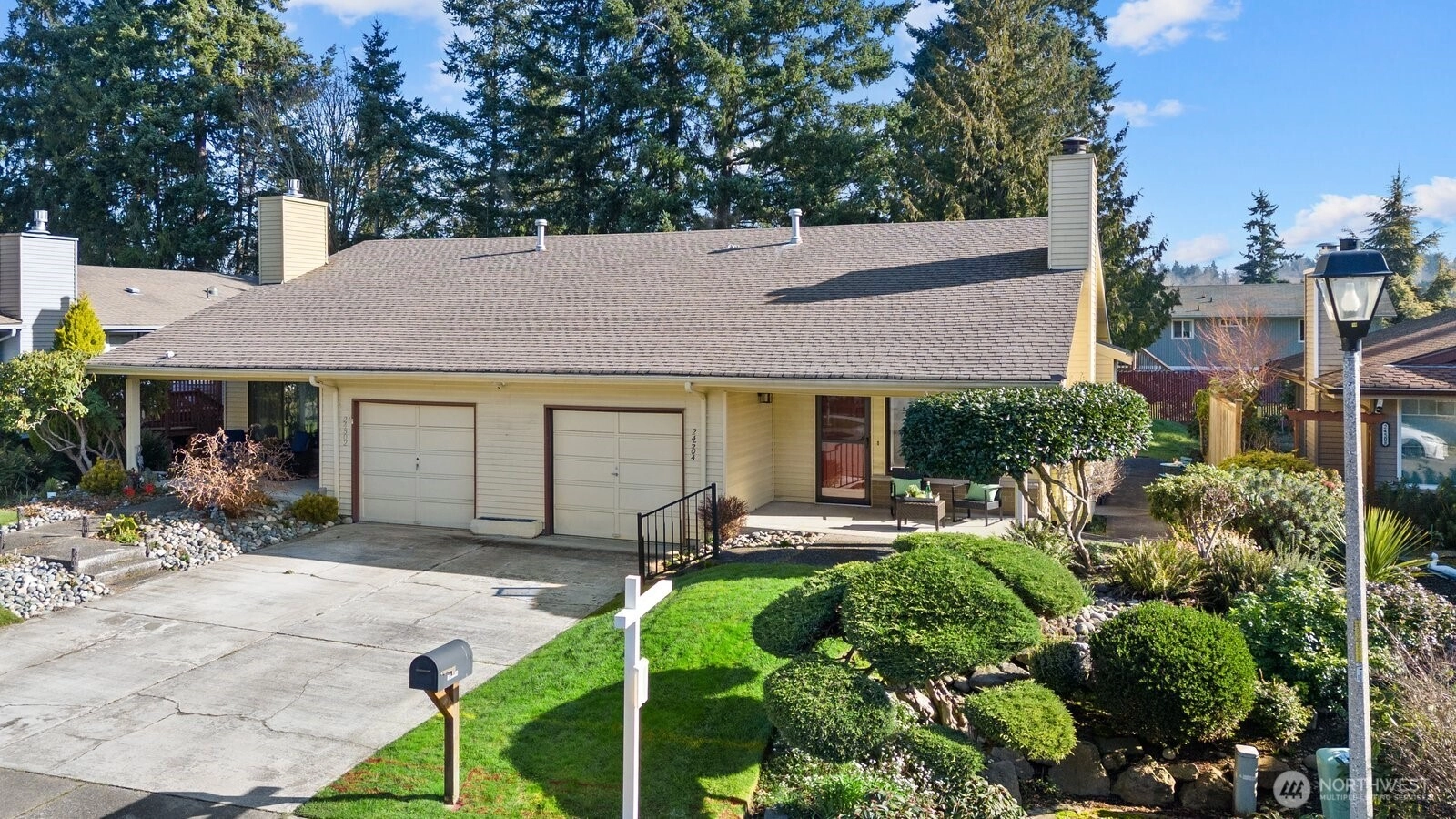 It’s time to call Huntington Park HOME! Welcome to this premier 55+ community in the heart of Des Moines, where tree-lined streets, friendly neighbors, & easy living create the perfect next chapter. This charming 2-bedroom, 1.5-bath home shines with sunny SW exposure & beautiful natural light. Relax on the spacious front porch, or unwind inside by the cozy wood-burning fireplace w/insert & blower. The bright dining room features oversized quad-pane windows designed for added noise reduction and comfort. Both bedrooms are generously sized, including one with a private half bath. Bonus feature: this home includes a rare airplane soundproof insulation package, installed in the windows and slider doors. Not all homes on this street offer this valuable upgrade, providing enhanced peace & quiet year-round. Step outside to enjoy the side patio, perfect for morning coffee or gardening, plus a partially fenced yard surrounded by lush, mature landscaping. Low HOA dues include access to clubhouse events and classes, pool and hot tub, and scenic walking trails. Just minutes from downtown Des Moines, Saltwater State Park, and only 2 miles to the new light rail for easy commuting to Seattle or Tacoma. Comfort, convenience, and community, don’t miss this exceptional opportunity!