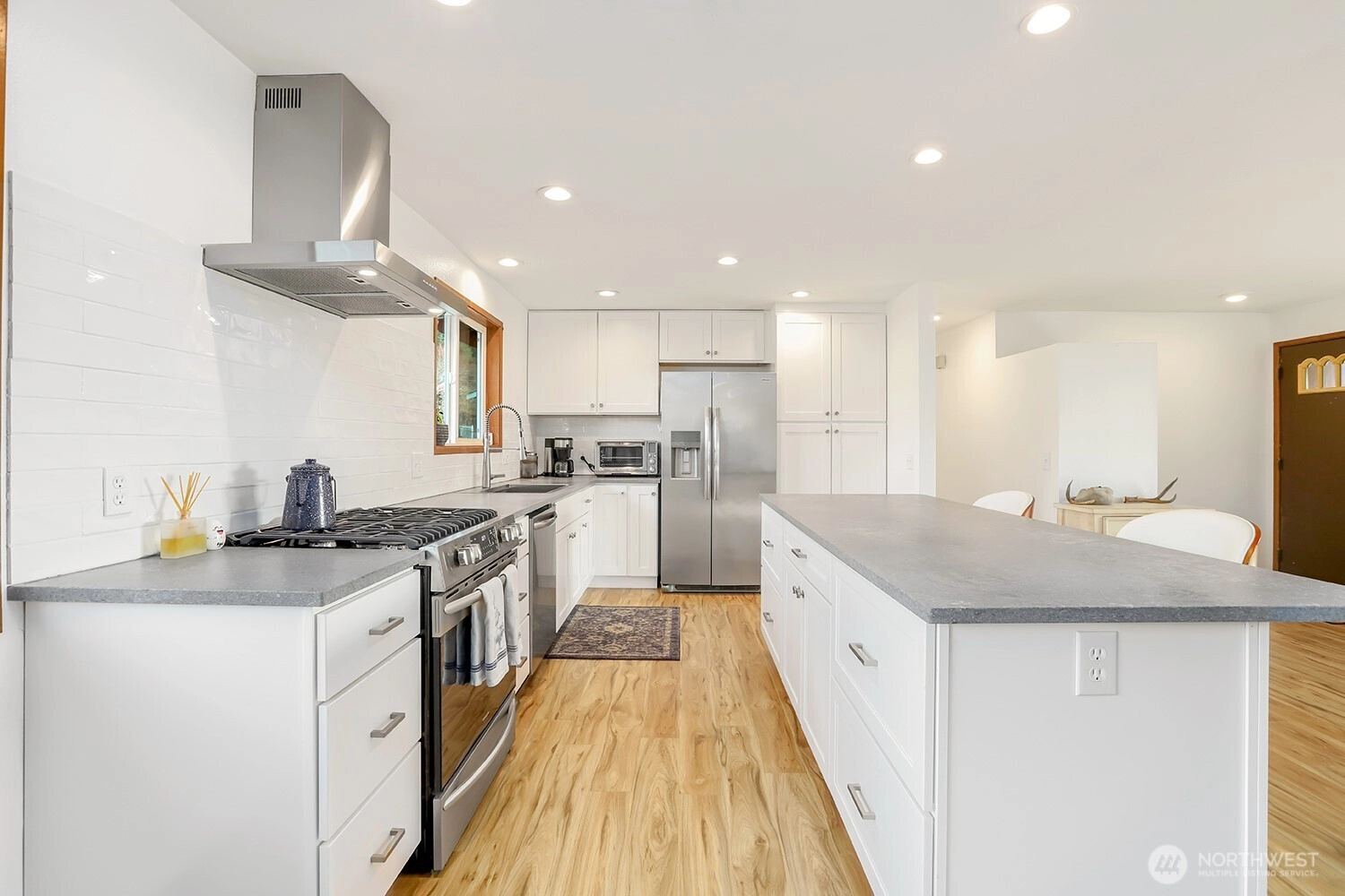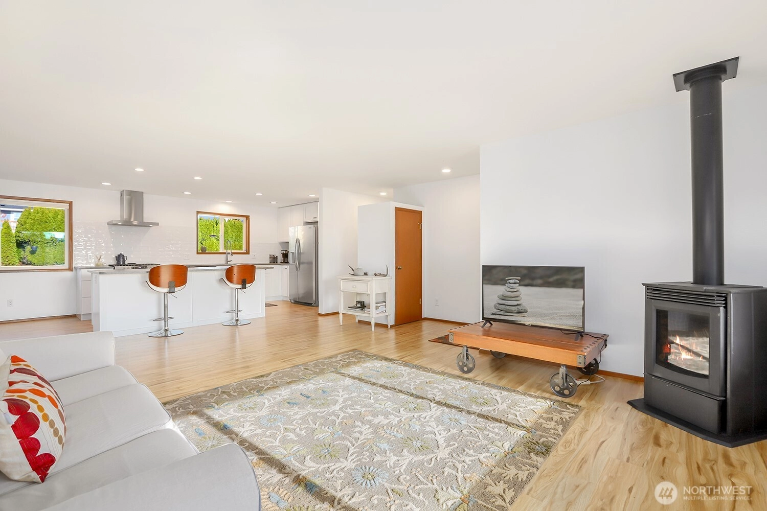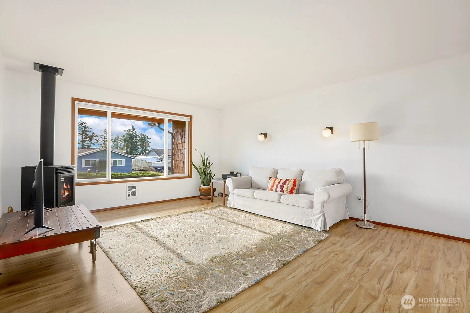 Welcome to this cozy Skyline Anacortes home offering comfortable one-level living just moments from Skyline beaches, Skyline Marina, and Washington Park. This inviting three-bedroom residence features a formal living room filled with natural light and a thoughtfully designed layout ideal for everyday living and entertaining. The primary bedroom includes a private 3/4 bath, creating a relaxing retreat at the end of the day. The updated kitchen showcases modern finishes and flows seamlessly into the family room, where a free-standing gas stove adds warmth and charm. A sliding glass door opens to the deck, extending your living space outdoors and making gatherings effortless. Updated bathrooms and stylish LWP flooring throughout provide a fresh, contemporary feel. Step outside to a spacious, fully fenced backyard with plenty of room for BBQs, lawn games, or simply enjoying the open air. The two-car attached garage with keyless entry adds convenience and functionality. Ideally located near outdoor recreation and waterfront amenities, and approximately 20 minutes to Whidbey Island Naval Air Station back gate via Banta Rd., this home blends comfort, thoughtful updates, and an exceptional Skyline setting.