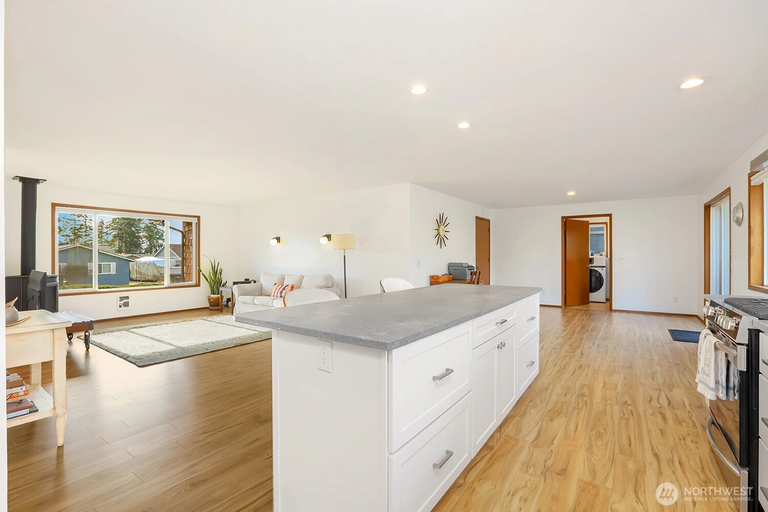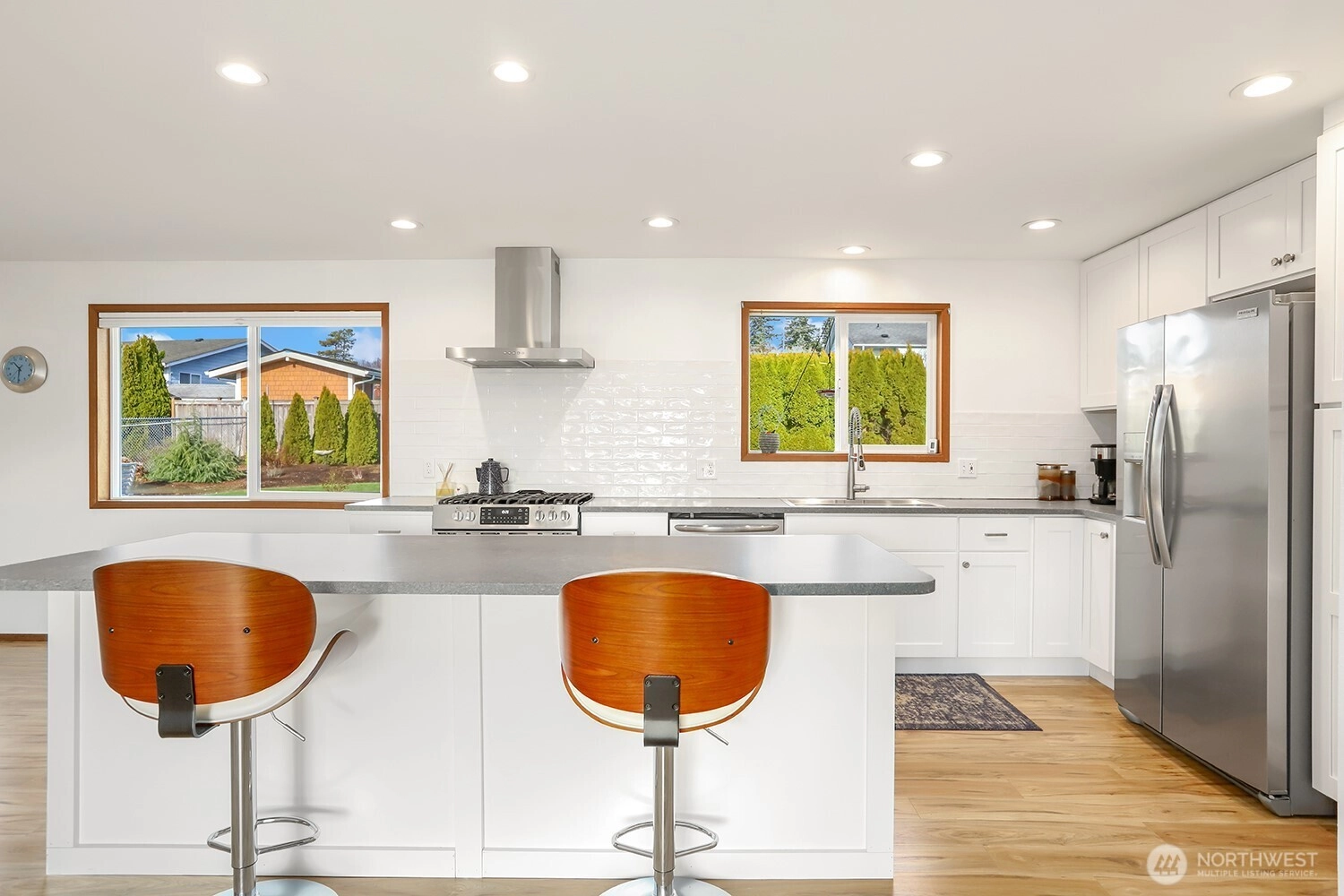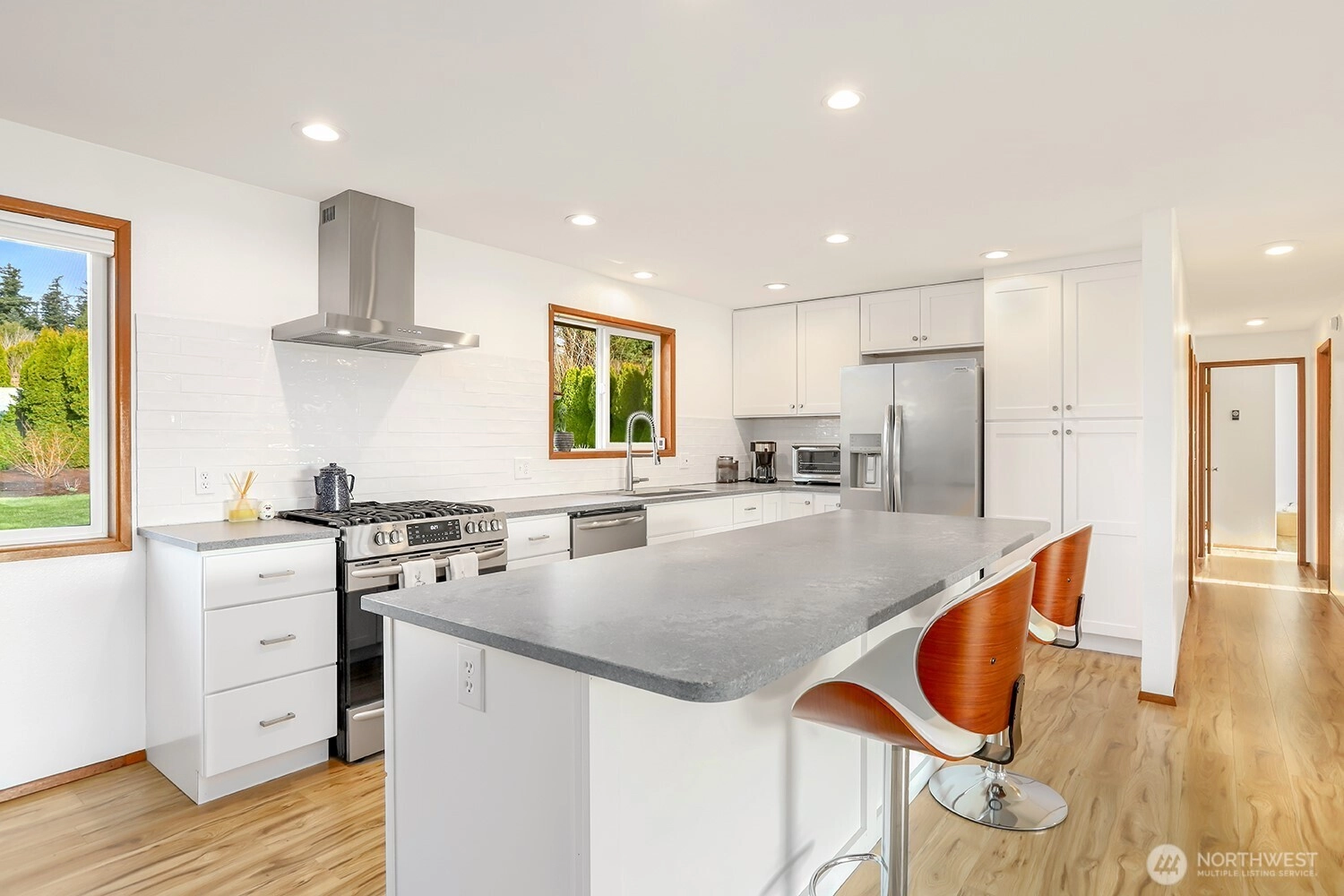 Welcome to this cozy Skyline Anacortes home offering comfortable one-level living just moments from Skyline beaches, Skyline Marina, and Washington Park. This inviting three-bedroom residence features a formal living room filled with natural light and a thoughtfully designed layout ideal for everyday living and entertaining. The primary bedroom includes a private 3/4 bath, creating a relaxing retreat at the end of the day. The updated kitchen showcases modern finishes and flows seamlessly into the family room, where a free-standing gas stove adds warmth and charm. A sliding glass door opens to the deck, extending your living space outdoors and making gatherings effortless. Updated bathrooms and stylish LWP flooring throughout provide a fresh, contemporary feel. Step outside to a spacious, fully fenced backyard with plenty of room for BBQs, lawn games, or simply enjoying the open air. The two-car attached garage with keyless entry adds convenience and functionality. Ideally located near outdoor recreation and waterfront amenities, and approximately 20 minutes to Whidbey Island Naval Air Station back gate via Banta Rd., this home blends comfort, thoughtful updates, and an exceptional Skyline setting.