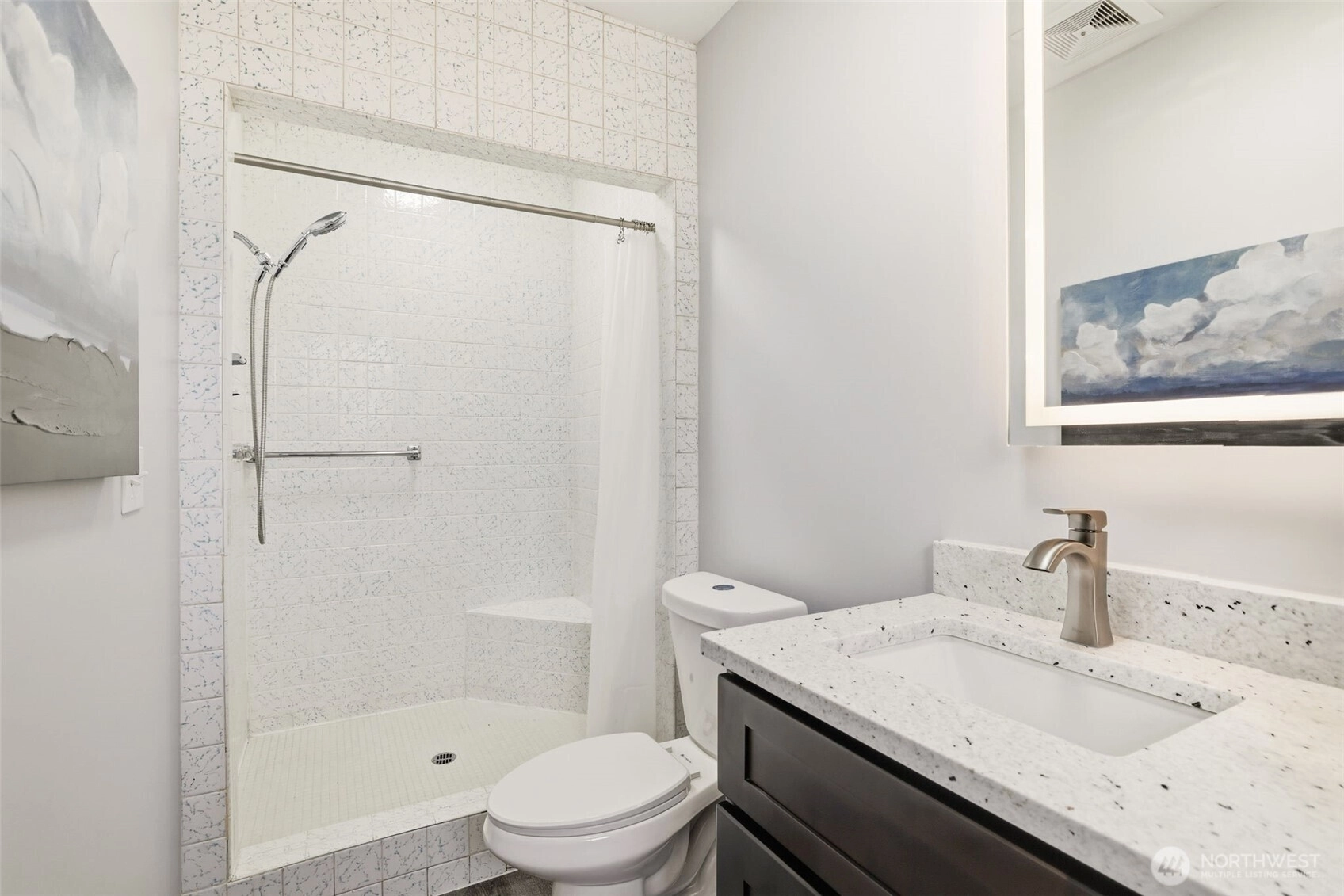 Perfectly tucked away at the end of a long private drive, this spacious home offers flexibility, comfort, and stunning views of Mount Rainier. The upper level and expansive entertainment-ready decks capture sweeping mountain vistas, creating the perfect backdrop for gatherings or quiet evenings at home. Designed with versatility in mind, the layout is ideal for multi-generational living or duplex-style use, with full kitchens on both levels. Fresh interior paint, new carpet throughout, new LV flooring and beautifully updated bathroom finishes make this home truly move-in ready. The private primary suite enjoys its own level, complete with an ensuite bath and secluded view deck. Conveniently located just minutes to I-5, with easy access to the airport and downtown, this lovingly maintained one-owner home offers space, flexibility, and an unbeatable setting. Come experience it for yourself!