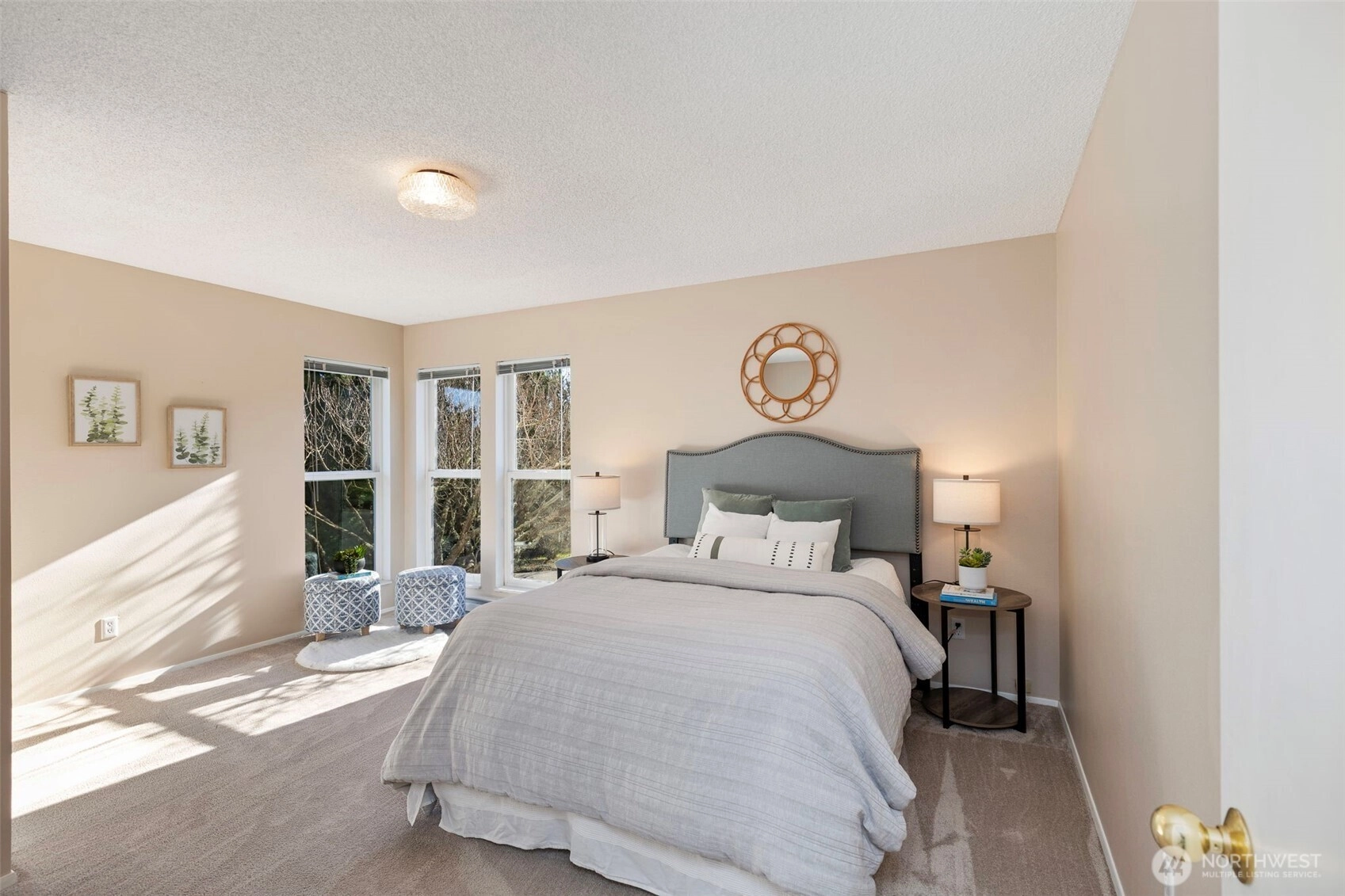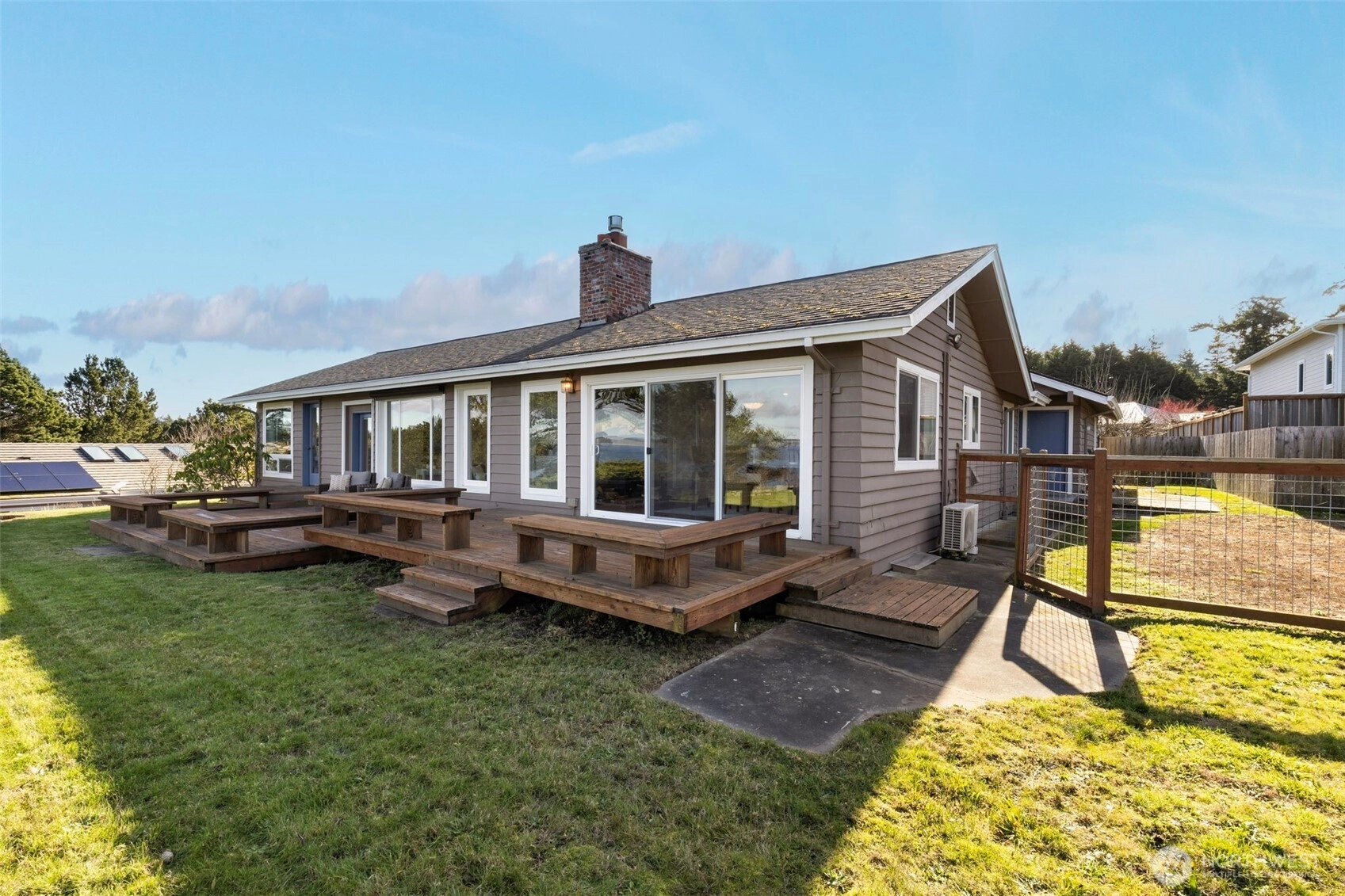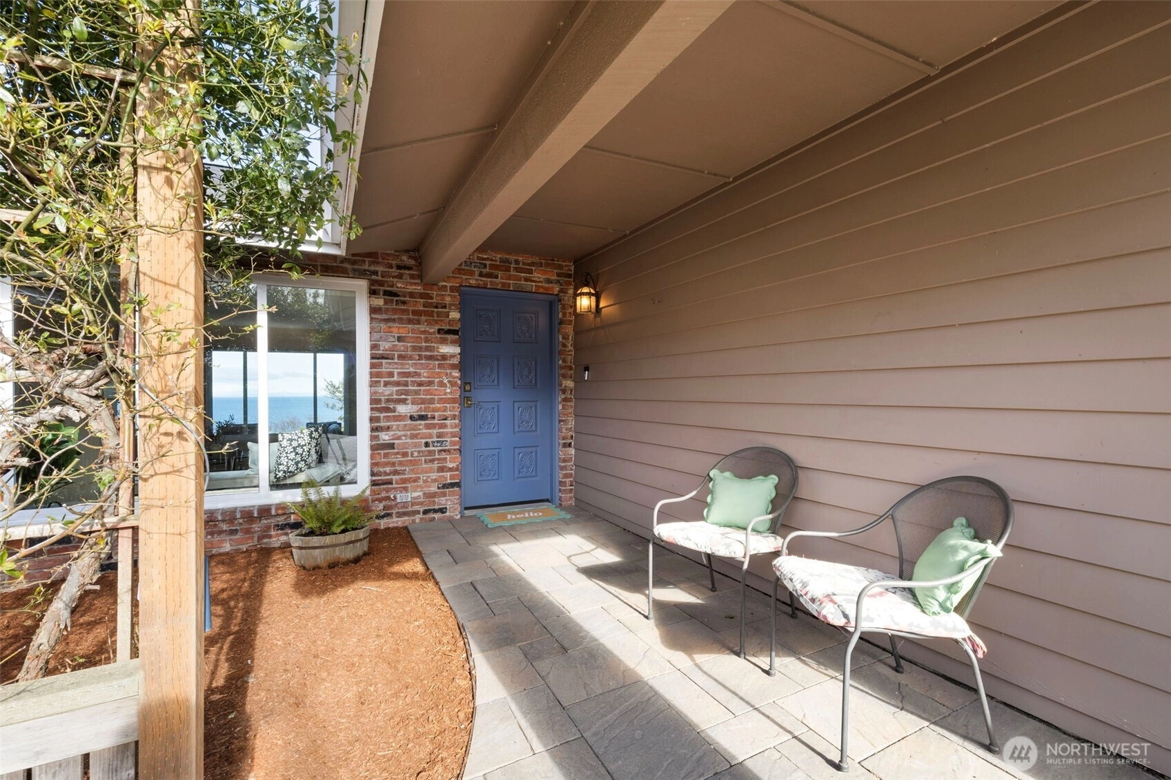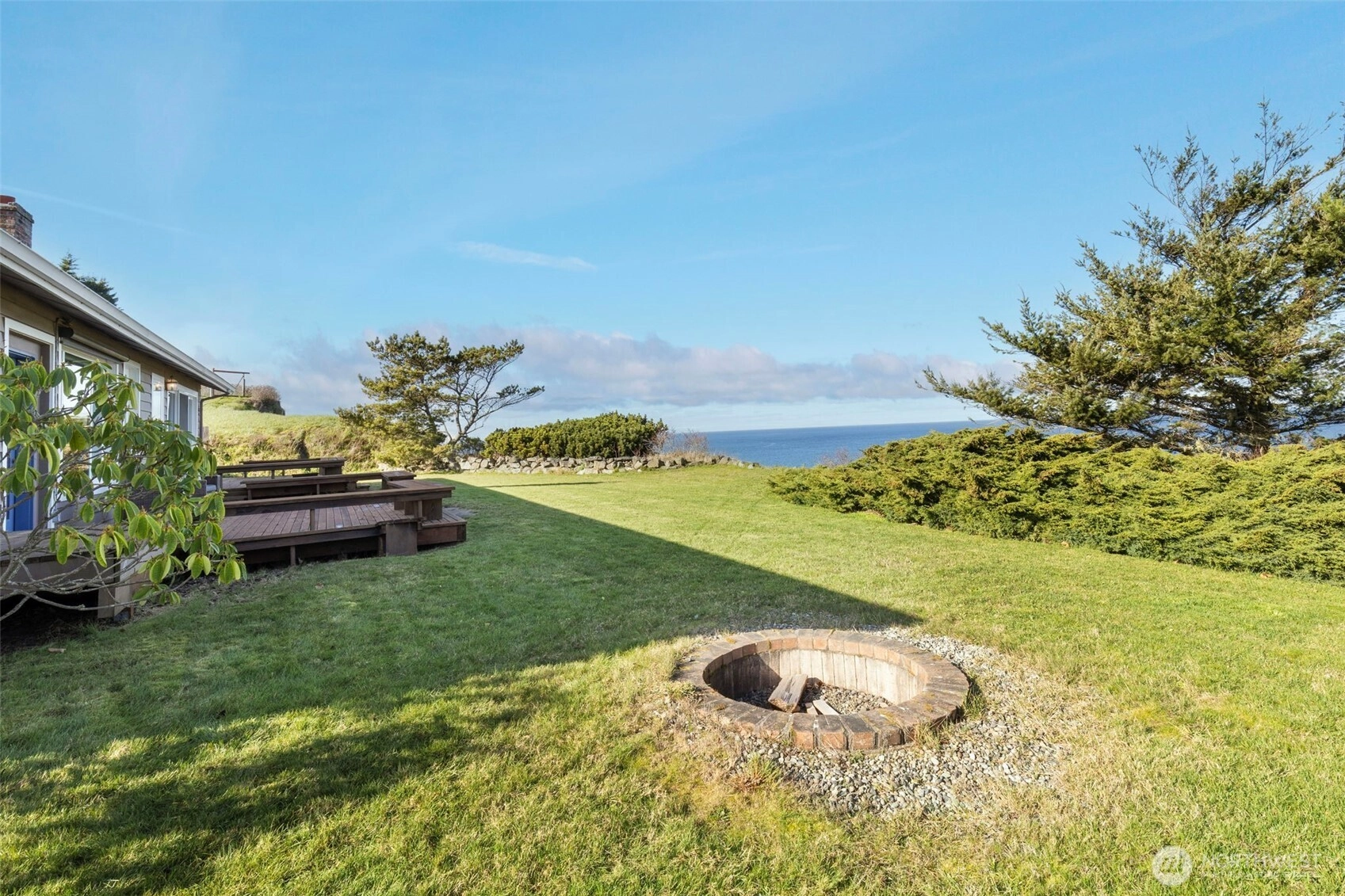 Expansive, panoramic views of the Strait of Juan de Fuca, the San Juan Islands, the Cascade Mountains, and Whidbey Island set the tone for this exceptional Port Townsend home. Perched on four lots in a quiet, off-the-beaten-path setting, the property offers rare privacy while remaining in the heart of town. Designed for comfortable main-level living, the home features zero-threshold entry from the attached two-car garage, creating seamless accessibility. The primary bedroom with ensuite bath opens directly onto the deck—an extraordinary vantage point for soaking in the ever-changing water and mountain views. Nearly every room in the home captures a breathtaking outlook. The user-friendly kitchen is both warm and functional, highlighted by a handmade wooden countertop crafted by the seller’s son—an artisan detail that adds character and heart. Two fireplaces—one wood-burning and one propane—offer cozy gathering spaces year-round. Downstairs, a spacious recreation room and third bedroom with a ¾ bath provide ideal flexibility for guests, hobbies, or multi-generational living. A rare opportunity to enjoy sweeping views, generous space, and peaceful privacy—all just moments from everything Port Townsend has to offer.