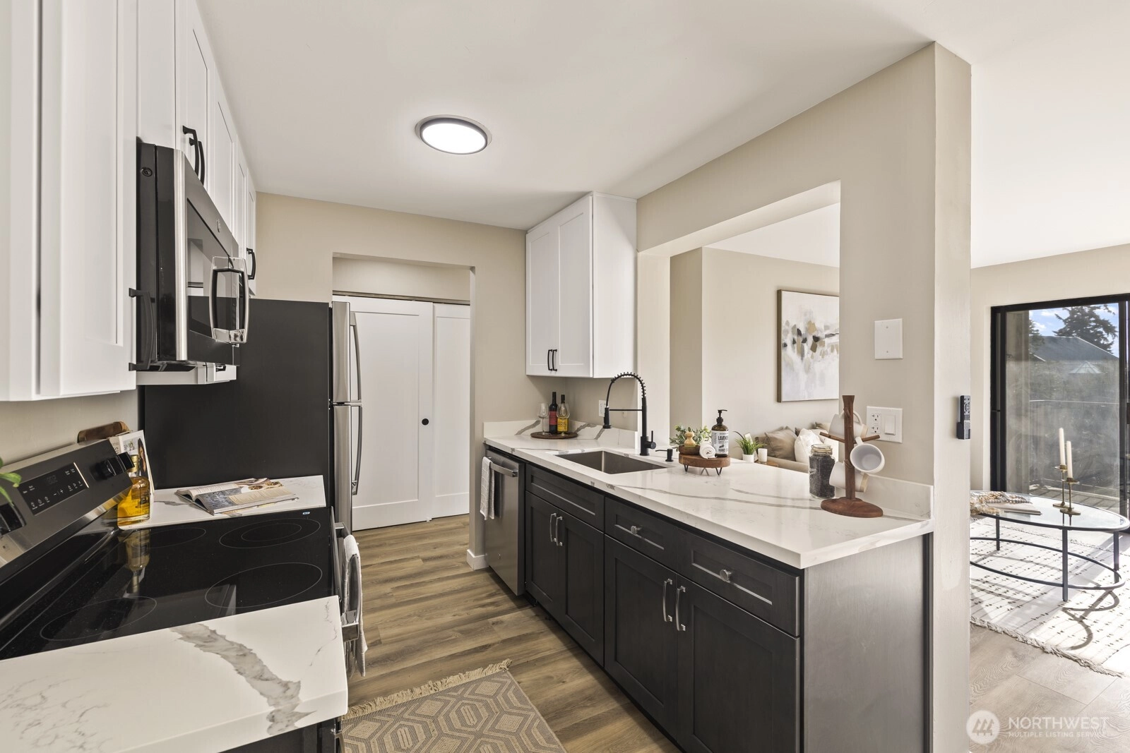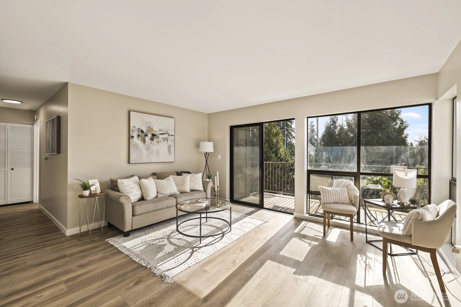 Wake up to serene lake views in this beautifully remodeled 1-bedroom, 1-bathroom condo at Bitter Lake Village. Overlooking picturesque Bitter Lake, this light-filled home offers a peaceful retreat with the convenience of city living.Every inch has been thoughtfully updated. The stylish kitchen features brand-new cabinets, sleek countertops, and modern finishes, flowing seamlessly into the living space with new flooring throughout. The spa-inspired bathroom shines with a custom tile shower, creating a fresh, contemporary feel. Step outside to your private balcony and enjoy morning coffee or evening sunsets with calming water views.Located just minutes from parks, trails, shopping, dining, and easy commuter routes, Bitter Lake Village offers the perfect balance of nature and accessibility. Whether you’re a first-time buyer, downsizer, or investor, this move-in-ready condo delivers comfort, style, and a view that never gets old.Lakefront living at an affordable price—don’t miss this one.
