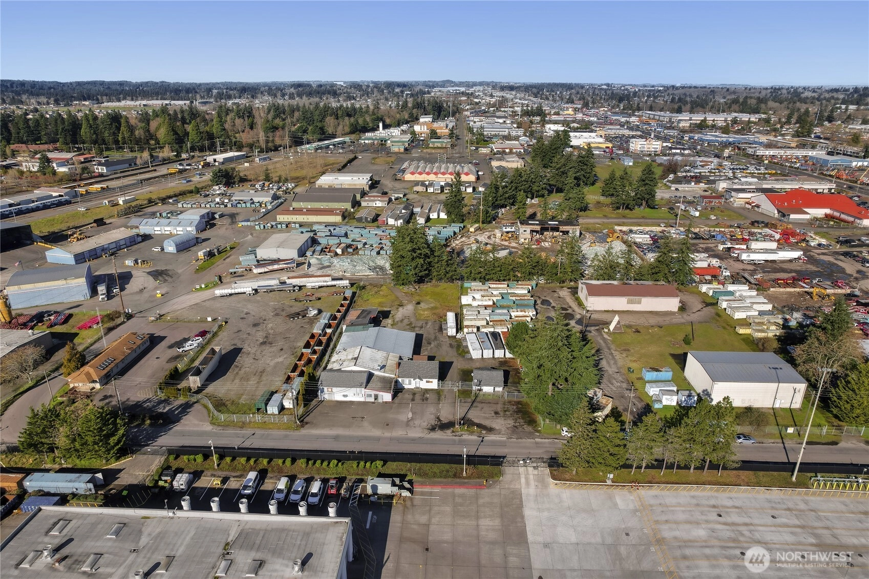 This fully paved and fenced property offers exceptional access, visibility, and flexibility just north of Pierce Transit and minutes from major freeway connections. Zoned Light Industrial, the site is ideal for owner-users, investors, or businesses seeking a strategic location in the heart of Lakewood’s industrial corridor. The property features two versatile buildings. The 1,260 sq/ft 1½-story building can function as a residential home or professional office and includes three bedrooms, one bathroom, a kitchen, and flexible interior space suitable for administrative or live/work use. The 6,604 sq/ft 1-story brick warehouse/manufacturing building is well-suited for food production, cold storage, distribution, or light manufacturing. The building features include three walk-in coolers, one walk-in freezer, a full kitchen, and dedicated storage areas, offering turnkey functionality for specialized operations. With strong street frontage, secure fencing, ample yard space, and excellent proximity to transit and freeway access, this property delivers both operational efficiency and long-term upside. Location plus utility makes this a rare opportunity in a high-demand industrial market. The paved yard allows for efficient parking, loading, and outdoor operations, while the fenced perimeter provides added security. Ideal for owner-operators seeking a live/work setup or investors targeting stable industrial demand with flexible future use potential.