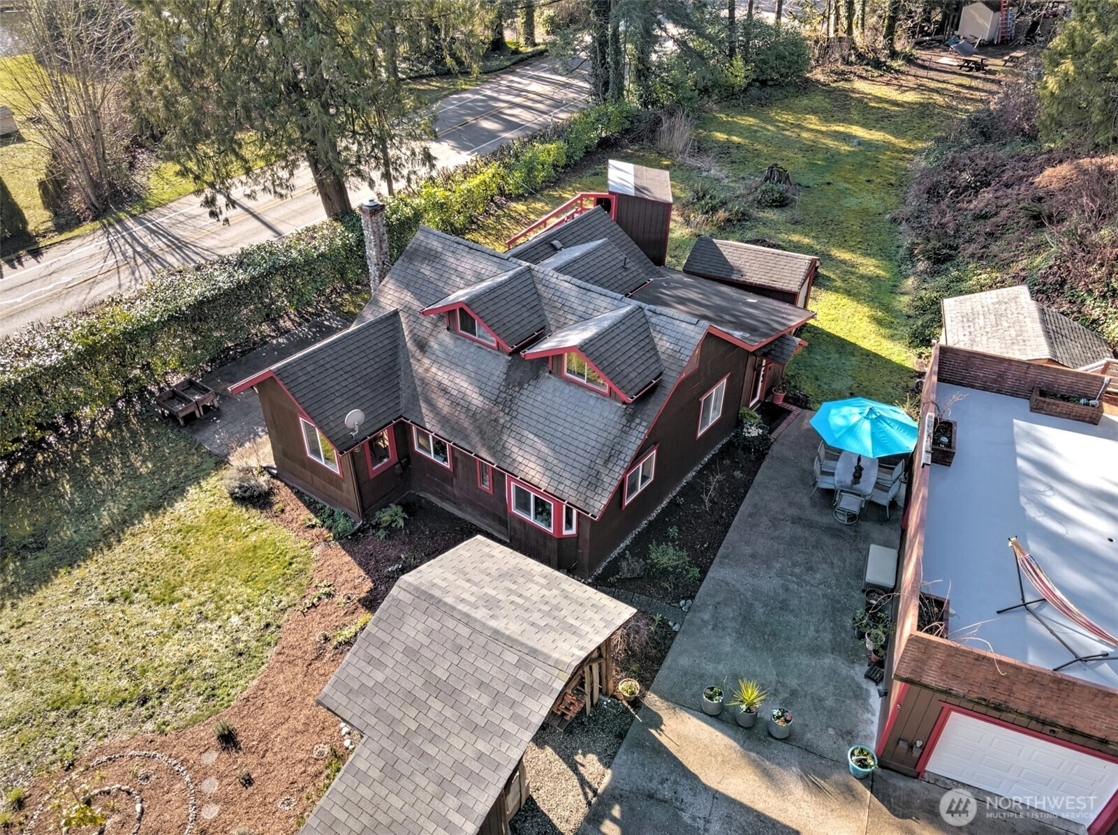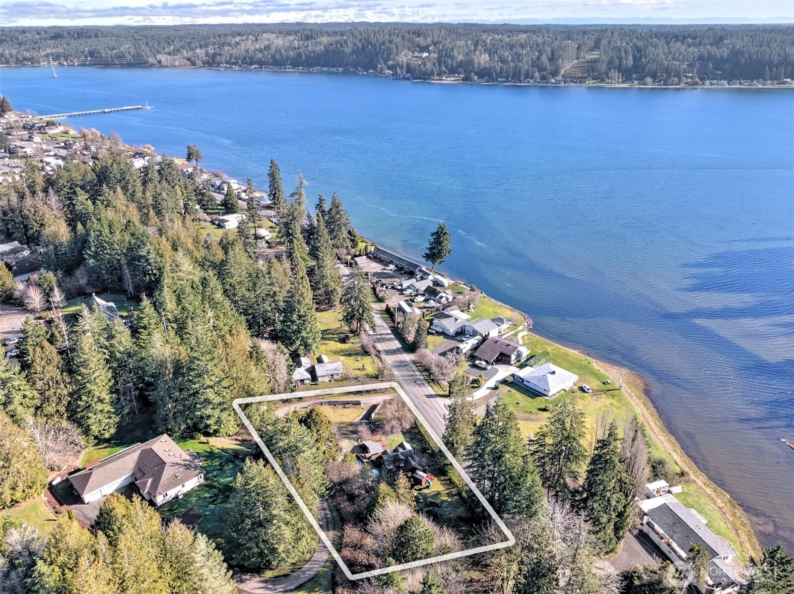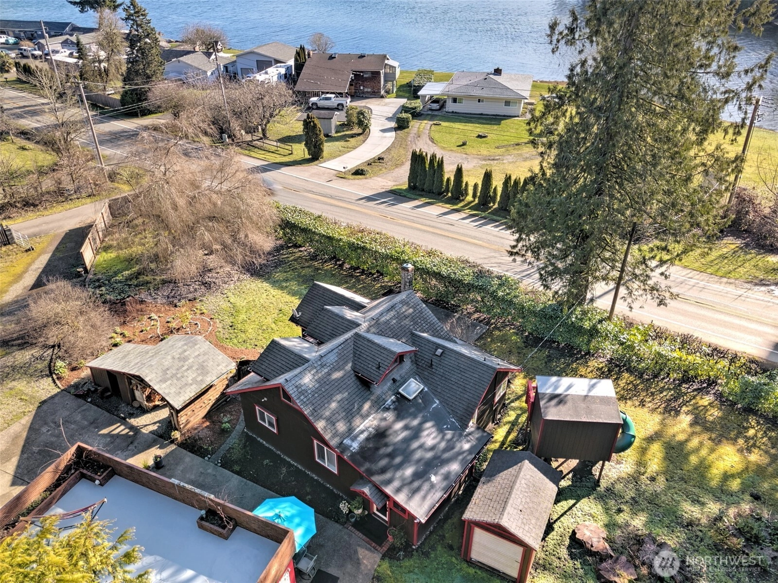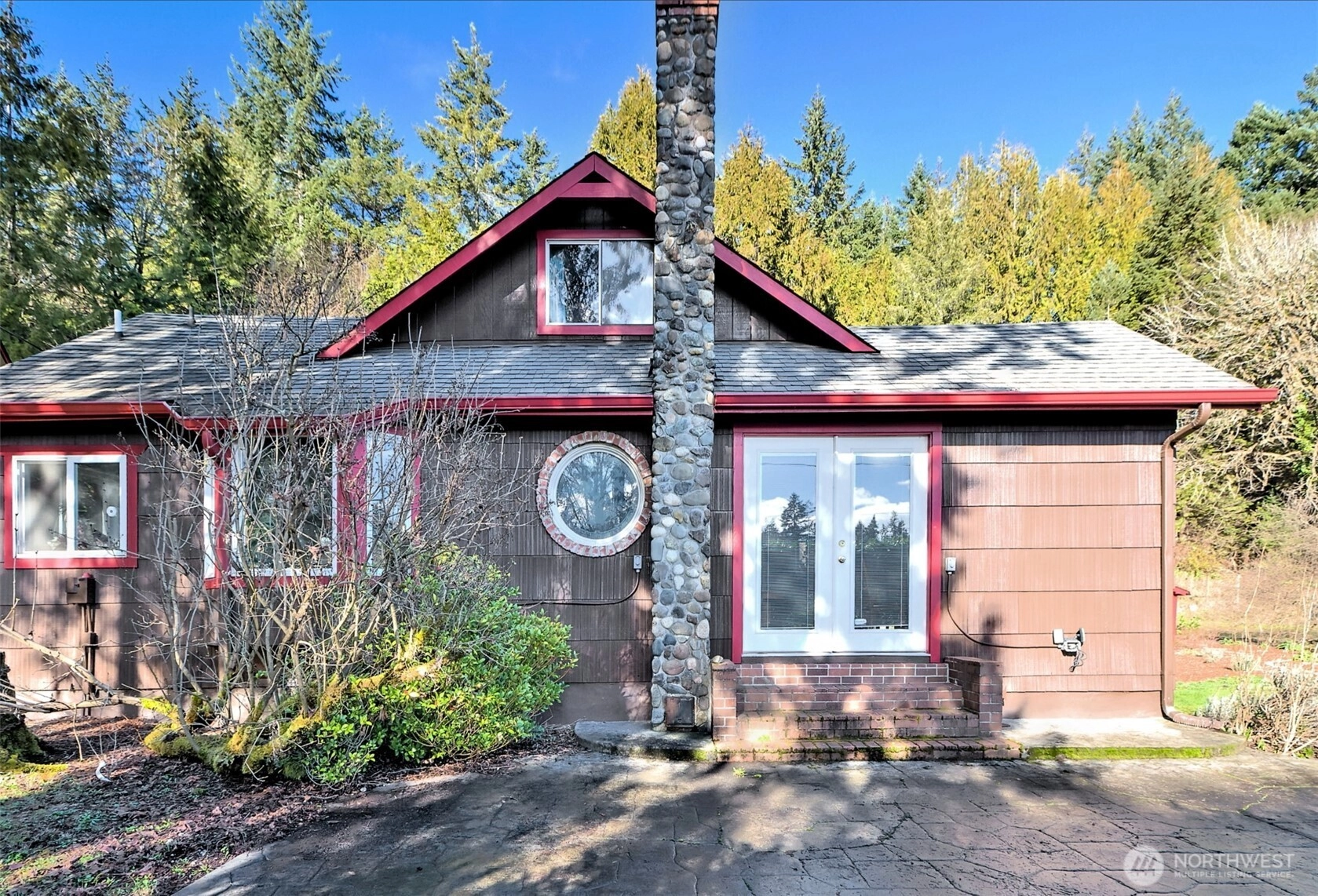 Discover a rare 1-acre opportunity in the storybook waterfront town of Allyn—a setting where charm, character, and Northwest beauty come together. This enchanting Hansel and Gretel style cabin is more than a home; it’s an experience, offering warmth, whimsy, and unforgettable craftsmanship throughout.Step inside to a welcoming brick hearth and custom woodwork—the heart of the cabin—and feel the cozy ambiance that defines this one-of-a-kind retreat. The kitchen features updated cabinets, while the main level offers two uniquely styled bedrooms: one wrapped in tongue and groove paneling with hidden cubbies,the other with its own magical personality. Upstairs, a large bedroom with wood paneling,vaulted tongue and groove ceilings and built in bed creates the perfect year-round getaway space. dedicated mudroom with washer and dryer keeps life organized and easy.Outdoor living is just as special with plenty of garden room, 3 RV Power Hookups, spacious parking and partially fenced; Watch the fireworks from a fun treehouse or the rooftop deck atop the single bay garage, both with view of North Bay/Case Inlet, and a true log style outbuilding that adds rustic charm and utility. Adventure awaits right outside your door—kayak park across the street, Allyn Waterfront Park within walking distance, plus local shops, and coffee spots just moments away.This is a property that captures the imagination and invites you to slow down, breathe deeply, and savor the magic of the Pacific Northwest.