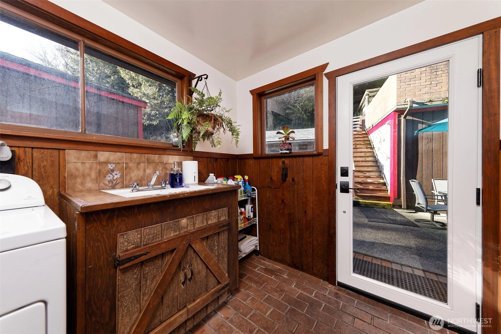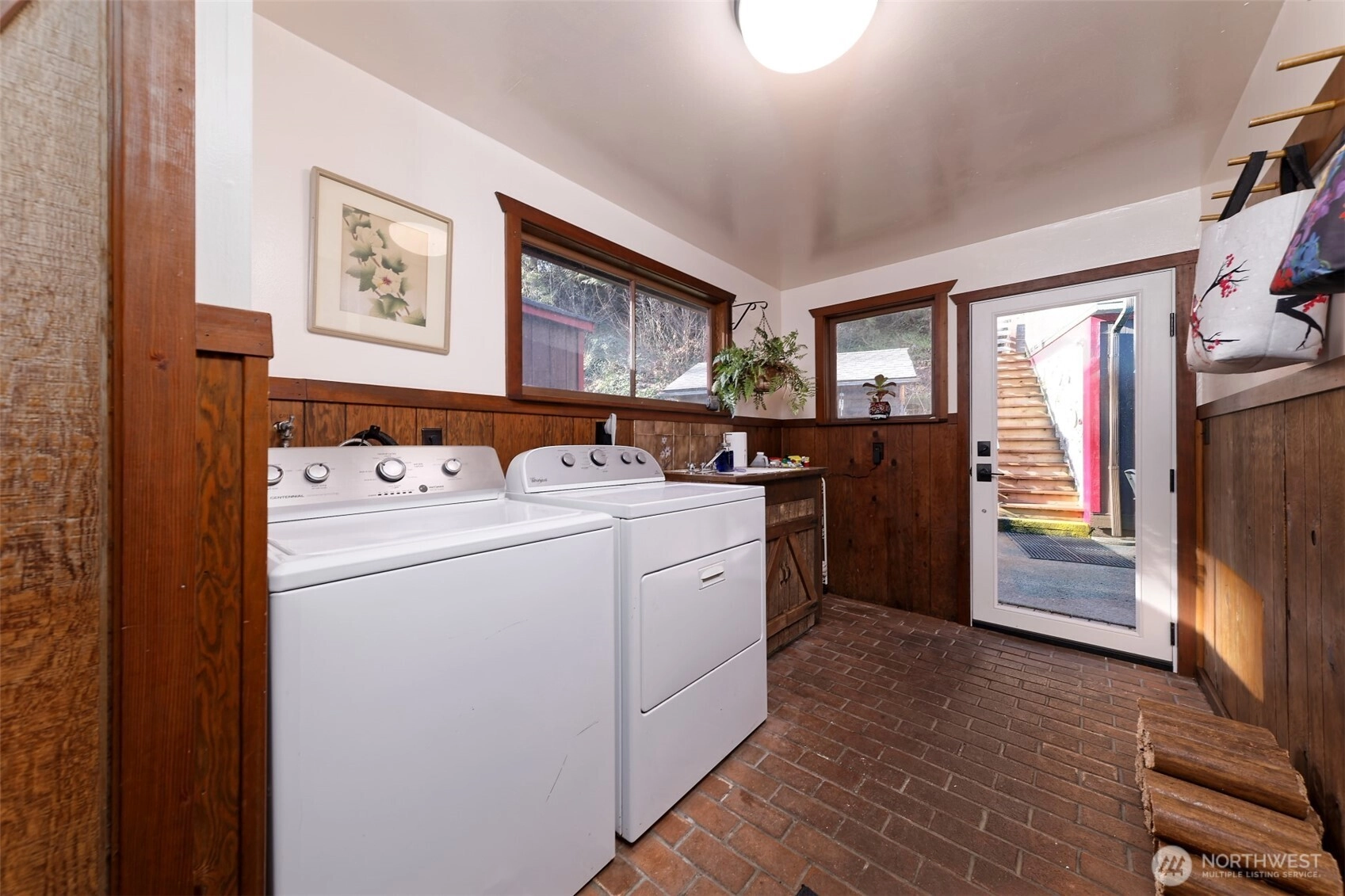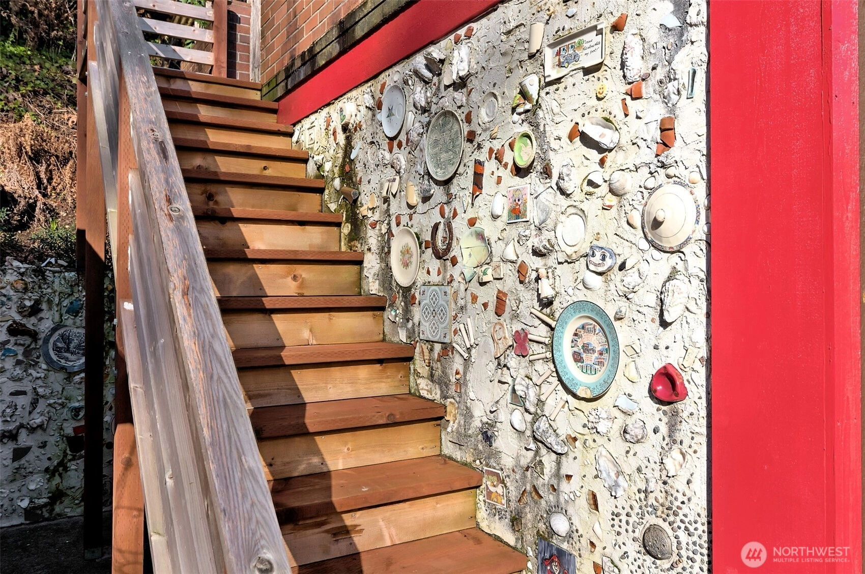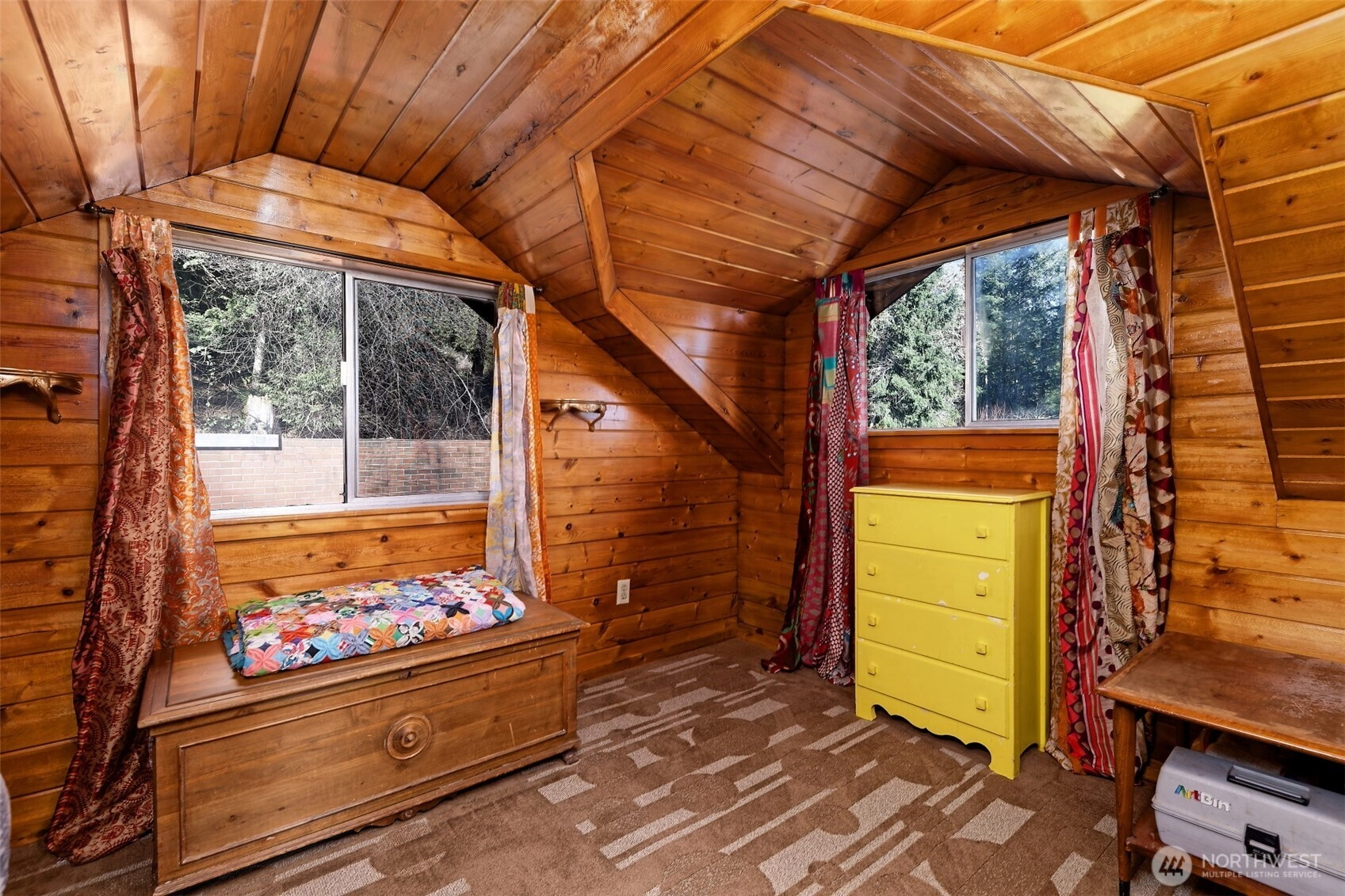 Discover a rare 1-acre opportunity in the storybook waterfront town of Allyn—a setting where charm, character, and Northwest beauty come together. This enchanting Hansel and Gretel style cabin is more than a home; it’s an experience, offering warmth, whimsy, and unforgettable craftsmanship throughout.Step inside to a welcoming brick hearth and custom woodwork—the heart of the cabin—and feel the cozy ambiance that defines this one-of-a-kind retreat. The kitchen features updated cabinets, while the main level offers two uniquely styled bedrooms: one wrapped in tongue and groove paneling with hidden cubbies,the other with its own magical personality. Upstairs, a large bedroom with wood paneling,vaulted tongue and groove ceilings and built in bed creates the perfect year-round getaway space. dedicated mudroom with washer and dryer keeps life organized and easy.Outdoor living is just as special with plenty of garden room, 3 RV Power Hookups, spacious parking and partially fenced; Watch the fireworks from a fun treehouse or the rooftop deck atop the single bay garage, both with view of North Bay/Case Inlet, and a true log style outbuilding that adds rustic charm and utility. Adventure awaits right outside your door—kayak park across the street, Allyn Waterfront Park within walking distance, plus local shops, and coffee spots just moments away.This is a property that captures the imagination and invites you to slow down, breathe deeply, and savor the magic of the Pacific Northwest.