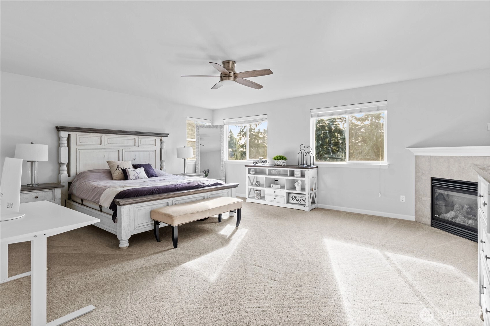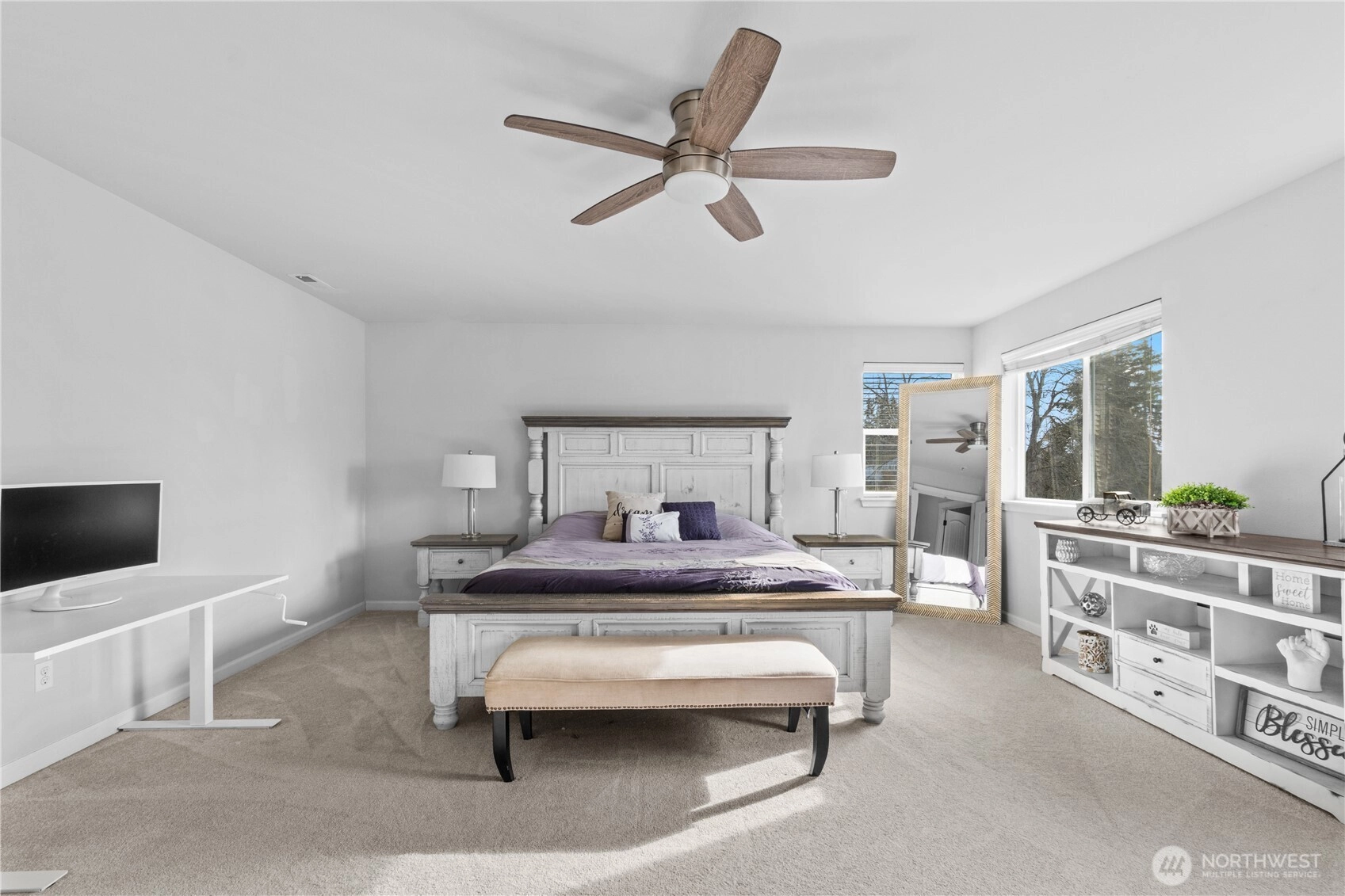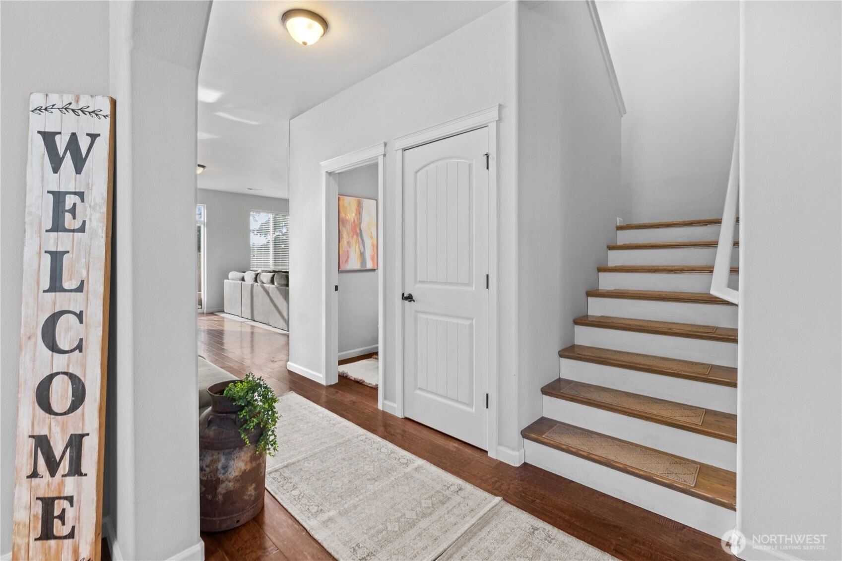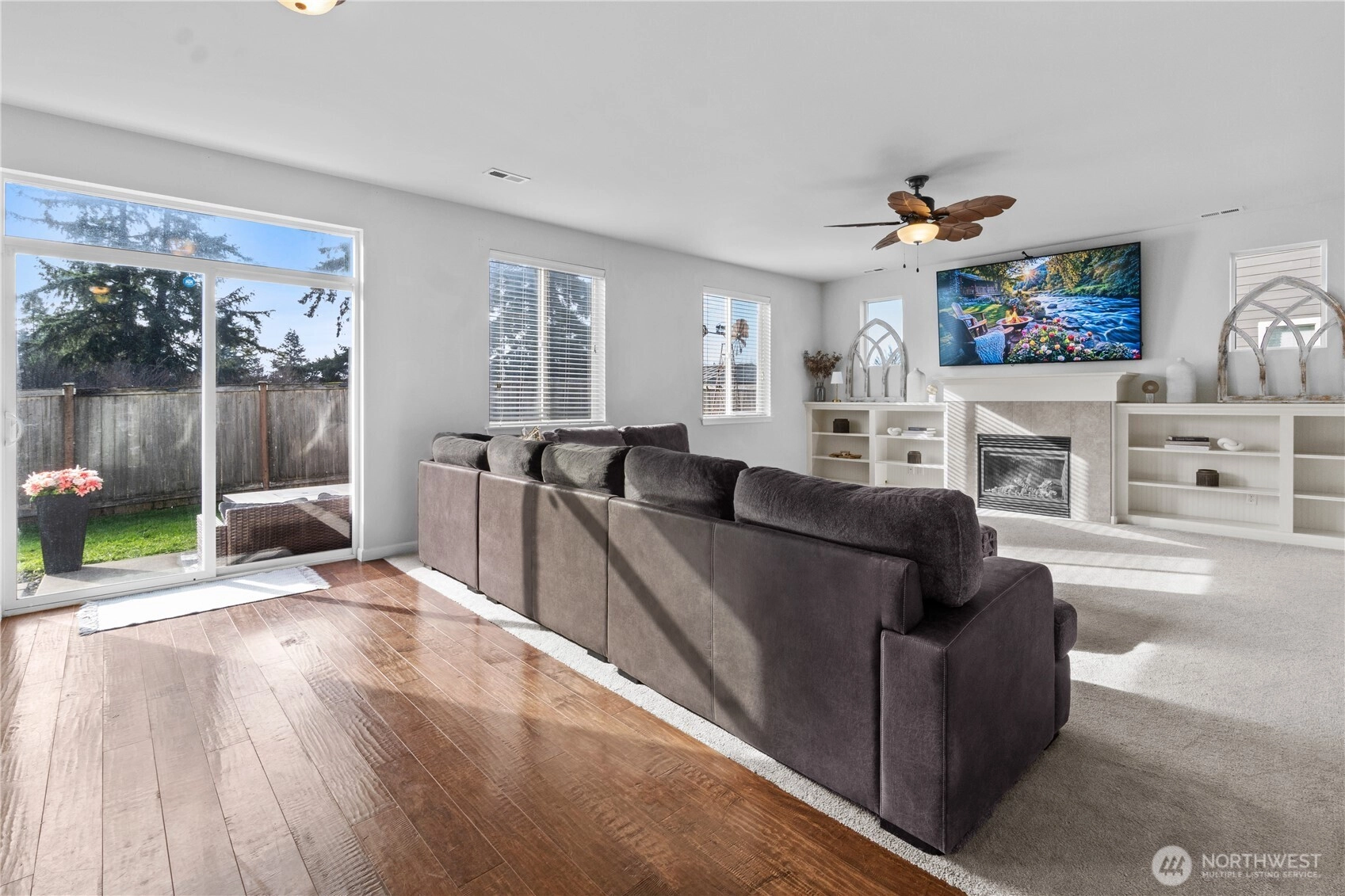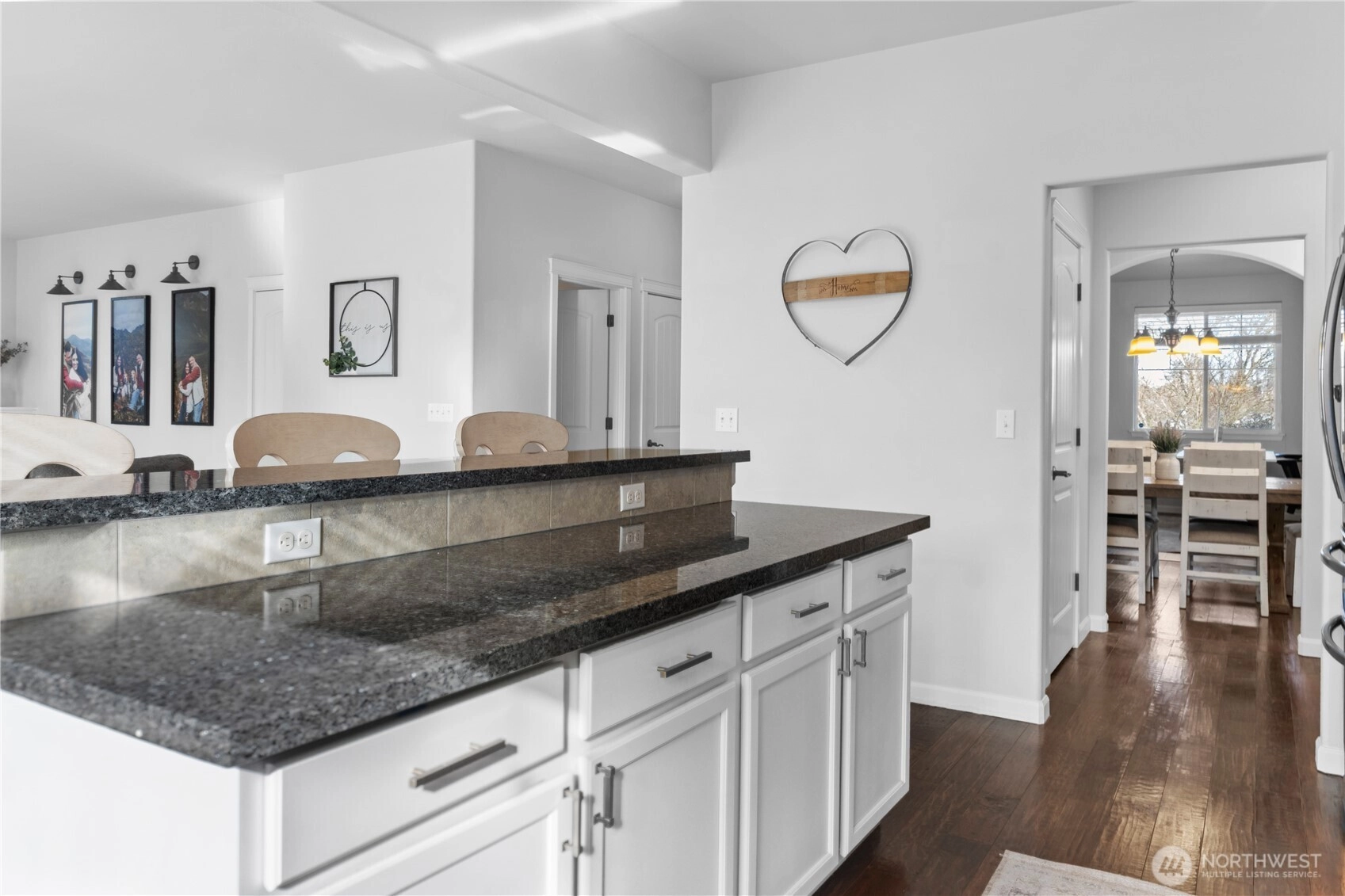 Stunning craftsman located in N. Yelm's coveted Cherry Meadows community. Spanning over 3100 square feet this home will impress even the most discerning buyers from the moment you step in the front door. Lower level features include hard surface flooring in den/office, formal dining, kitchen and entry, 9 foot ceilings, neutral paint selections and abundant natural light. The upgraded chef's kitchen includes ample counter space with quartz countertops, stainless appliances and oversized breakfast bar. Don't forget to visit the adjoining butler's pantry perfect for additional entertaining space or your perfect espresso station. Spacious great room off kitchen with built-ins and cozy gas fireplace complete the lower level. Upper level of home greets you with a huge bonus/flex space, 3 additional spacious bedrooms and a conveniently located utility room. The massive primary suite is your own private sanctuary overlooking green space behind the home and features a 2nd gas burning fireplace. Generous sized primary en suite features oversized soaking tub, dual sinks, private water closet and huge walk in. Fully fenced yard with no neighbors behind perfect for entertaining guests and tandem 3 bay garage. All of this with close proximity to schools, shopping, restaurants and JBLM. This home checks all of the boxes so prepare to be impressed.