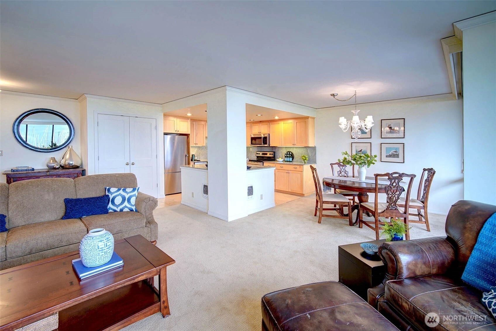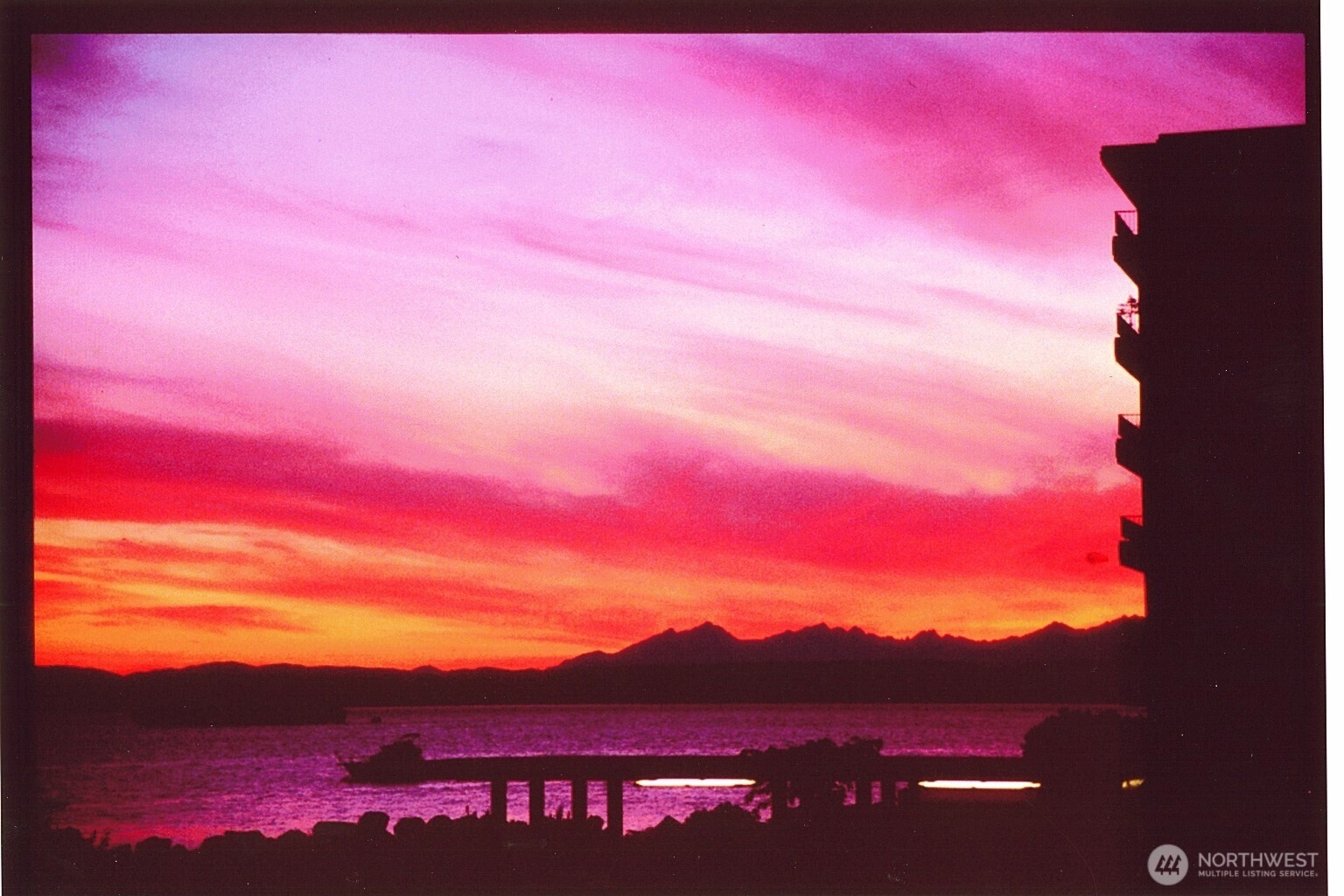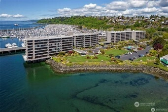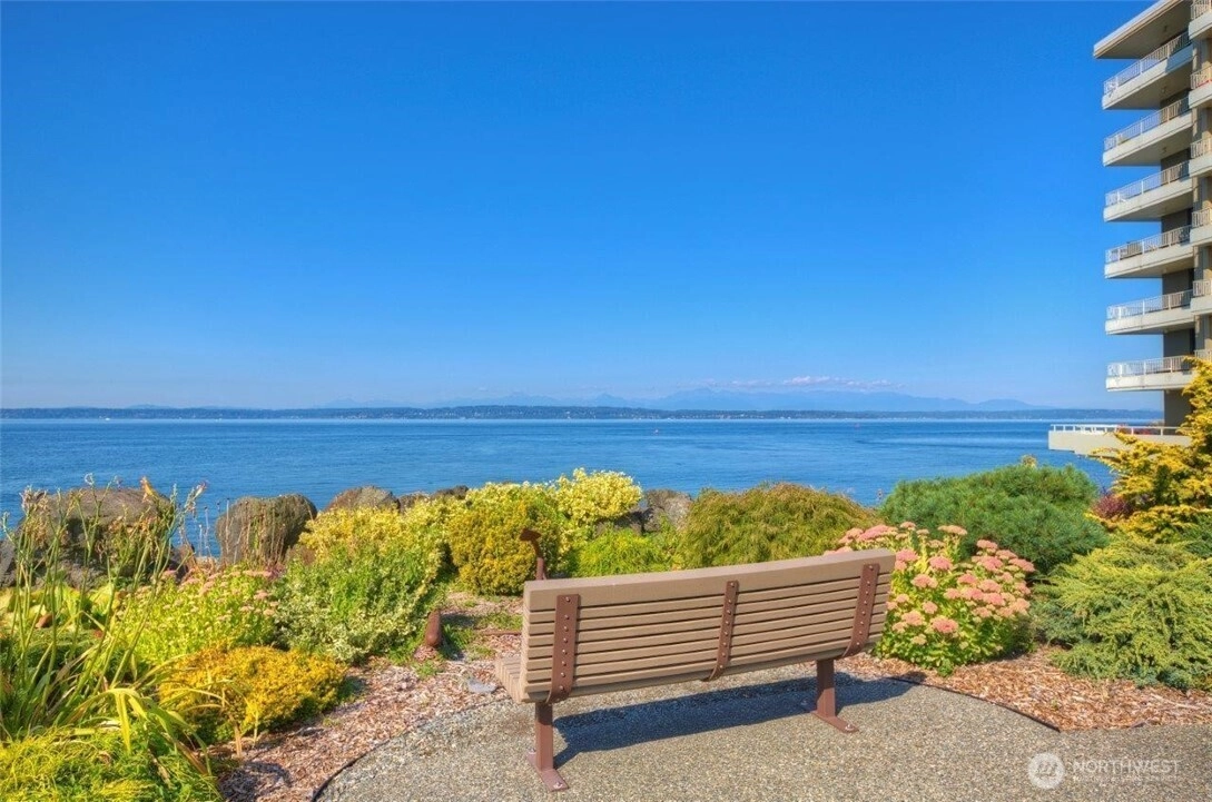 Sit back and bask in this handsome, thoughtfully renovated residence at water's edge and marvel at the moving panoramas of Shilshole Marina and the Sound with its myriad of sailboats, yachts and marine life parading before you. Succumb to the beauty of tangerine sunsets silhouetting the snow-capped Olympics..... vistas all framed by floor-to-ceiling picture windows. Spacious chef's kitchen with its sleek granite countertops and custom cabinetry opens onto dining room and king-size deck beyond.....a perfect spot for summertime BBQs, dining al fresco, or container gardening. Step outside and explore Sunset West's many amenities including 24 hour security, outdoor pool & spa, game room, fully equipped hobby shop, exercise and party rooms, RV/boat parking, sauna, and electric car charging stations. Embraced by 11 acres of manicured grounds, a stone's throw to Ray's Boathouse, Golden Gardens Park, the Burke Gilman Trail and minutes to downtown Ballard with its array of restaurants, shops and entertainment...... It's Resort Living - In City!