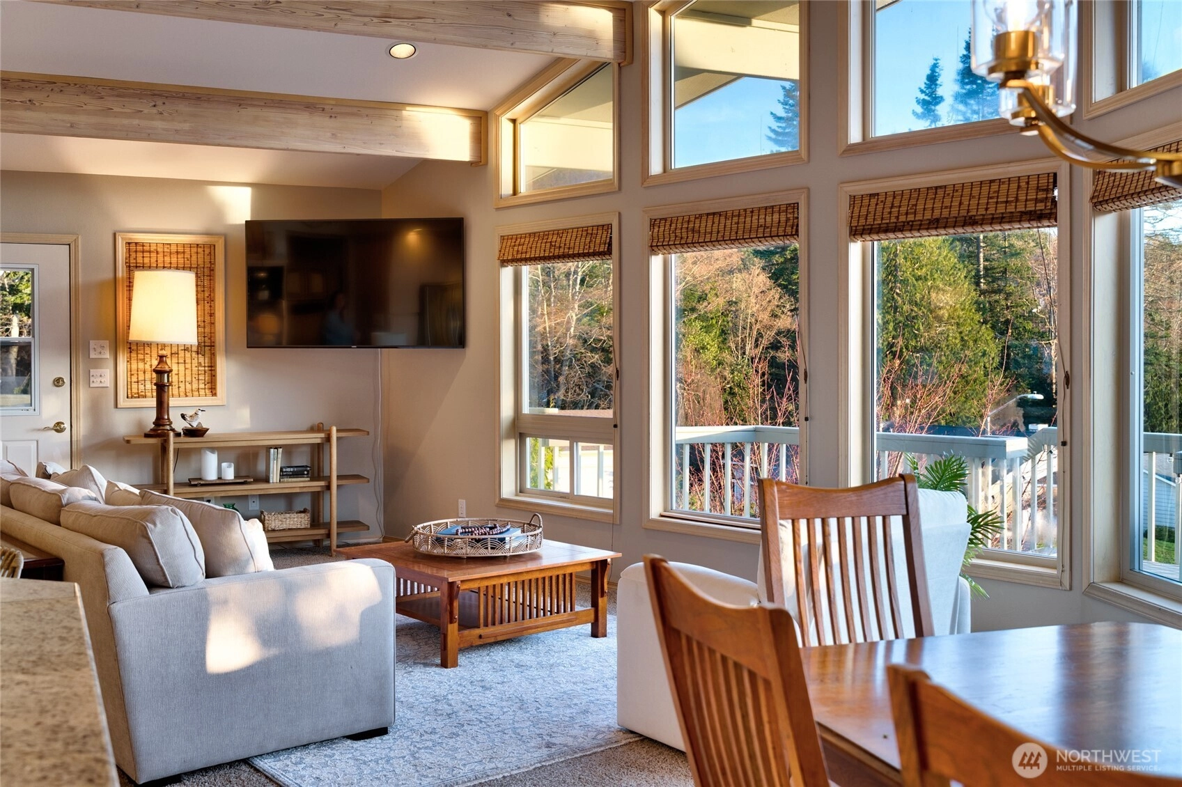 Live the Northwest lifestyle in this soaring contemporary retreat in Skyline. Sunlight fills the open-concept living spaces, creating the perfect setting for gatherings, quiet mornings, and cozy evenings at home. Step outside to a stunning 600 sq ft deck—ideal for summer dinners, morning coffee, or relaxing under the stars. With 3 bedrooms, 2¾ baths, and a private-entry office, there’s space to work, host, and unwind. A hobby/craft room, garage workshop, and covered Boat/RV parking offer room for all your passions. Surrounded by charming, low-maintenance gardens on a generous corner lot, this home blends comfort, beauty, and everyday ease. Skyline HOA with community beach, neighborhood parks, pickleball courts and clubhouses ($245/year dues). Quick access to Forest Land trails.