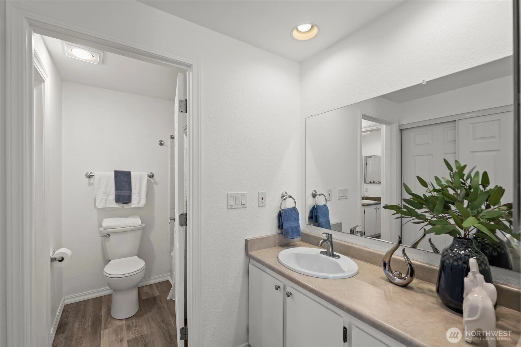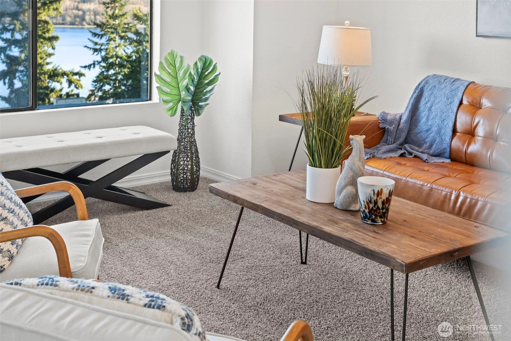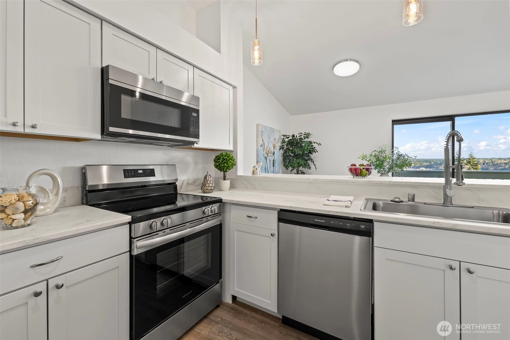 This top-floor Bremerton condo with a beautiful balcony view of Sinclair Inlet and Mt. Rainier has been fully remodeled to provide a clean and inviting living space. The bright kitchen features brand new modern cabinetry and sleek stainless steel appliances, complemented by handsome new flooring and contemporary light fixtures throughout the main living areas. Every room feels refreshed with a crisp, sophisticated paint palette and plush new carpeting in the bedrooms. Practicality is balanced with quality, as the home includes a brand-new water heater and a new washer and dryer set. This polished, turn-key property provides a seamless move-in experience, combining essential modern upgrades with a comfortable, well-maintained atmosphere. From the updated surfaces to the new appliances, every detail has been handled to ensure this home is both functional and stylish for its next owner.