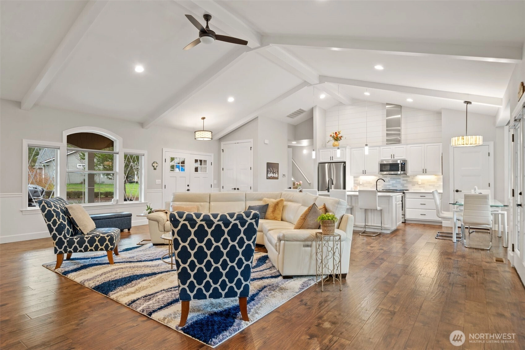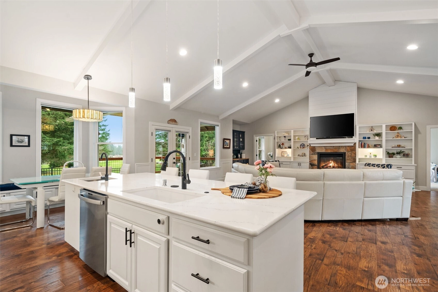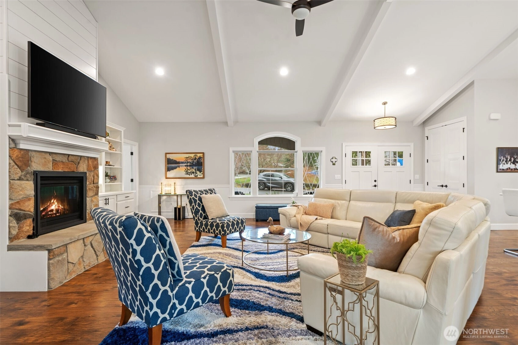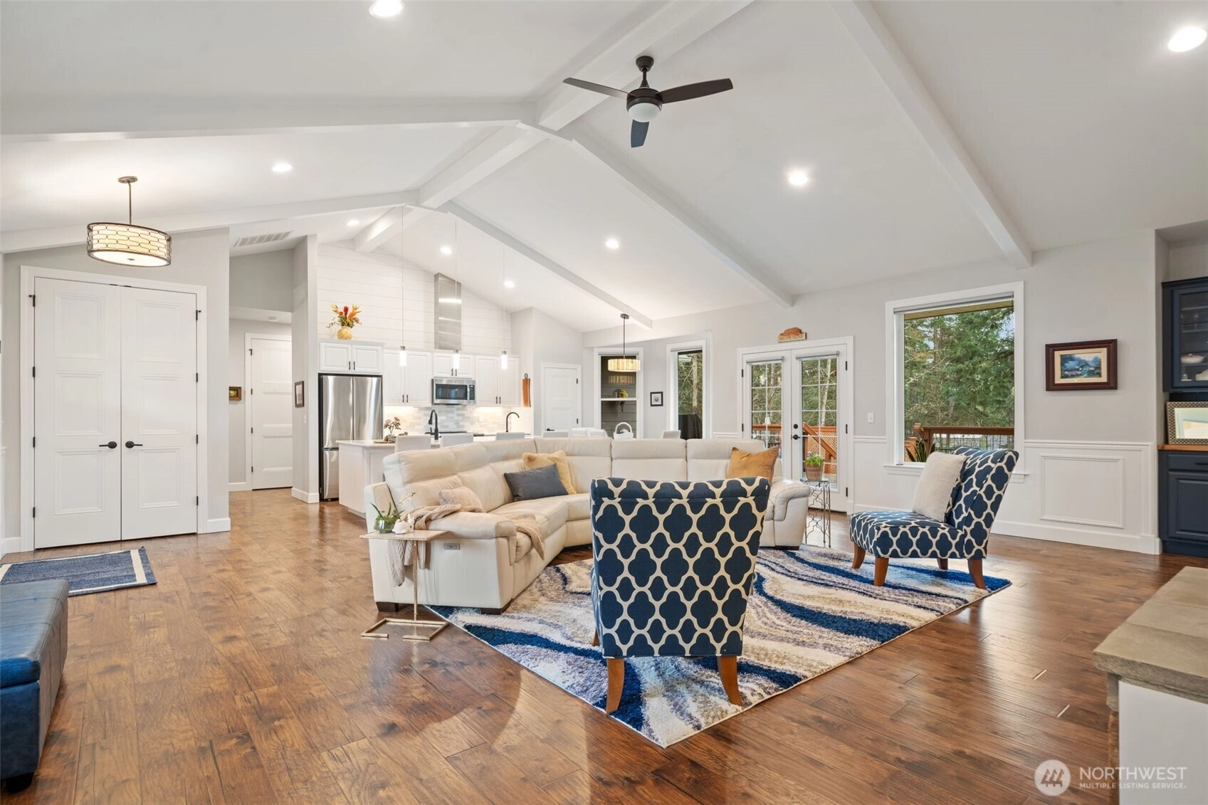 Like-new main-level living in Lakeland Village with stunning views straight down the 9th fairway. This quality-built home features an open-concept design with a beautifully appointed kitchen, generous living room, tall ceilings, propane fireplace, and large bar counter ideal for entertaining. The spacious primary suite offers golf course views, private deck access, and a hot tub for relaxing evenings. Two guest bedrooms share a Jack-and-Jill bath, plus an additional 3/4 bath on the main level. A large mudroom off the 3-car garage and a generous bonus room above provide flexible living space. Enjoy year-round outdoor living on the partially covered deck, all on a level cul-de-sac lot. Lakeland Village offers a 27-hole golf course, 50-acre trout-stocked lake, tennis and pickleball courts, clubhouse, bistro, playground, and more. Exceptional attention to detail and pride of ownership throughout—welcome home!