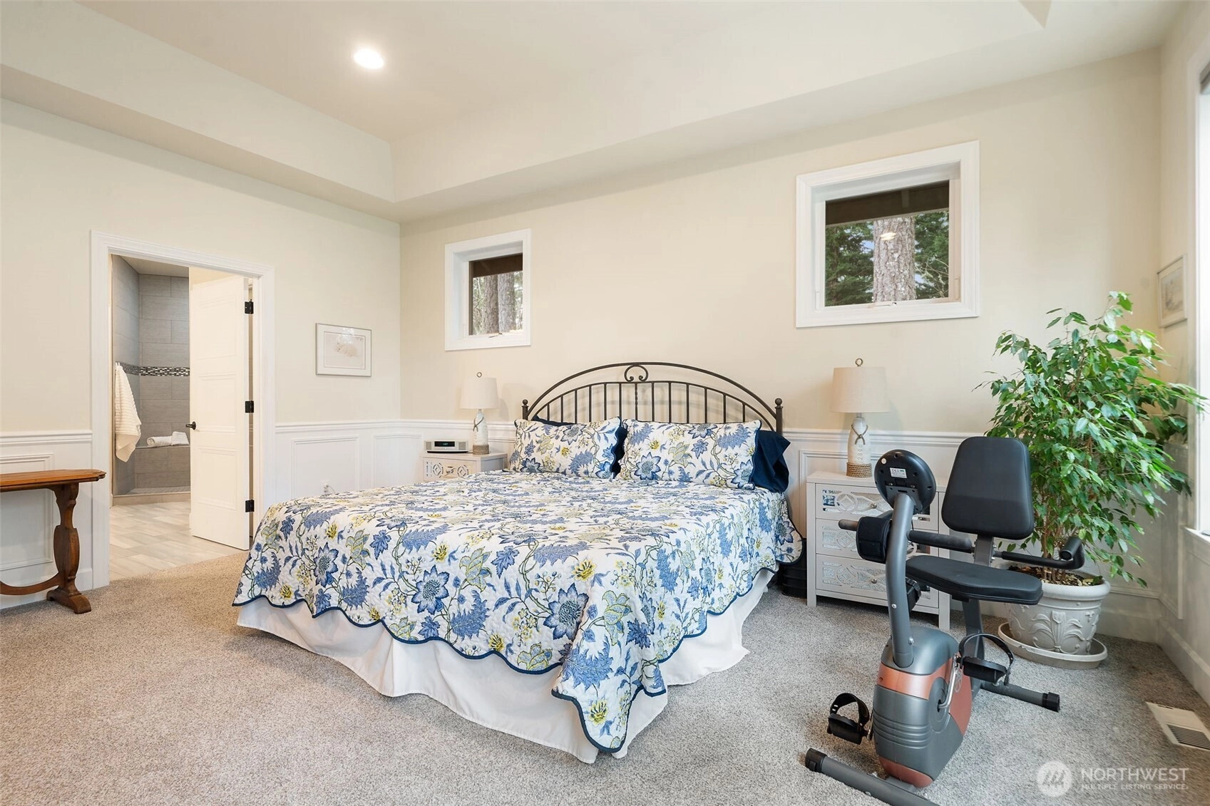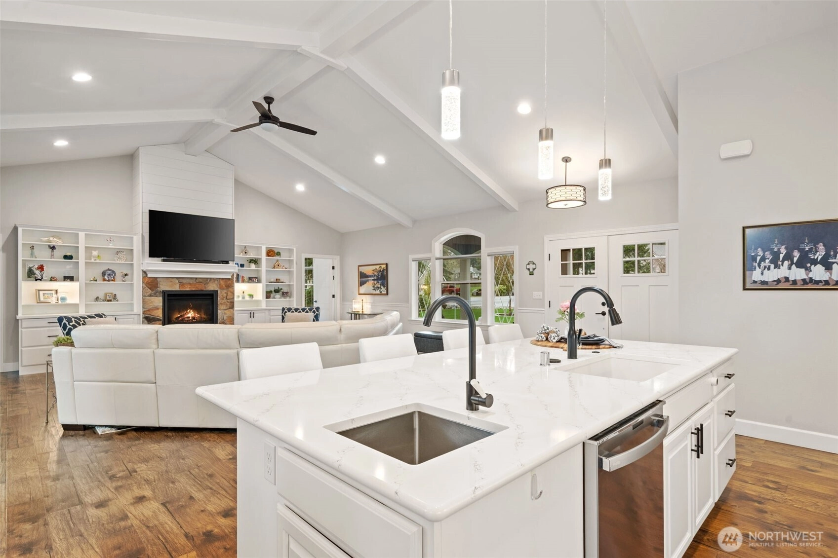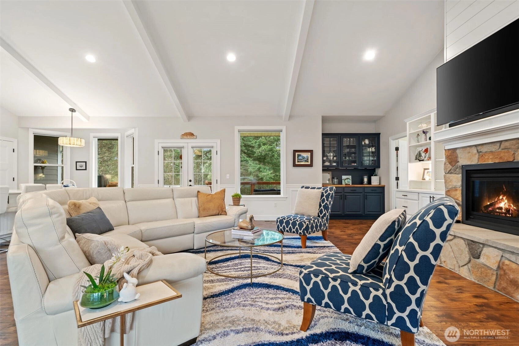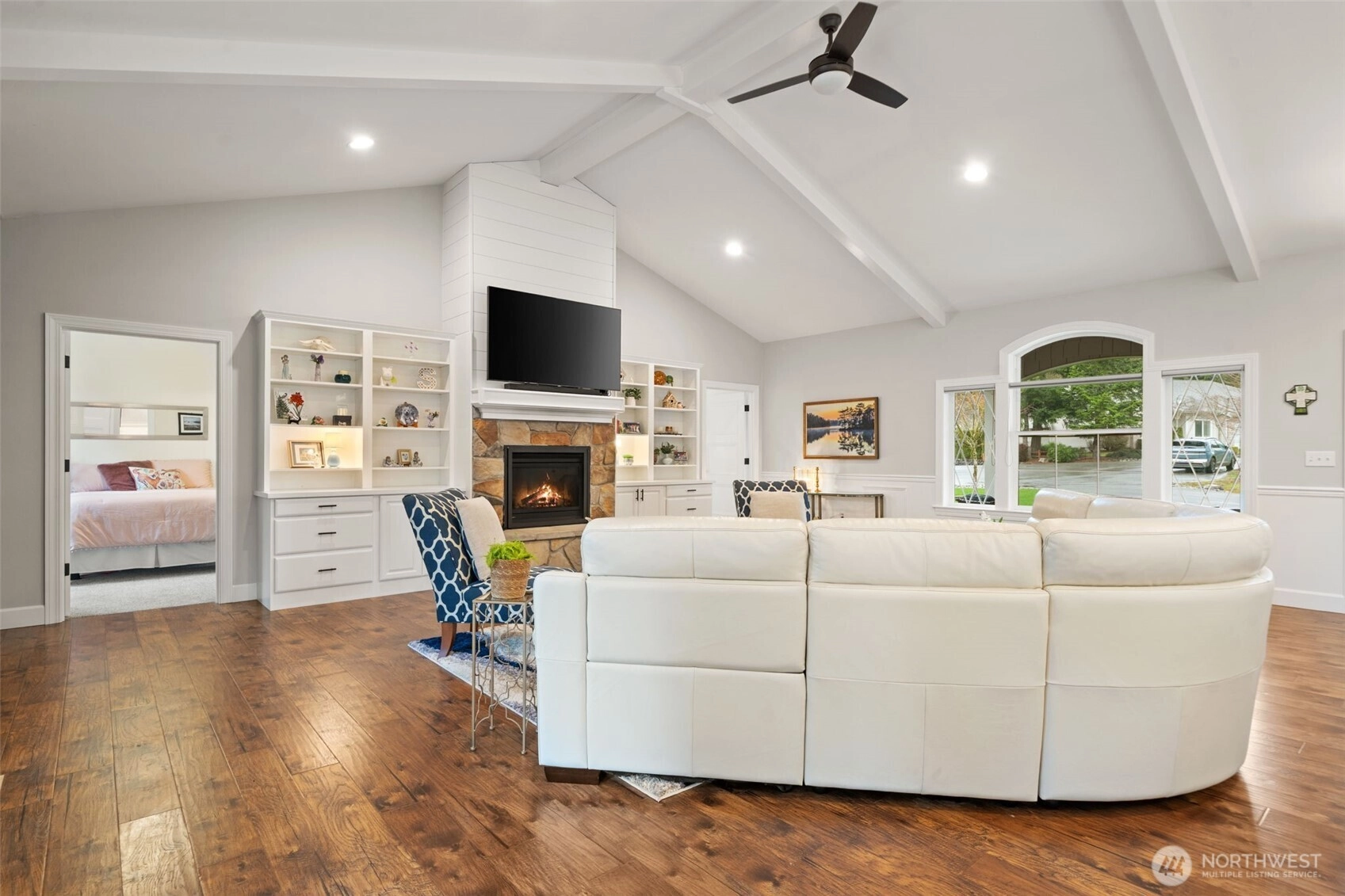 Like-new main-level living in Lakeland Village with stunning views straight down the 9th fairway. This quality-built home features an open-concept design with a beautifully appointed kitchen, generous living room, tall ceilings, propane fireplace, and large bar counter ideal for entertaining. The spacious primary suite offers golf course views, private deck access, and a hot tub for relaxing evenings. Two guest bedrooms share a Jack-and-Jill bath, plus an additional 3/4 bath on the main level. A large mudroom off the 3-car garage and a generous bonus room above provide flexible living space. Enjoy year-round outdoor living on the partially covered deck, all on a level cul-de-sac lot. Lakeland Village offers a 27-hole golf course, 50-acre trout-stocked lake, tennis and pickleball courts, clubhouse, bistro, playground, and more. Exceptional attention to detail and pride of ownership throughout—welcome home!