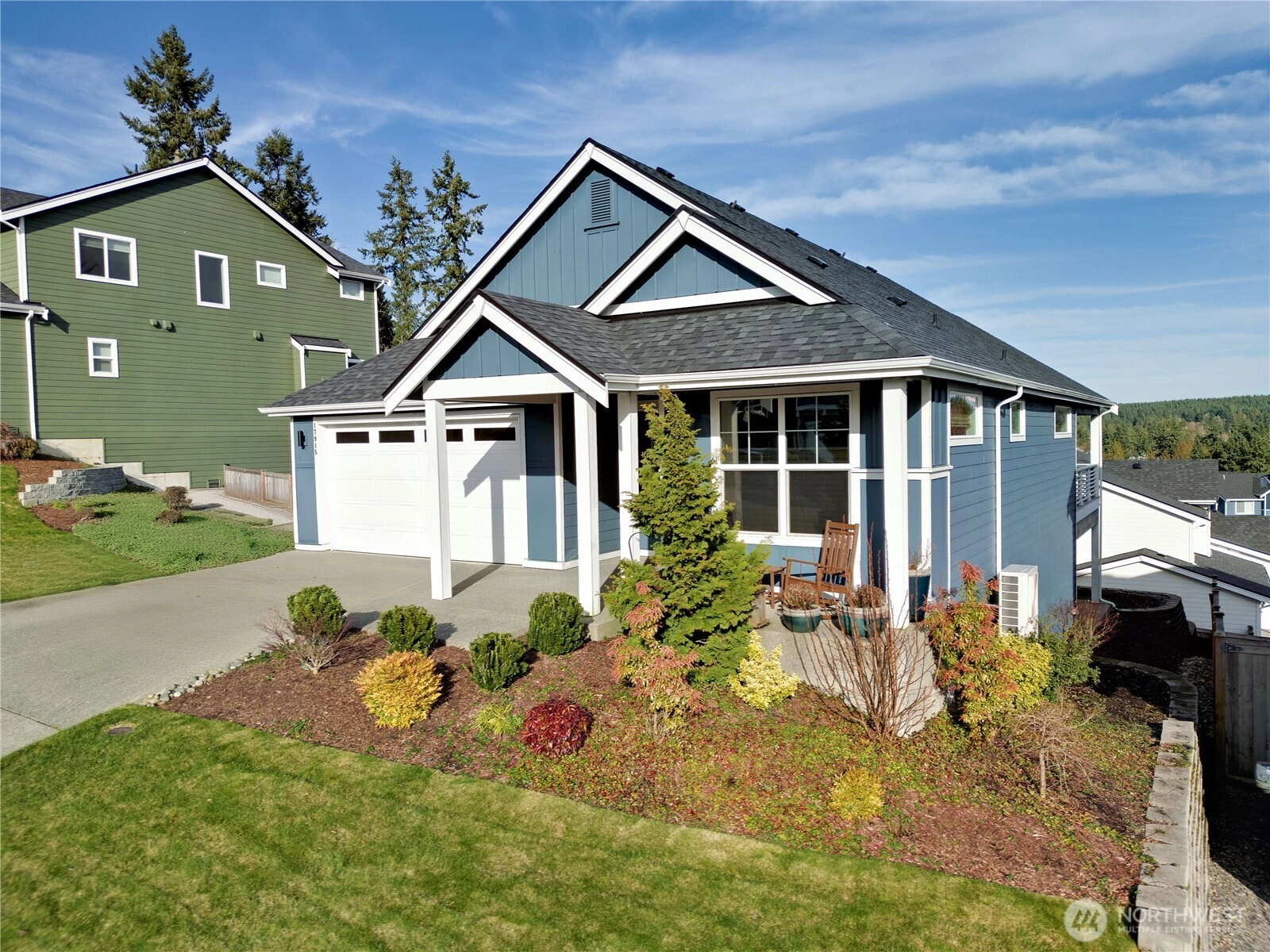 Set in the sought-after Crystal View community of Poulsbo, this immaculate home offers Puget Sound & expanding territorial views. The open-concept design highlights a gourmet kitchen w/painted soft-close shaker cabinets, quartz counters & walk-in pantry. Main floor included primary bed w/5 piece bath & walk-in closet, 2nd bed/den & 3/4 bath, dining room with covered view deck, and privacy-tinted windows add style & efficiency. Property includes additional covered patio, terraced garden spaces, retaining walls, & front yard irrigation. Added convenience of laundry w/sink on main, storage room, minutes to all grade levels in North Kitsap Schools, Frank Raab Park, downtown Poulsbo dining, and Seattle Ferry. Potential assumable loan at 3%!!