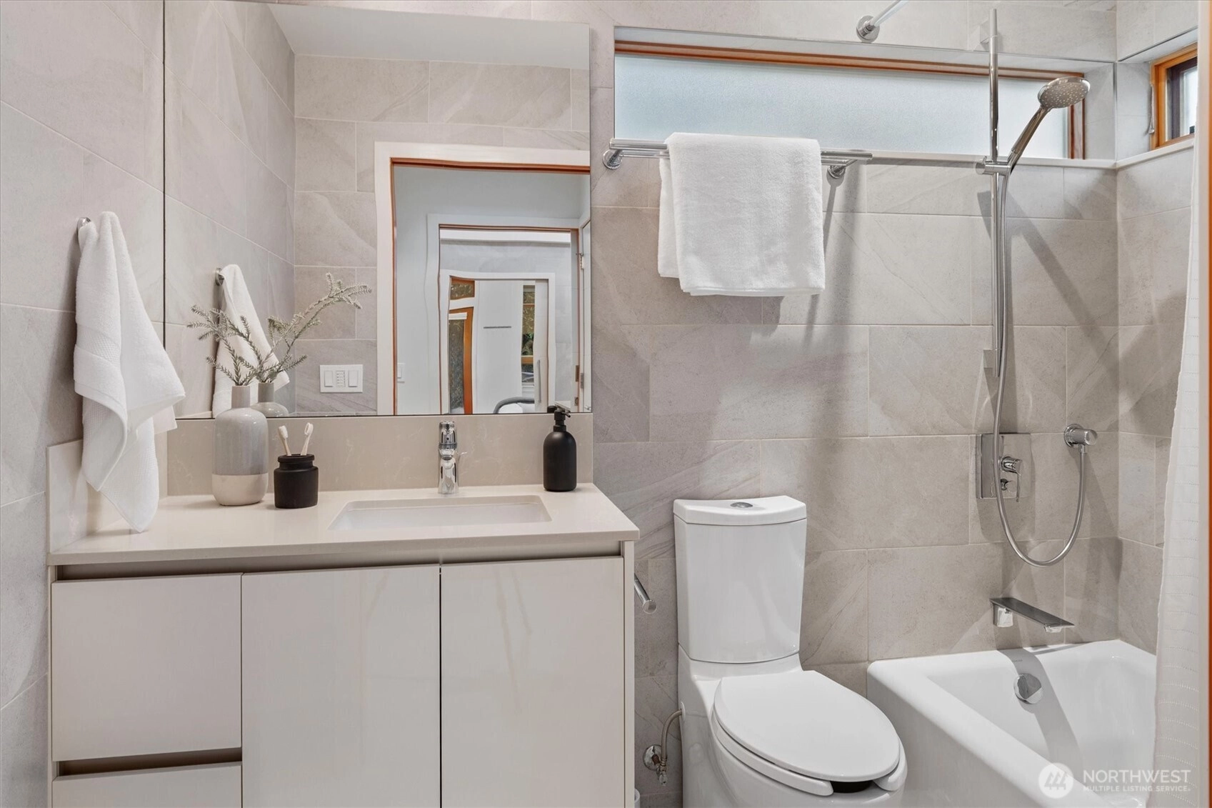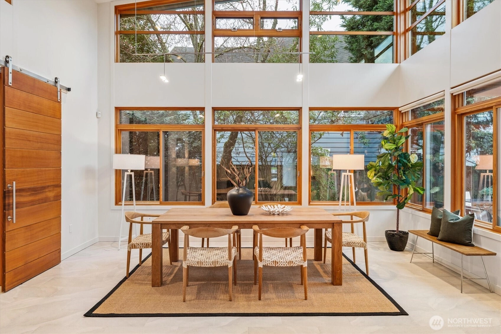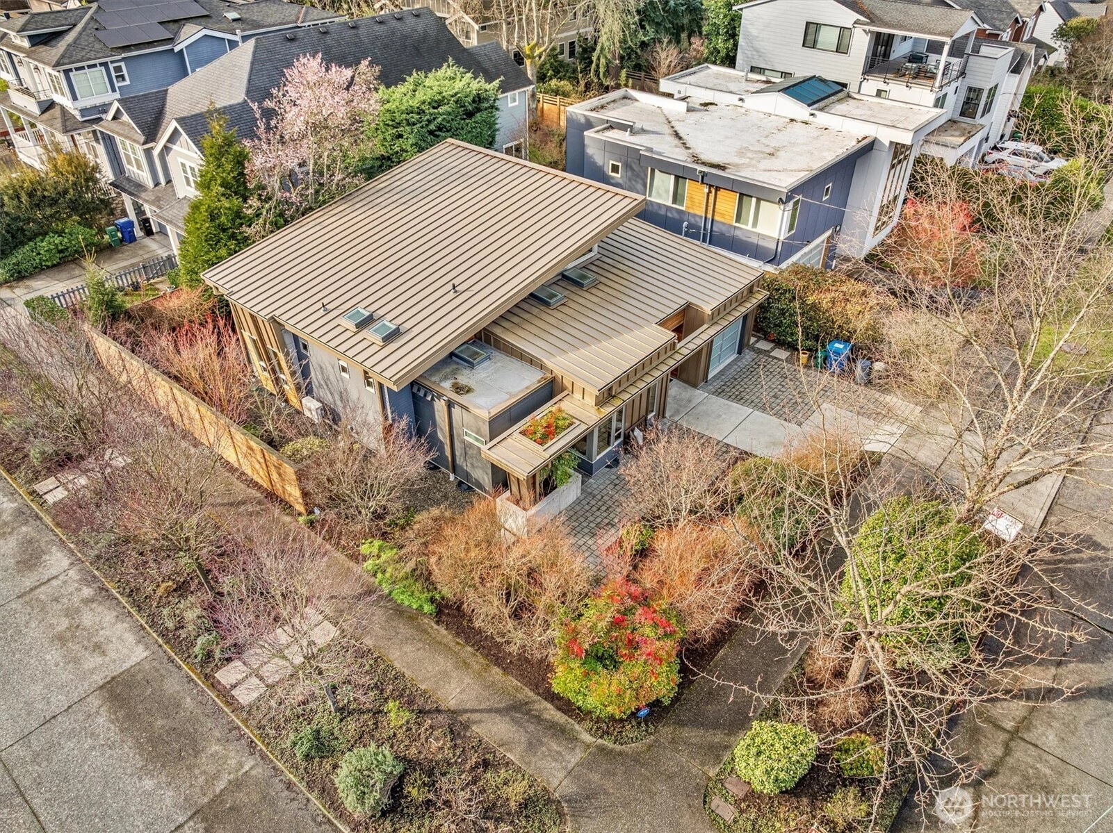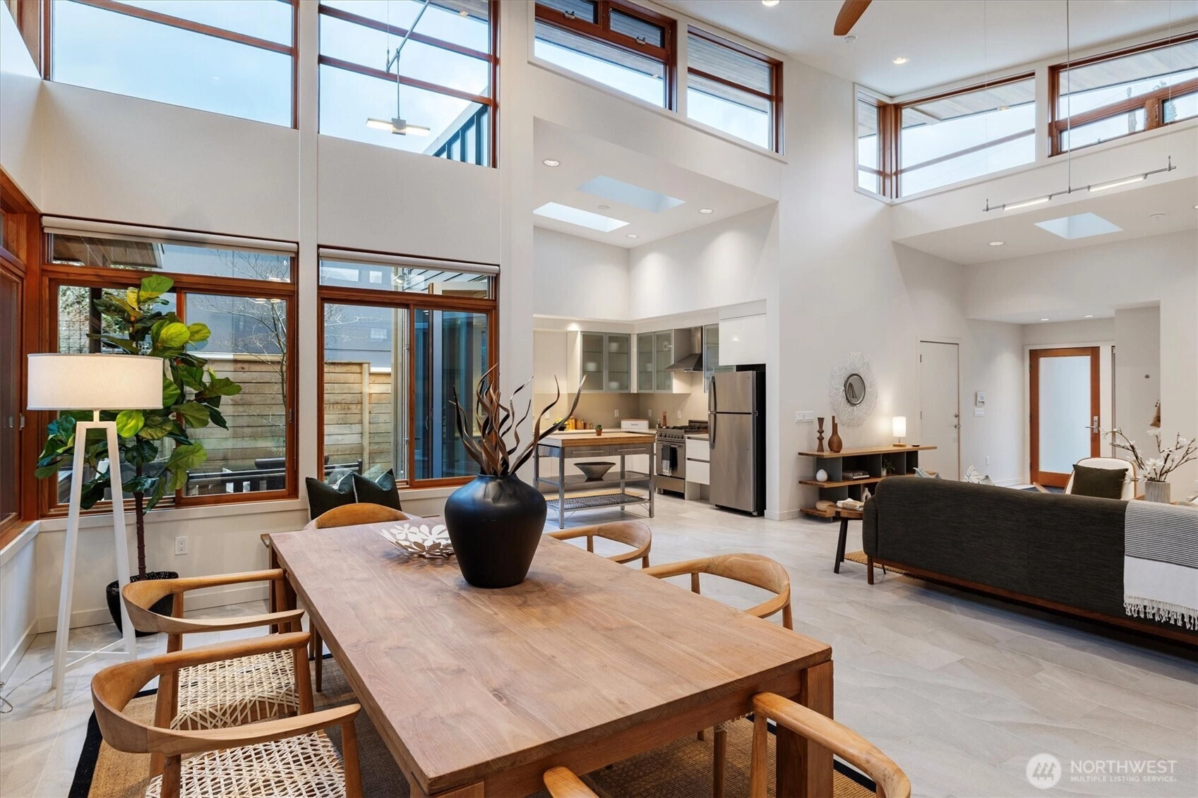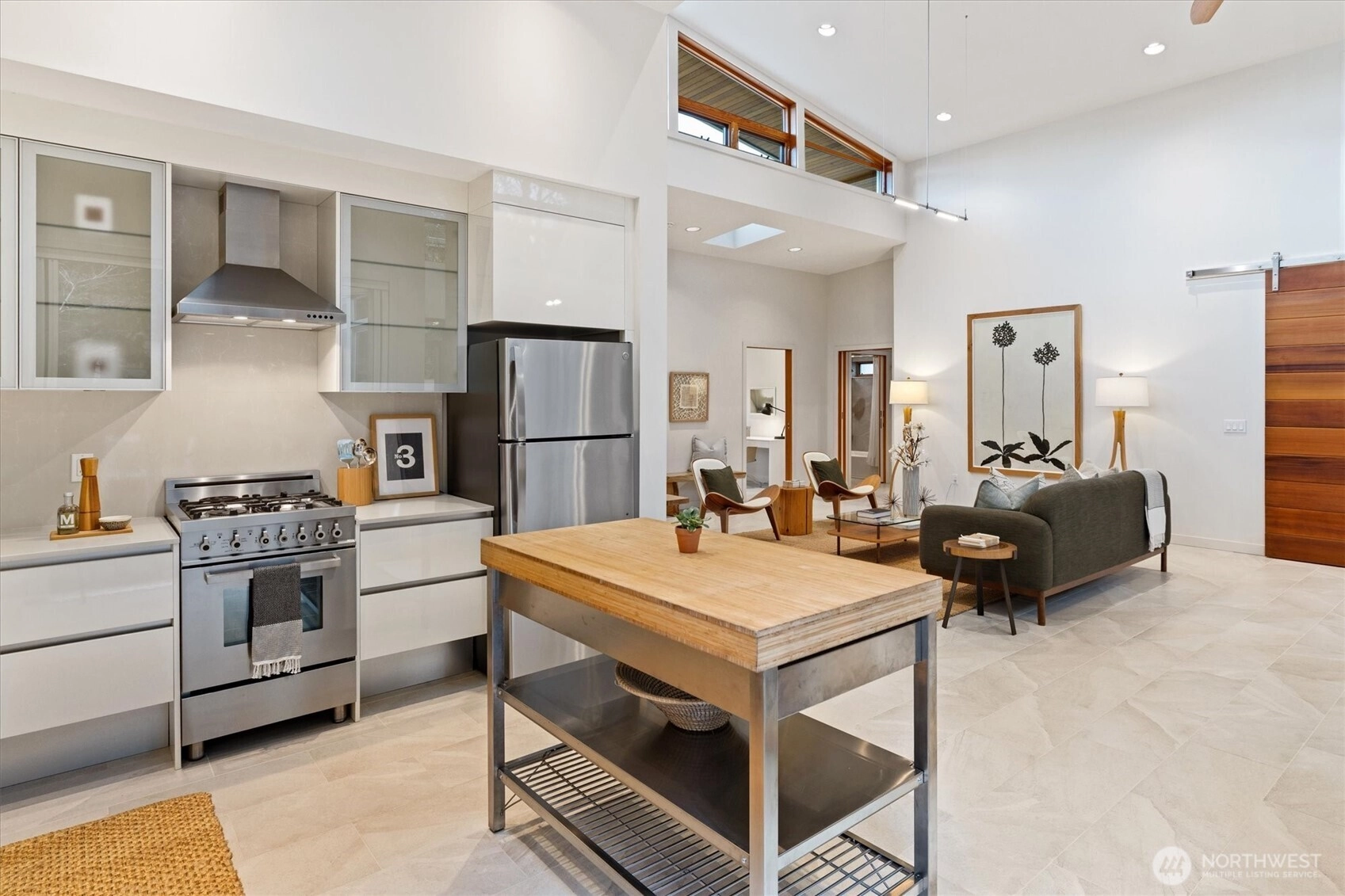 Light filled architectural masterpiece! Designed by the renowned ABKJ Architects & custom-built in 2016, this level-entry rambler presents a seamless blend of aesthetic elegance & functional brilliance, with not a single stair in sight. Prepare to be captivated by its illuminating presence, soaring vaulted ceilings, & walls adorned with expansive windows, including clerestory windows, that invite natural light into every corner of its immaculate interior. This exquisite home stands as a testament to chic, modern design, offering livable spaces that cater to the most discerning tastes. Wonderful open kitchen, a culinary dream outfitted with quartz countertops, sleek European cabinets, & top-of-the-line stainless steel appliances, all designed with both cooking & entertaining in mind. The primary suite is a haven of relaxation, featuring a spa-like ensuite that epitomizes luxury. Bathrooms throughout the home boast opulent porcelain tile, designer fixtures, & custom lighting, crafting spaces that are as rejuvenating as they are stylish. The inclusion of radiant heat & cooling + a tankless hot water system underscores the home’s commitment to comfort & energy efficiency. Located in the coveted Hawthorne Hills, this property enjoys a prime location mere minutes from Children's, UW, 520, downtown, & just a couple of blocks to Metropolitan Market & Burke Gilman Trail. Beautiful mature landscaping & handicap accessibility further enhance its appeal, making it a truly special find!