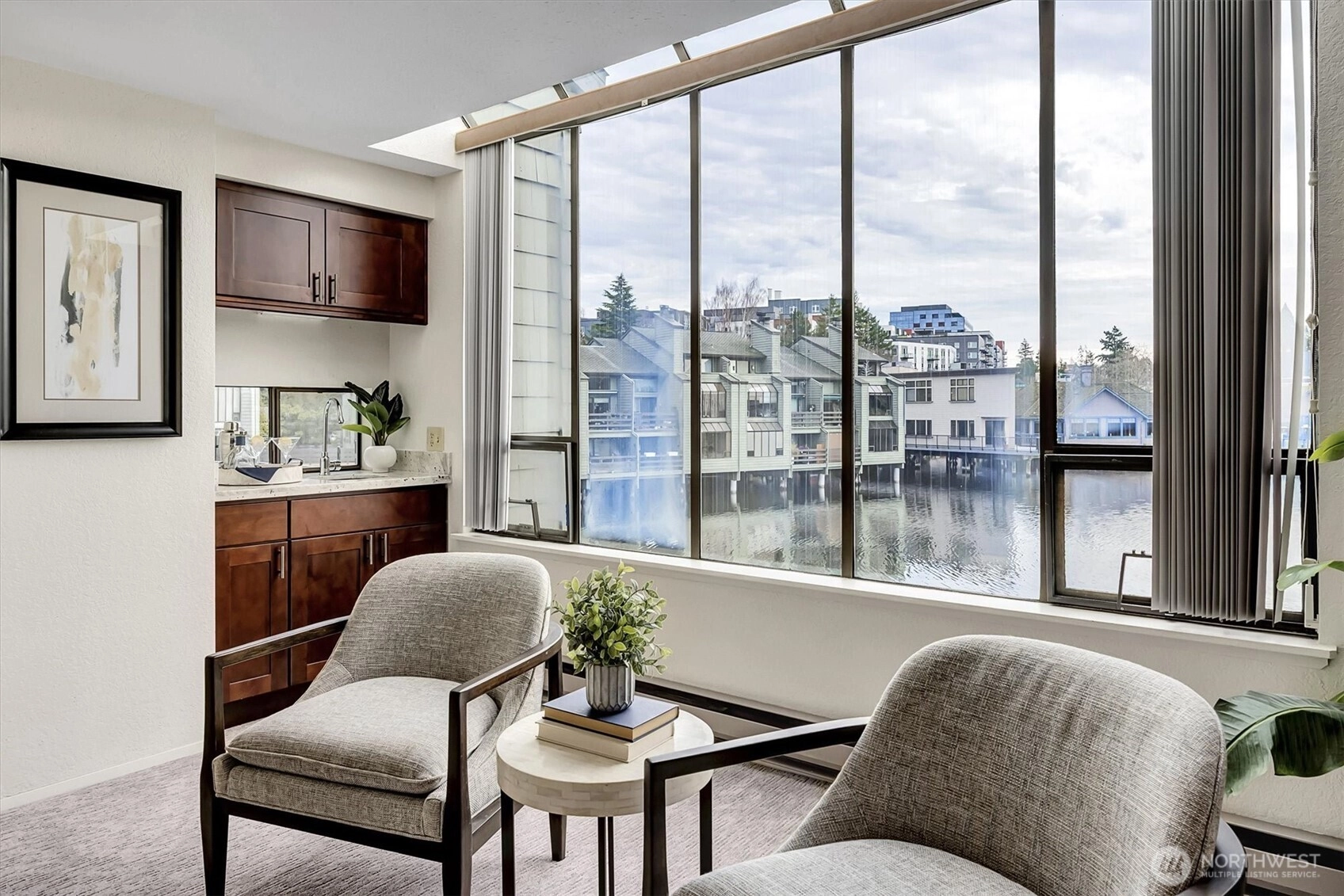 Enjoy the finest in urban living in this lovely sun-drenched property in popular Lake Bellevue Village, just blocks to the Spring District, and the Wilburton Light Rail Station. Stroll to area restaurants, take a dip in the community outdoor pool, relax in the sauna or the hot tub, walk your pup to the neighborhood dog park and love life on the charming lake. The remodel included new carpeting, gorgeous quartz counters, new laminate flooring, a beverage fridge and more. In unit laundry with washer and dryer, carport with one spot and an additional designated space outside. This is the perfect location to live without a car. Only internet and electricity are the homeowners responsibility. The HOA cover the rest! Don't miss it!
