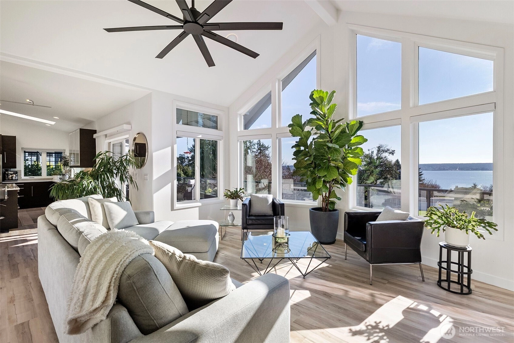 Fox Island home offers stunning views over southern Puget Sound from sunrise to sunset. Days just feel longer! A charming island community has something for most year-round—music, a community center playground with its sporting events and arts opportunities, the fair, all-island garage sale, egg hunt, dance classes, yoga, tennis, garden clubs - plus easy access to the water at the fishing pier and Bella Bella beach. The layout is flexible, whether you’re starting out or looking for less to manage. It offers what newer homes typically don't have like landscaping, window treatments, sprinkler systems, larger lot size, and established neighboring properties. The Primary suite on the upper level has an extra room nearby ideal for the youngest one, guest, an office, or a TV room. Whether you’re at the kitchen bar, entertaining guests, doing homework, or playing games its casually modern in every detail. Fully updated including roof. Any time of day and any season, it’s light, bright, and fresh.The 2+ vehicle garage with a deep sink and built-ins for work areas has a separate entry vestibule providing dedicated access for guests, a home business, or patio gatherings. The gated back yard has a grass play zone and gardens carefully crafted by a passionate gardener! Seasonal surprises await as they begin to bud. Raised beds invite you to plant and harvest from your own test gardens. Two fruit-bearing trees—Asian pears and apples. Walking, strolling and bicycling right out your door!
