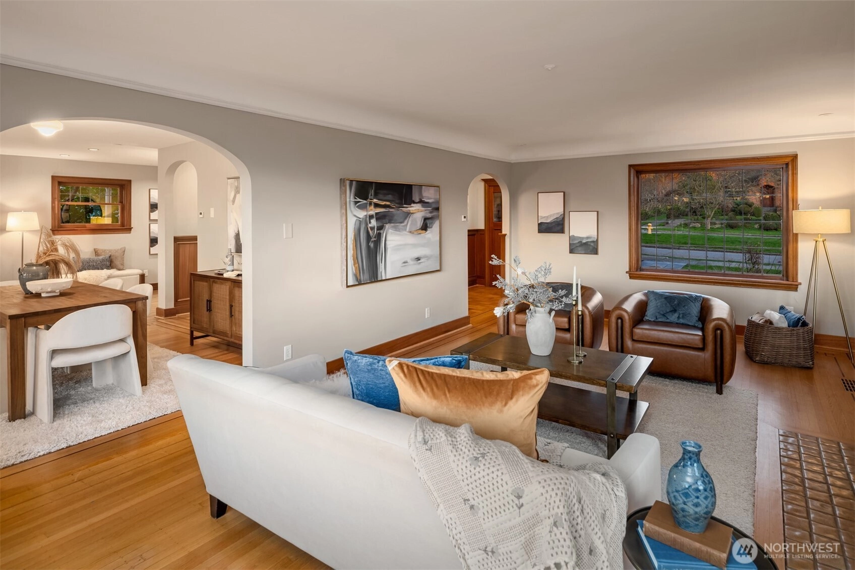 An idyllic nod to Laurelhurst living with lake views and modern conveniences on the coveted “Boulevard”. A rare offering, blending the soul of Tudor architecture with grand spaces, an open-chef’s kitchen featuring two Miele dishwashers, Wolf cooktop, Viking range and SubZero refrigerator. The main level also features a versatile office with built-ins, bath, dining room, grand living room, and view terrace spanning the kitchen/great room. Enviable upper level with four bedrooms and two baths highlighted by a primary bedroom with spa bath, walk-in closet, laundry with double washers and dryers, spacious attic, and view deck to enjoy brilliant sunsets. The lower level leaves nothing to chance with a rec. room, guest bed, bath, gym, storage, and wine room. Expansive back yard is a canvas for entertaining, athletic endeavors, and gardening. Located in Laurelhurst Beach Club boundary with ample off-street parking and a garage with ADU capability. This is the one!