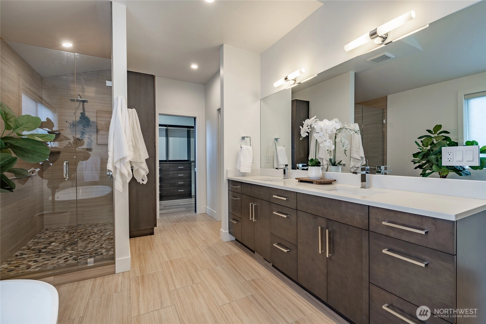 Located in the exclusive Clubhouse Point neighborhood—just 14 Northwest Contemporary fairway homes—this beautifully updated single-level residence offers 2,905 sq ft of refined, zero-step living in the heart of Semiahmoo. Set along the 1st fairway and just a two-minute stroll to the Country Club, Great Blue Heron Grill, tennis, and pool, the lifestyle here feels effortless and elevated. This is quiet luxury at its best. High-end finishes, thoughtful design, and a sense of calm that greets you the moment you arrive. The chef’s kitchen is both stunning and functional, featuring high-end appliances, Pental quartz countertops, under-cabinet lighting, and a statement 5x9 island with seating for five plus. A spacious 7x9 butler’s pantry keeps everything organized, while the open layout connects seamlessly to the great room and dining area. From the kitchen sink, you take in the living spaces and soft golf course views. The primary suite is truly exceptional—spacious with sitting area overlooking the fairway and designed as a private retreat. The spa-worthy ensuite offers a soaking tub, walk-in shower, and an impressive California Closet system that feels custom-tailored to the home. With one guest bedroom in the main home, a flexible den/office, and a detached casita with ensuite connected by a covered walkway, the layout offers comfort and privacy for everyone. Gated security, lock-and-leave ease, and timeless, refined style—this is the kind of home you've been waiting for.