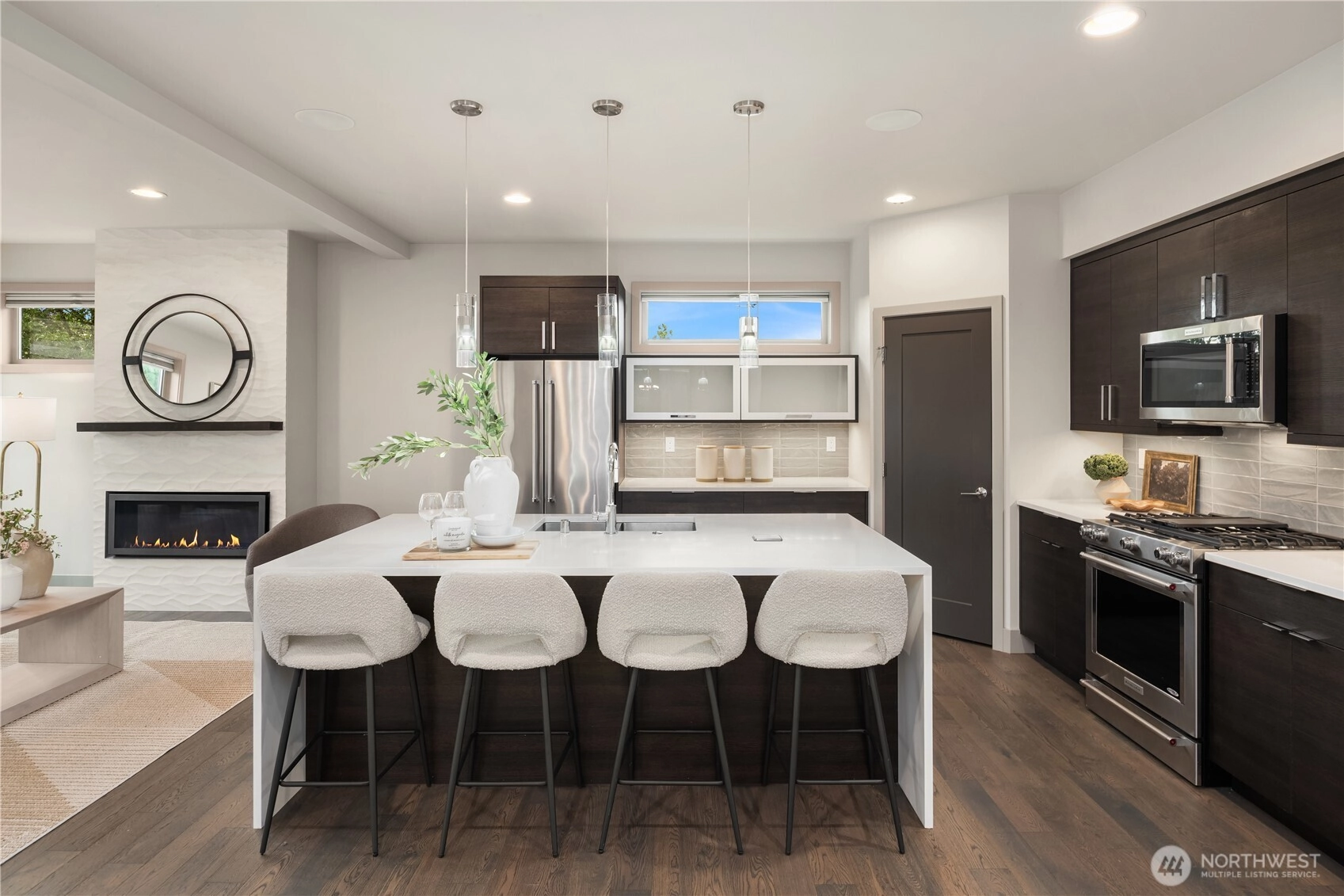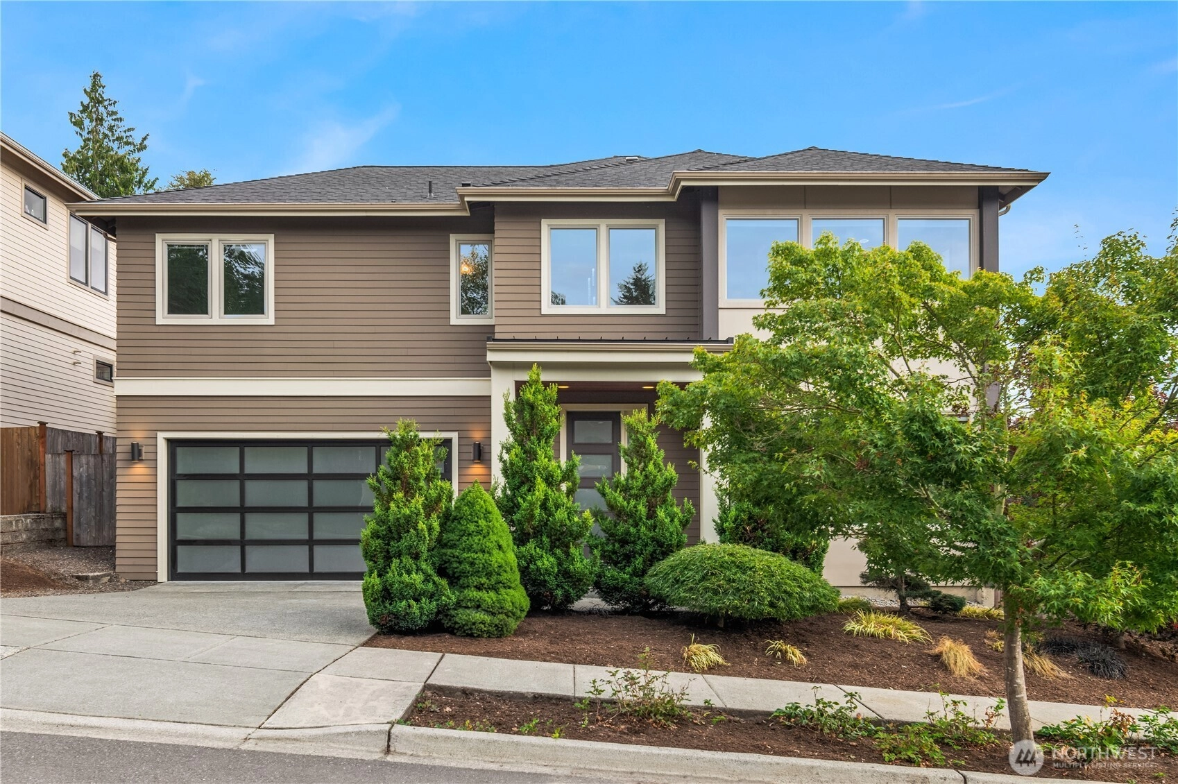 Modern elegance and design, crafted by award-winning RD Homes. This 3-Star Built Green residence, set along the hillside of In Town Duvall, captures sweeping valley views from every angle. Vaulted ceilings enhance the living space, creating an atmosphere both modern and refined. An open concept layout seamlessly connects the gourmet kitchen with high-end appliances, the spacious dining room, and the light filled living area that extends to a private outdoor patio. The grounds are mature and manicured, with towering arborvitae providing year-round privacy and evergreen plantings completing the landscape. Primely positioned in Downtown Duvall, homeowners benefit from the city’s newly completed sidewalk improvements, enhancing walkability and strengthening the direct connection to the town’s restaurants, shops, and everyday conveniences. This is luxury living in the heart of Duvall.