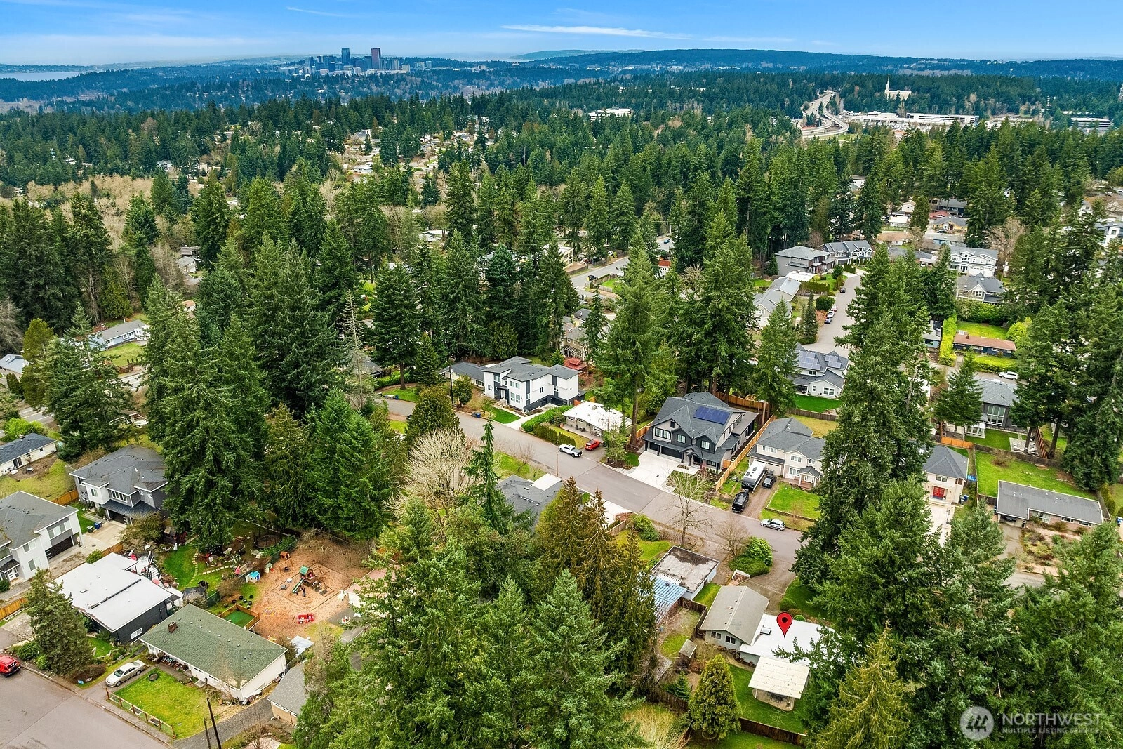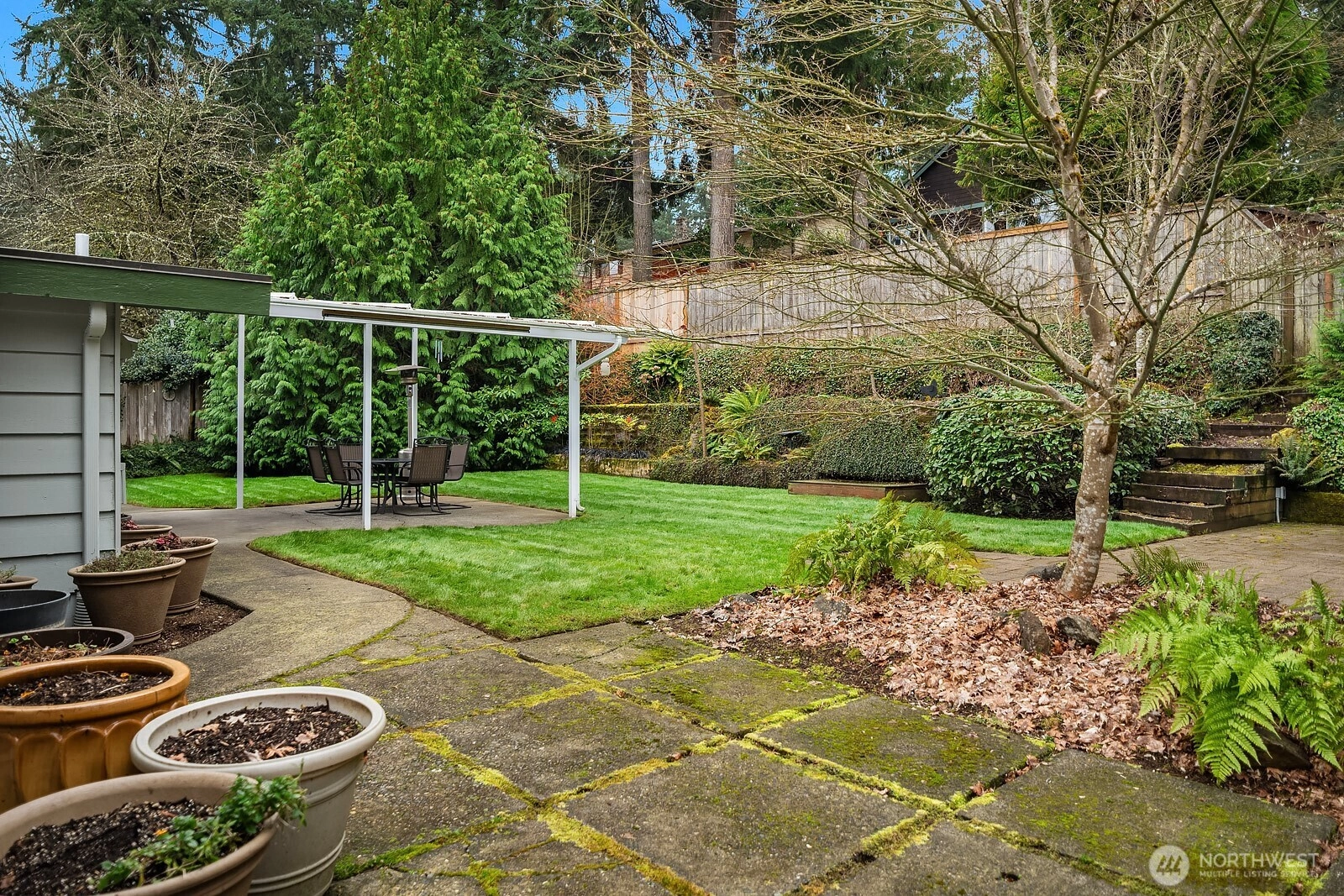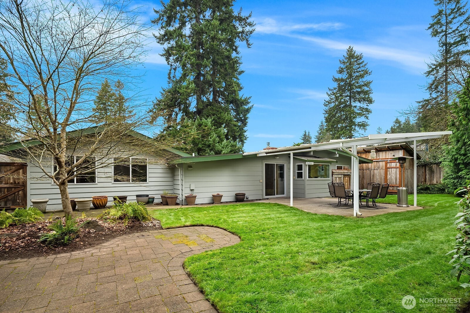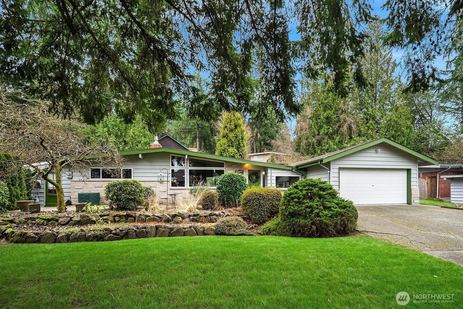 {{Desirable Bellevue neighborhood}} Bellevue’s Eastgate area, positioned by the Somerset community, & minutes to Newport Way & I-90. This single-level residence offers timeless mid-century character with inviting warmth & natural flow. Set back from the road, this 1,430 SF home sits on a generous 10,595 SF lot surrounded by mature landscaping that creates a peaceful & private setting. Expansive windows bring natural light into the living room, where an impressive feature fireplace w/ a gas insert anchors the space. The dining area connects seamlessly to a covered patio through sliding glass doors, creating an effortless transition to outdoor living. Hardwood flooring brings another layer of warmth to this home. The backyard is a true retreat, tranquil, private, & framed by established plantings that provide beauty & seasonal interest. The kitchen features a generous breakfast bar overlooking the garden, adding natural light. The home includes 3 bedrooms, all with closet packages & 1.5 bathrooms, a family bathroom w/heated floors, tiled shower & quartz countertop. A versatile second reception room with tiled flooring, custom cabinets, & a large skylight offers flexible living space options for a media room, home office, or creative space & connects to the utility room & 2-car garage. Conveniently located, this property offers comfort, character, & outstanding opportunity in a sought-after setting. This home combines warmth & livability w/ exciting potential for future vision.