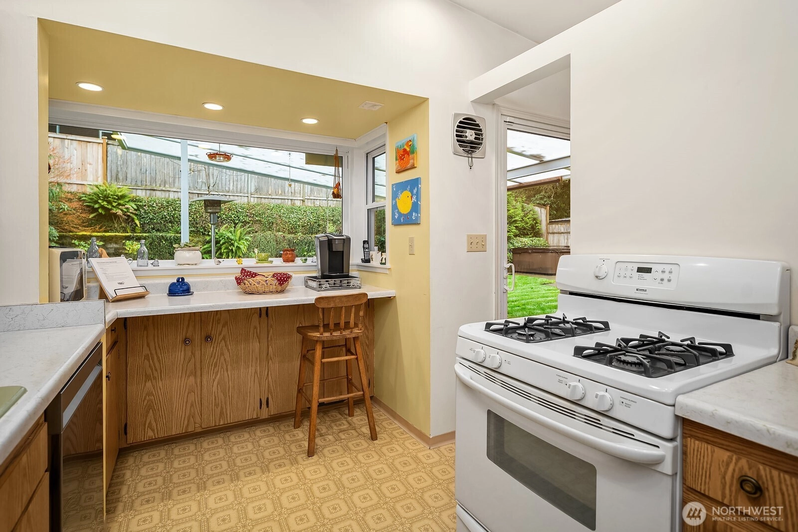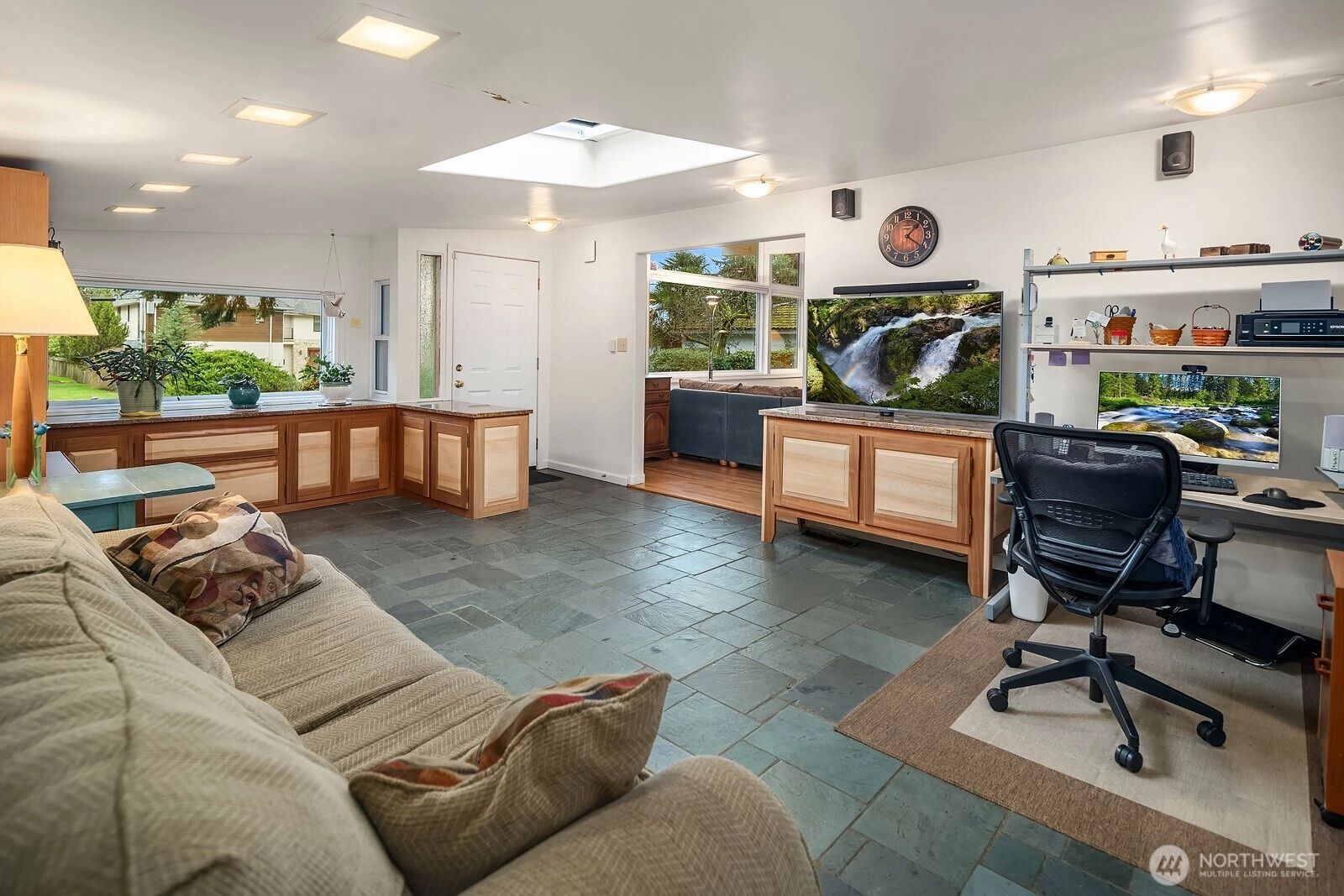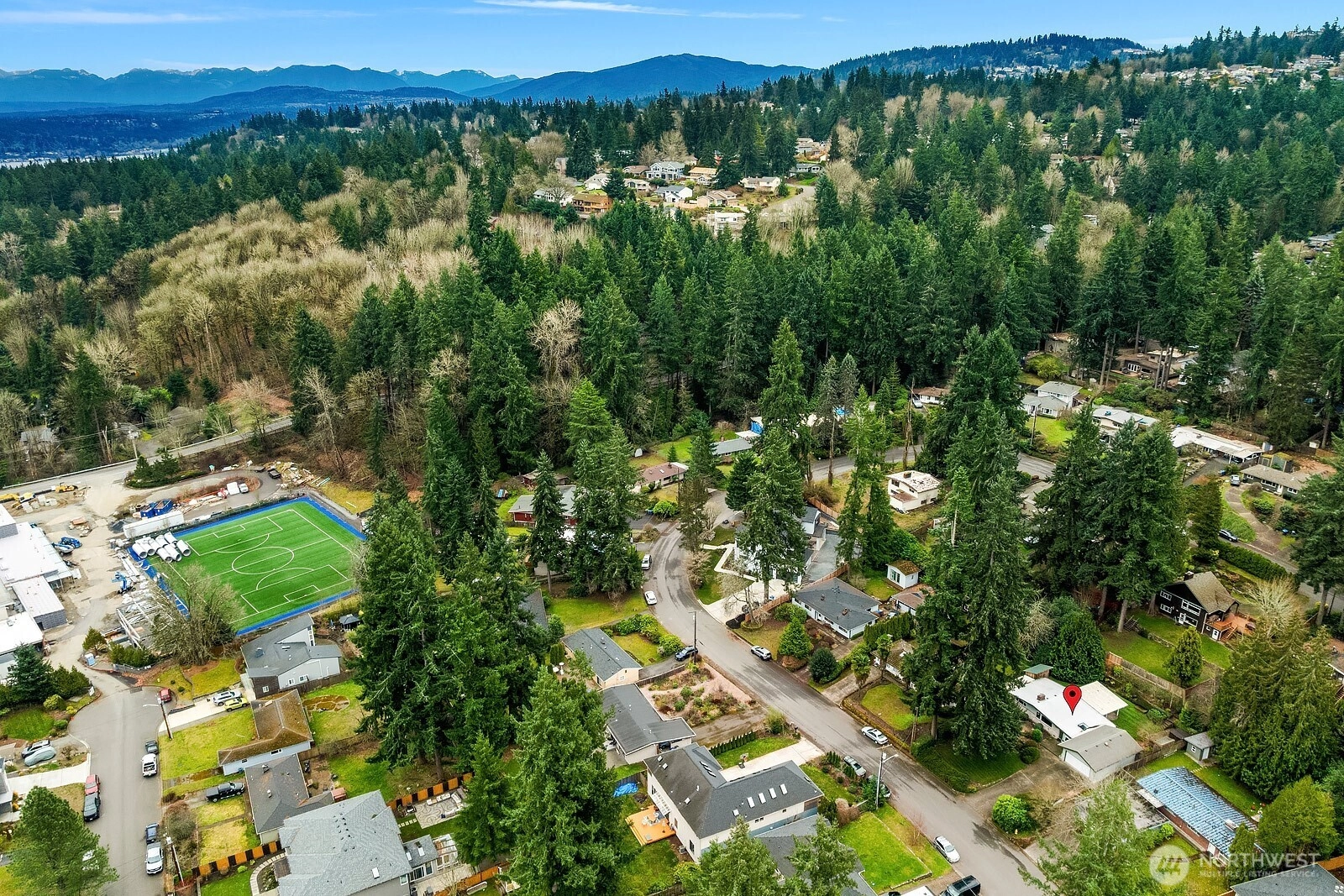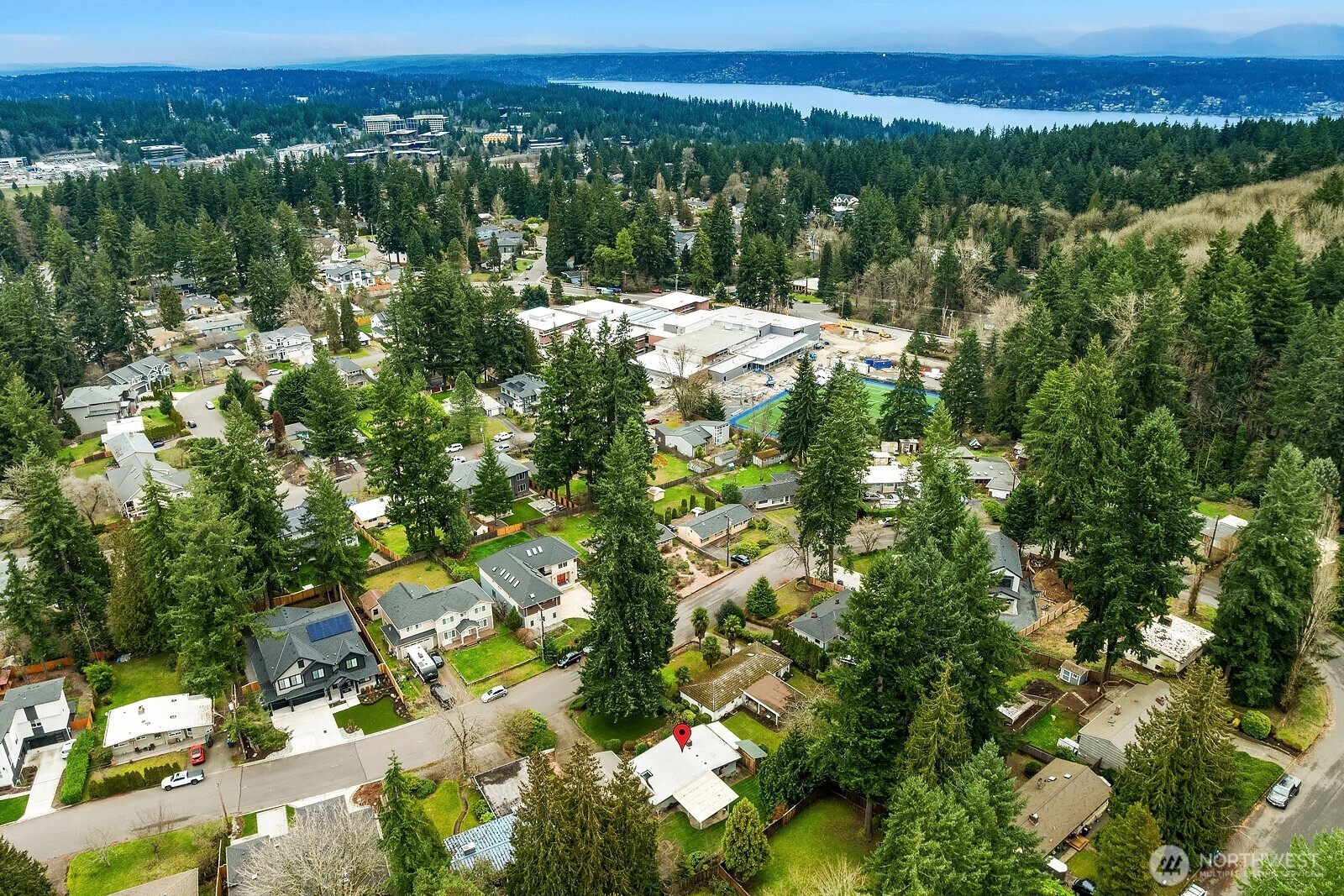 {{Desirable Bellevue neighborhood}} Bellevue’s Eastgate area, positioned by the Somerset community, & minutes to Newport Way & I-90. This single-level residence offers timeless mid-century character with inviting warmth & natural flow. Set back from the road, this 1,430 SF home sits on a generous 10,595 SF lot surrounded by mature landscaping that creates a peaceful & private setting. Expansive windows bring natural light into the living room, where an impressive feature fireplace w/ a gas insert anchors the space. The dining area connects seamlessly to a covered patio through sliding glass doors, creating an effortless transition to outdoor living. Hardwood flooring brings another layer of warmth to this home. The backyard is a true retreat, tranquil, private, & framed by established plantings that provide beauty & seasonal interest. The kitchen features a generous breakfast bar overlooking the garden, adding natural light. The home includes 3 bedrooms, all with closet packages & 1.5 bathrooms, a family bathroom w/heated floors, tiled shower & quartz countertop. A versatile second reception room with tiled flooring, custom cabinets, & a large skylight offers flexible living space options for a media room, home office, or creative space & connects to the utility room & 2-car garage. Conveniently located, this property offers comfort, character, & outstanding opportunity in a sought-after setting. This home combines warmth & livability w/ exciting potential for future vision.