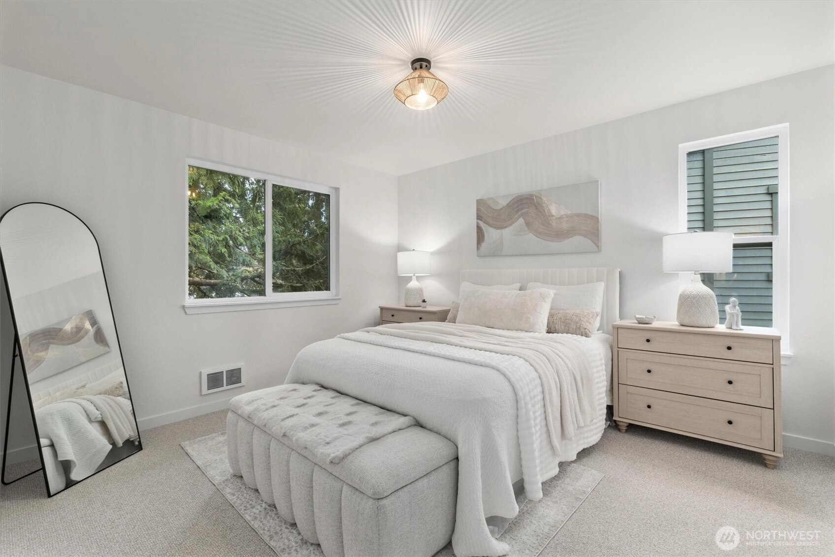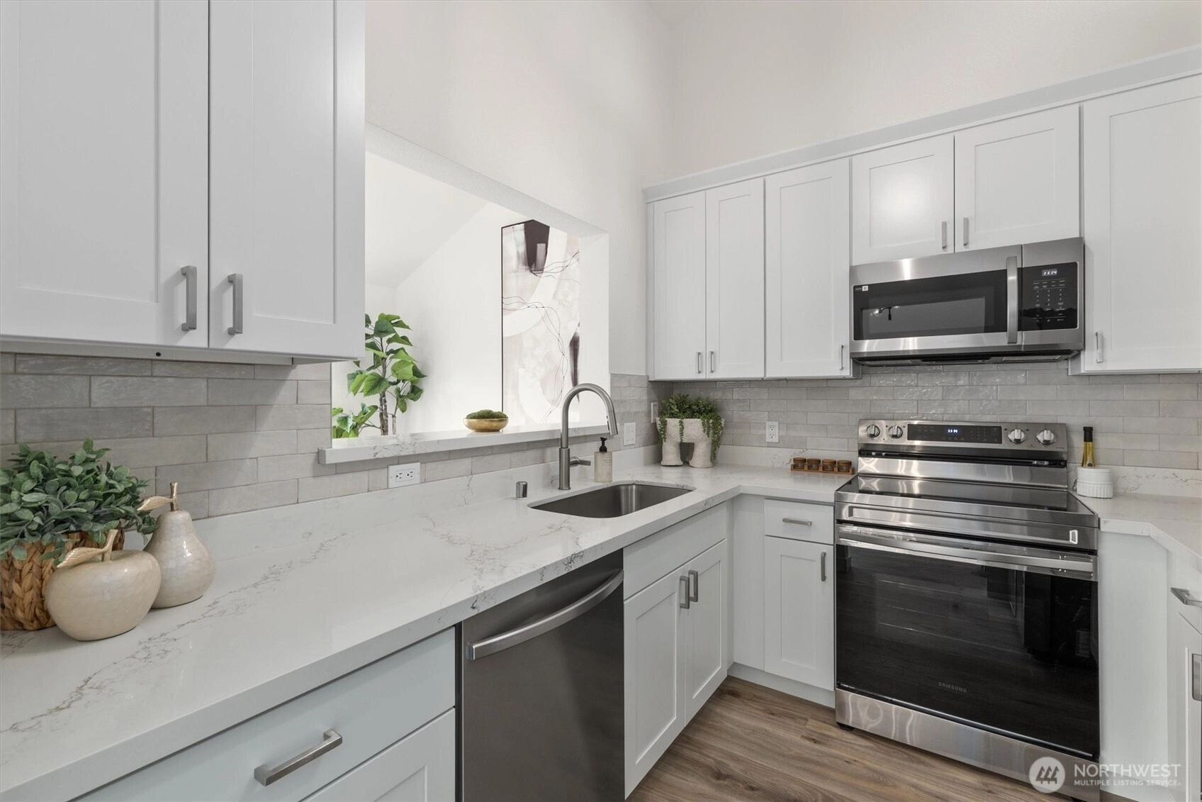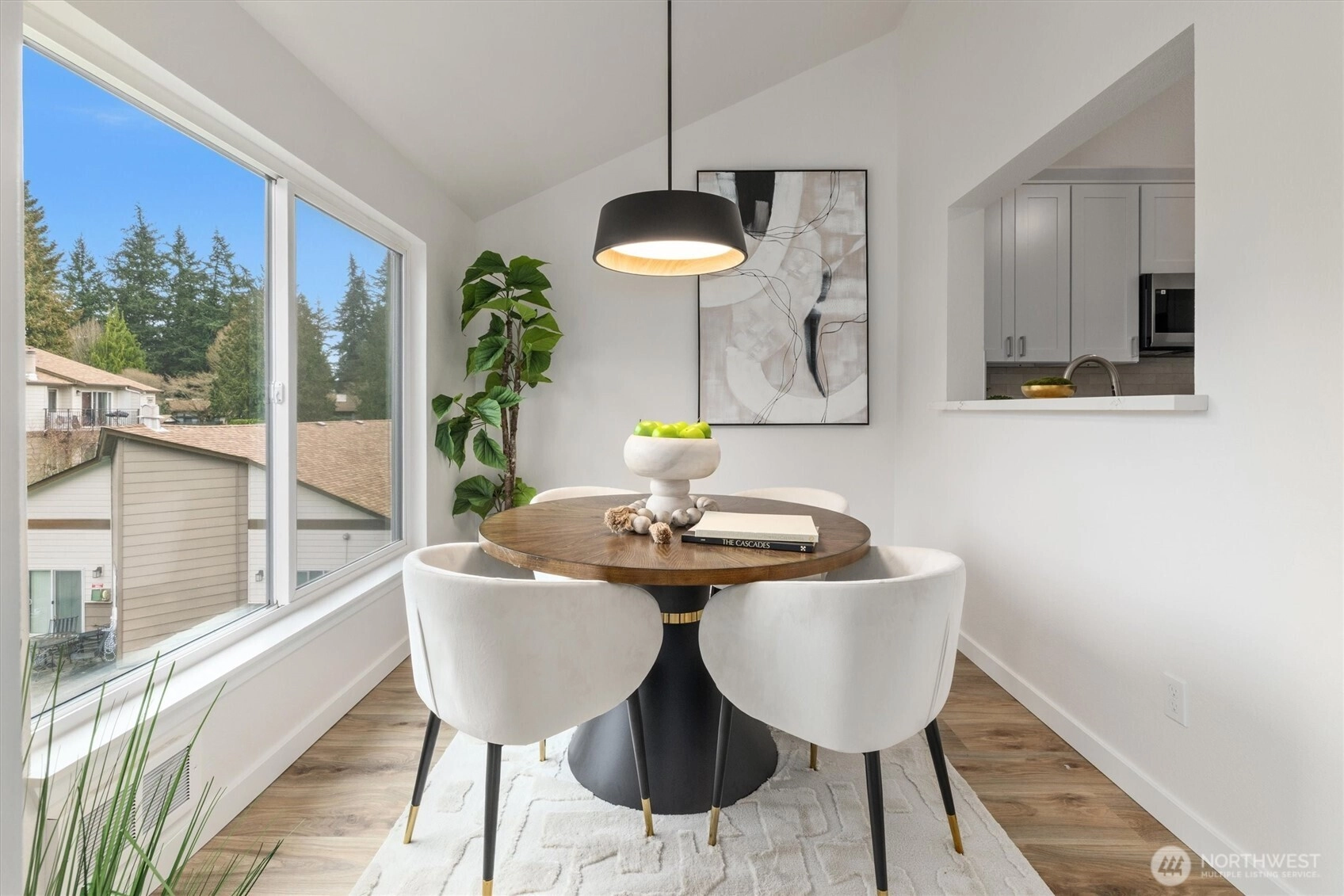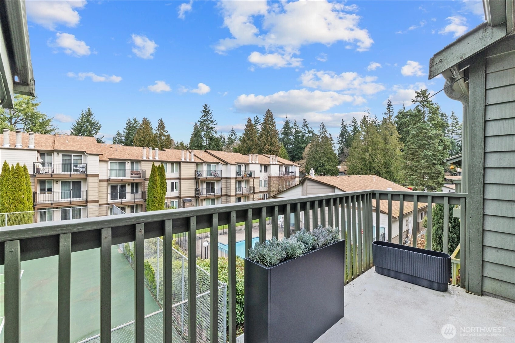 NEW! Elevated Top-Floor Living with Views in the Heart of Totem Lake Experience refined, move-in-ready living in this fully renovated 2-bedroom, 2-bath top-floor residence, offering fantastic pool and tennis court views and an elevated design throughout. Vaulted ceilings and abundant natural light create an airy, expansive feel, while the wood-burning fireplace adds warmth and character to the spacious living area. The brand-new gourmet kitchen stuns with luxe quartz countertops, sleek stainless-steel appliances, and modern finishes that balance style and function. Beautifully updated bathrooms, new flooring, plush carpet, fresh interior paint, and curated designer lighting complete the sophisticated transformation. Perfectly positioned just moments from The Village at Totem Lake, Evergreen Hospital, and I-405, this home offers effortless access to shopping, dining, and commuting. Enjoy a quiet, well-maintained community with a pool, hot tub, strong HOA, designated covered parking, and ample guest parking — all within the highly regarded Lake Washington School District. Turnkey. Top-floor. Fully reimagined. An exceptional opportunity in one of Kirkland’s most convenient locations.