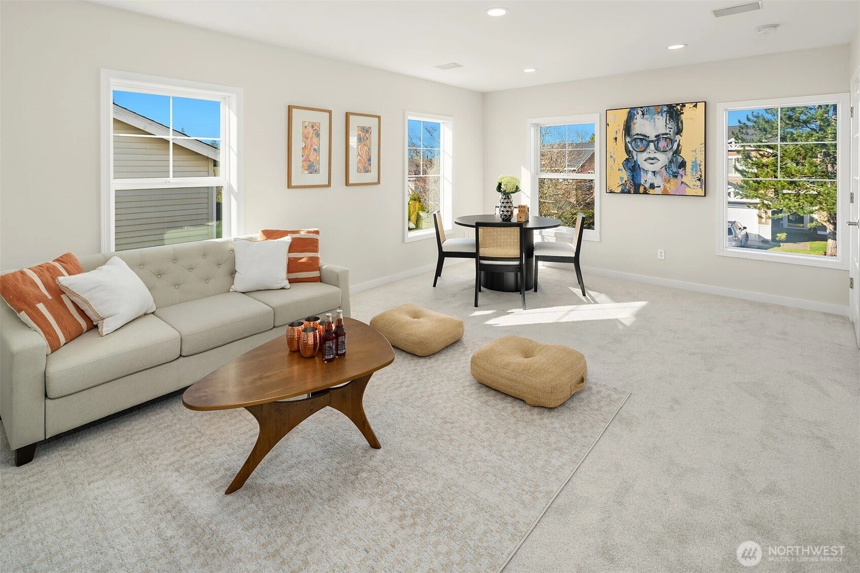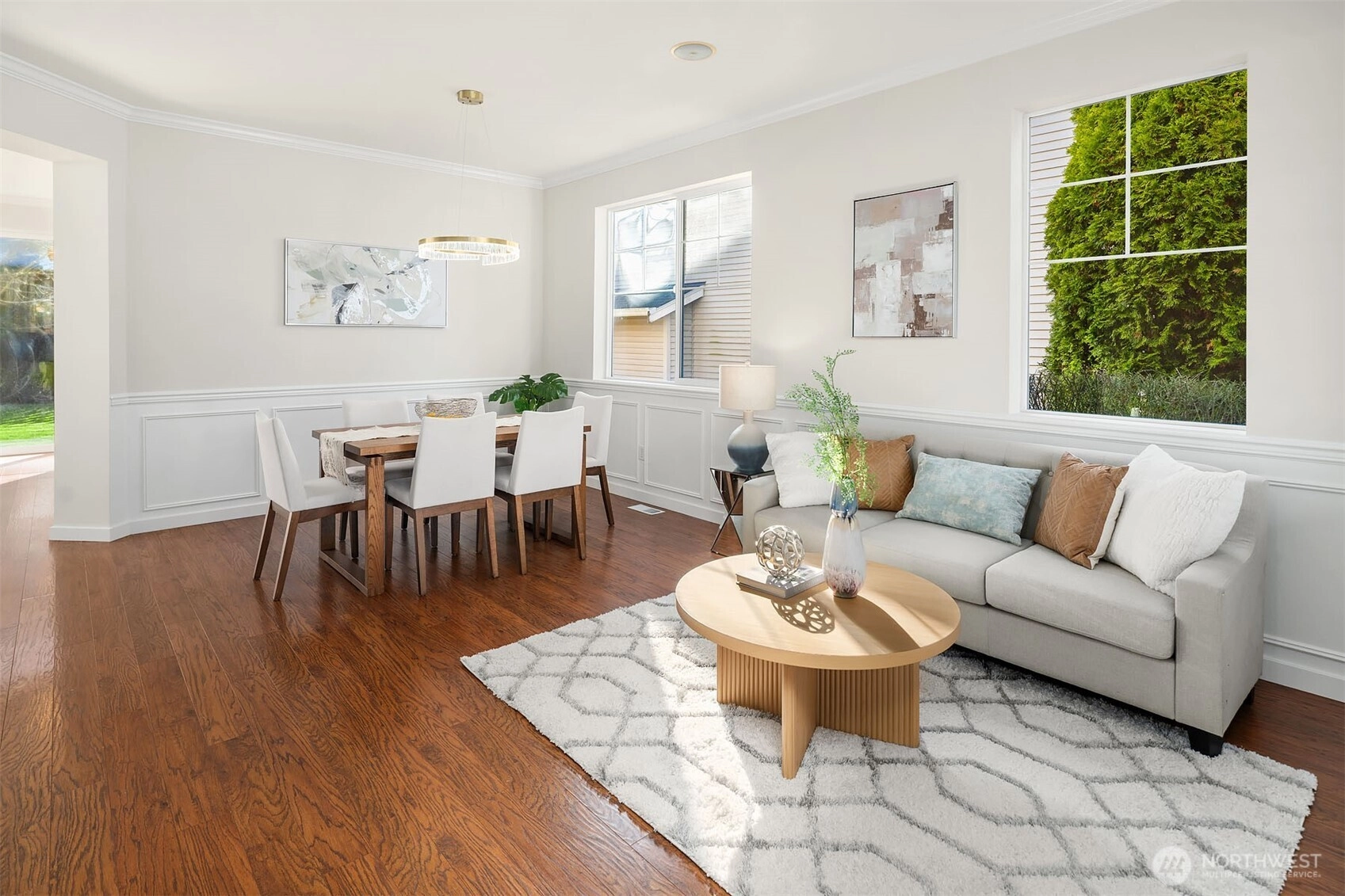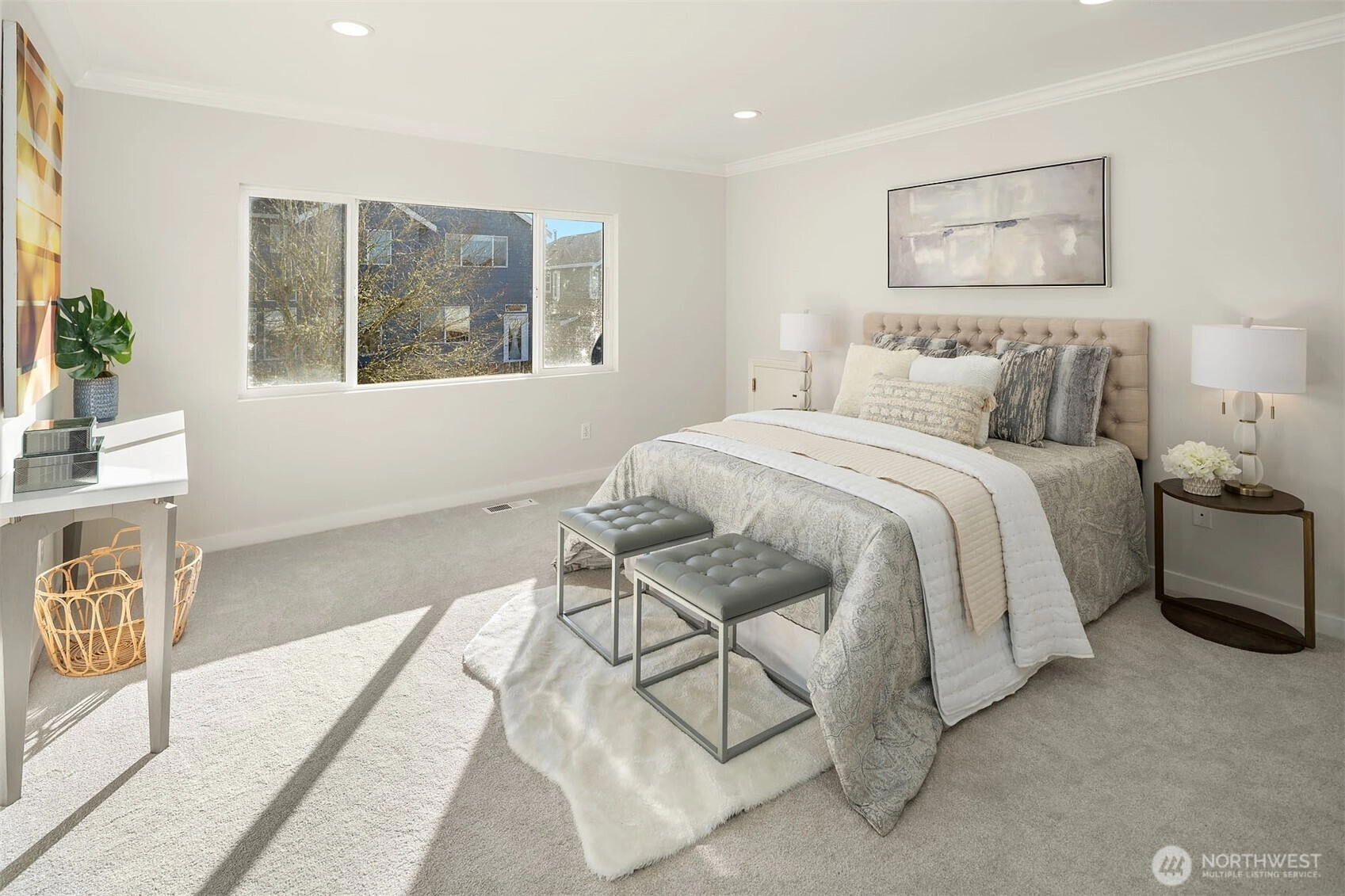 Welcome to this beautifully updated 4-bedroom home in the sought-after Renaissance Ridge community of Sammamish. Situated on a bright and light-filled corner lot, this residence blends timeless elegance with modern upgrades, creating a home that is both stylish and comfortable. The remodeled kitchen is the heart of the home, featuring elegant khaki-gray cabinetry accented with gold hardware, quartz countertops, and a coordinating backsplash—perfect for everyday living and effortless entertaining. Throughout the home, new bathroom vanities, mirrors, and contemporary lighting fixtures add a fresh, cohesive design aesthetic. Fresh interior paint and brand-new carpet provide a crisp, move-in-ready feel. One oversized bedroom offers bonus-room potential, ideal for a media room, home gym, playroom, or flexible living space to suit your lifestyle. Enjoy year-round comfort with A/C. The flat, usable yard is perfect for play, outdoor dining, and gatherings, while the 3-car garage offers ample storage and convenience. All of this is located within the award-winning Issaquah School District and just minutes to parks, trails, shopping, and commuter routes.