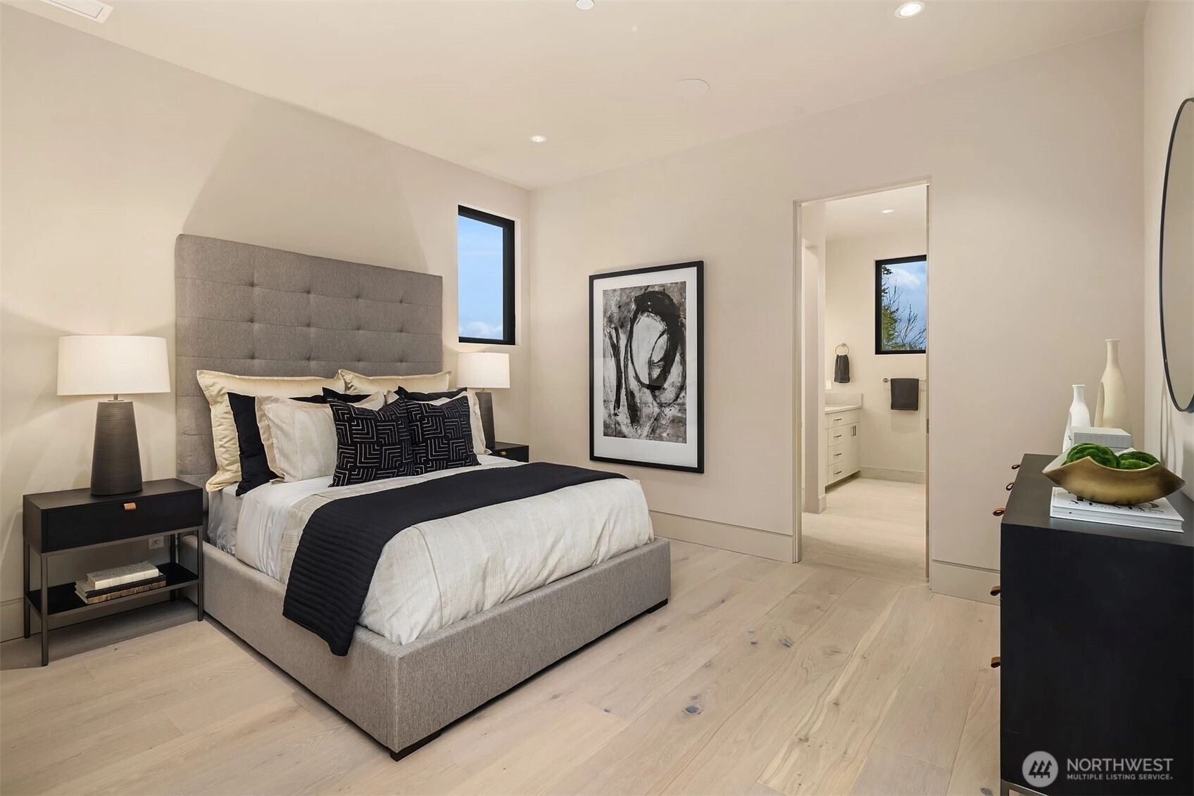 Experience breathtaking views of Lake Washington's Meydenbauer Bay, Marina, and the Bellevue skyline from this masterpiece by Overbrook Construction, located less than a half-mile from Old Main Bellevue. Thoughtfully designed, this architectural marvel blends steel, stone, concrete, glass, and wood to create stunning spaces, including a main-level guest suite, open living areas, and a chef's kitchen with a large island, custom cabinetry, and butler's pantry. The primary suite features sweeping views, a spa-inspired bath, and a bistro-view deck. The lower level offers a media room, wine cellar, and private ADU with full kitchen, and patio entry. Elegance, privacy, and modern sophistication in a prime Bellevue location.