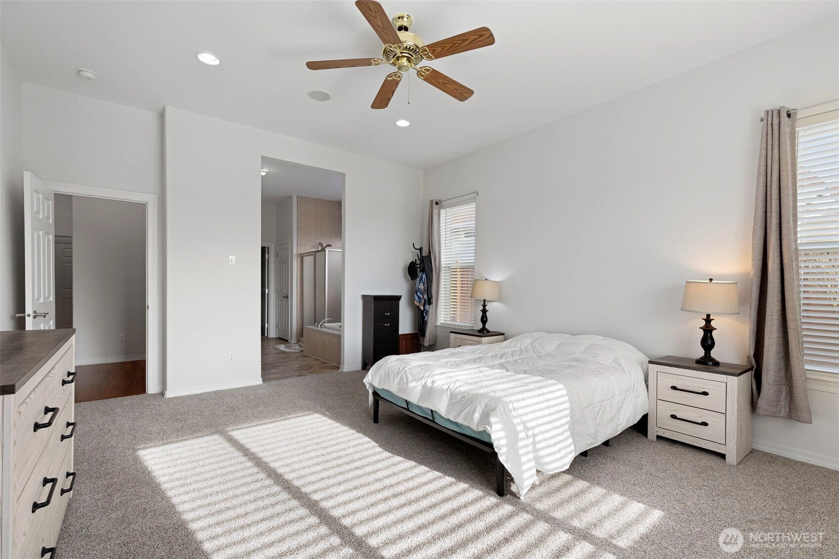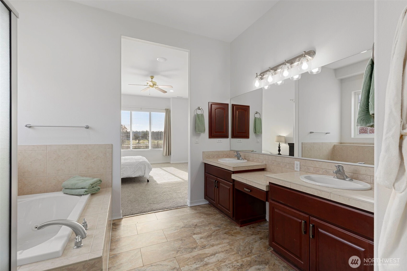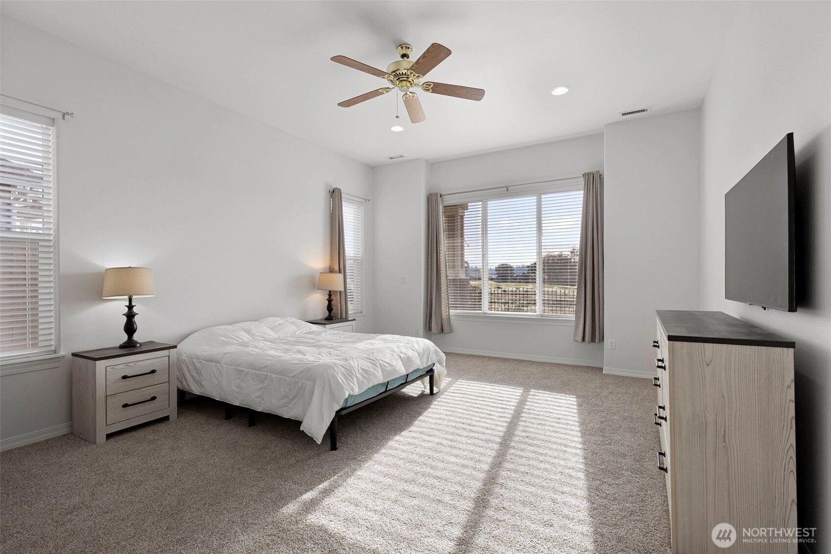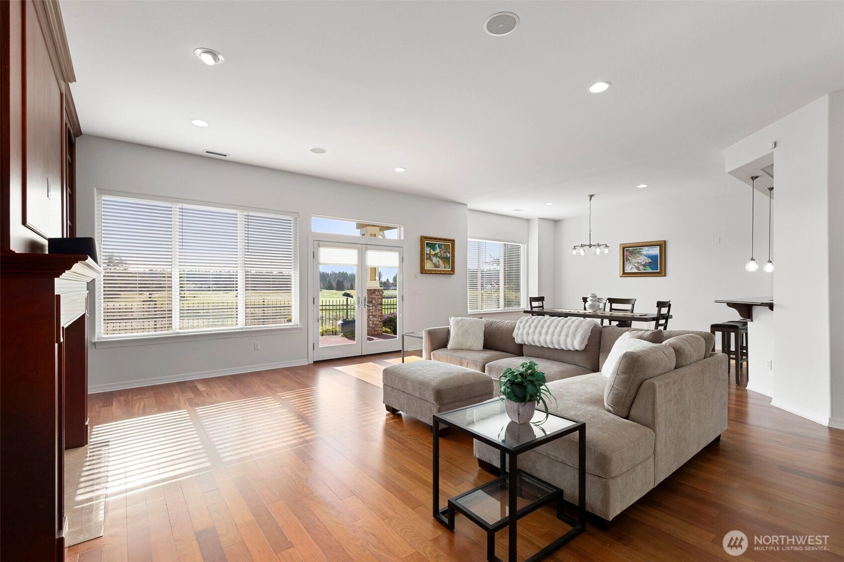 Enjoy sweeping golf course views from this beautifully updated home on the 8th green in the desirable Jubilee 55+ community. A full-length deck provides the perfect space for entertaining or relaxing while taking in panoramic fairway scenery.The open-concept floor plan features 10-foot ceilings and a bright wall of windows that fill the home with natural light. Interior highlights include refinished Brazilian Cherry hardwood floors, granite countertops, custom cabinetry and an expansive serving station ideal for hosting. The fantastic sound system indoors and outdoors is a true treat!Approximately $30,000 in recent upgrades include a full interior repaint, all new light fixtures, and all major appliances have been replaced, including the refrigerator, dishwasher, washer, and dryer. Landscaping has also been refreshed for enhanced curb appeal. In the garage the full epoxied garage floors make for projects in a clean and comfortable space. The layout offers excellent privacy with a guest suite and full bath on the opposite end of the home. The spacious primary suite overlooks the course and features a double vanity, soaking tub, step-in shower, and walk-in closet. Move-in ready with stunning views and quality updates. Ask your agent about the lender credit!