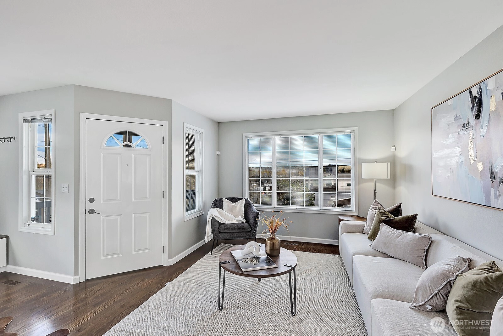 Situated in the heart of Columbia City, this 3-bedroom + den, all rooms on one floor, perfectly combines modern updates with classic charm. Flooded with natural light, the freshly painted interior features gleaming hardwoods, a updated kitchen with white cabinets and Home-Chef ready appliances by Cafe Appliances, a dining area perfect for gatherings. Upstairs, primary suite offers partial Cascade views, a walk-in closet, and a private en-suite bath. Two more bedrooms and a den with brand new carpet through. Additional full bathroom, skylight and A/C for warm days. New exterior paint, two-car garage, conveniently located right next to the kitchen. pre-inspection for peace of mind, this home is your gateway to vibrant city living. Minutes to downtown Seattle, walk Score of 90, it’s just steps to parks, cafes, shops, the Farmers Market, and the Light Rail for seamless commuting.