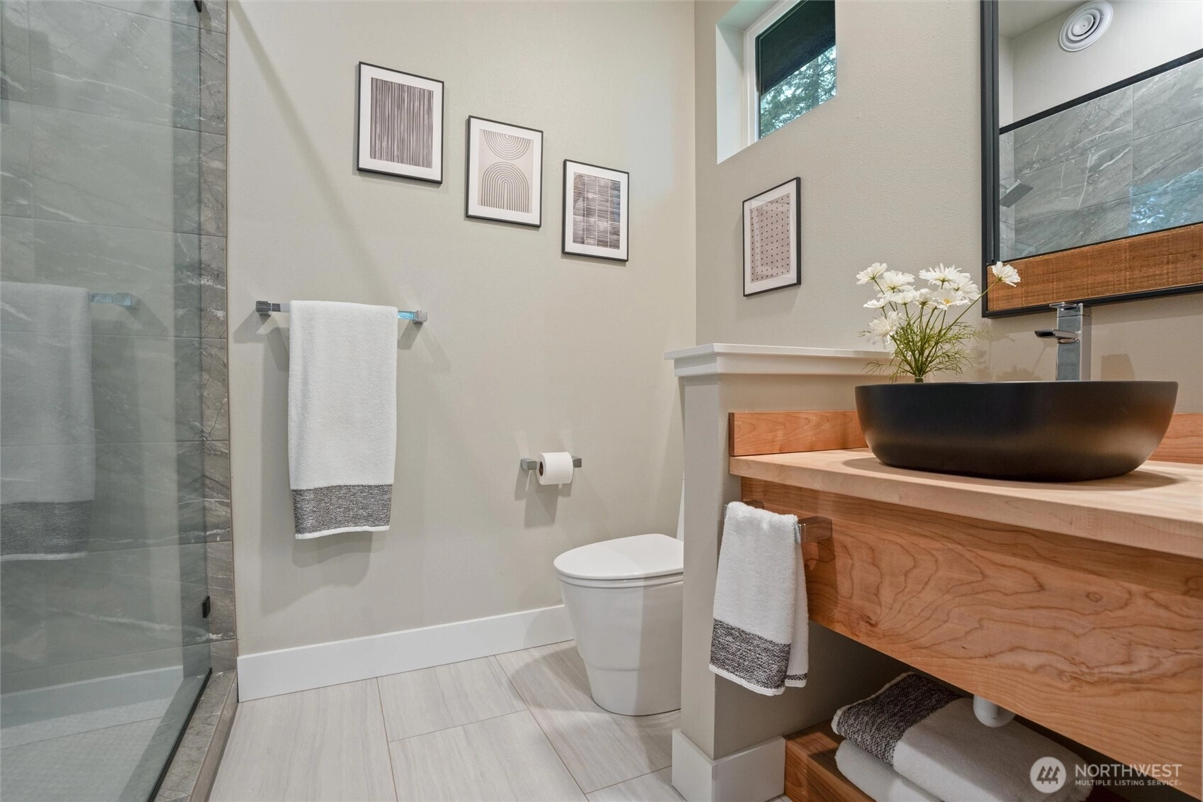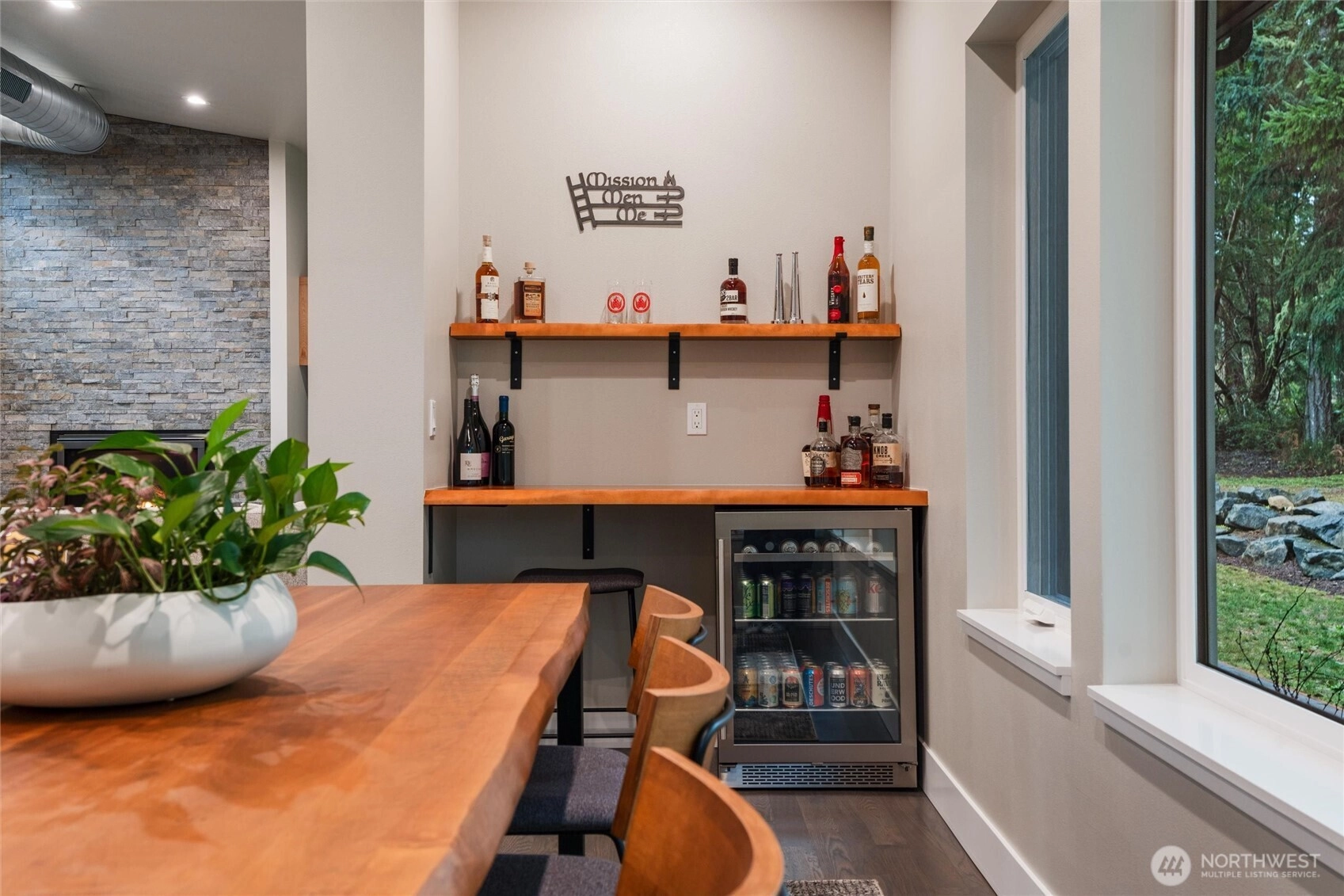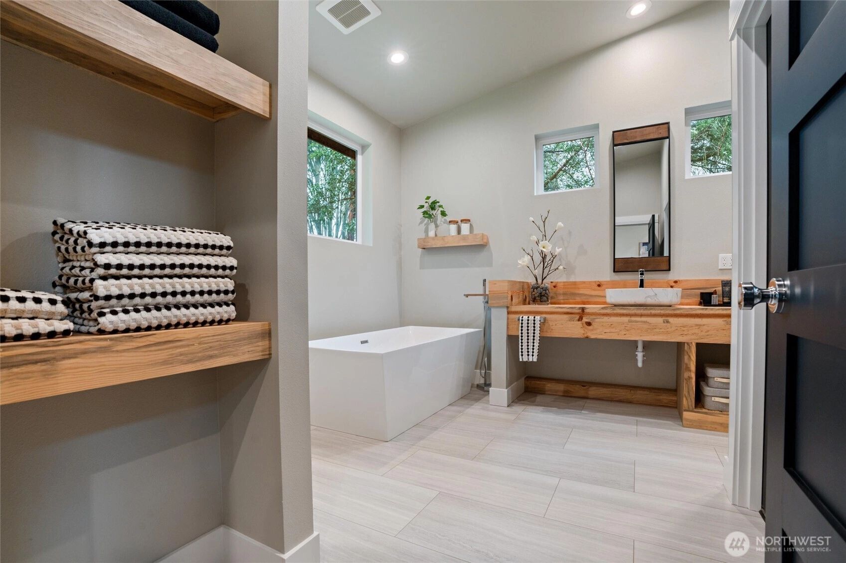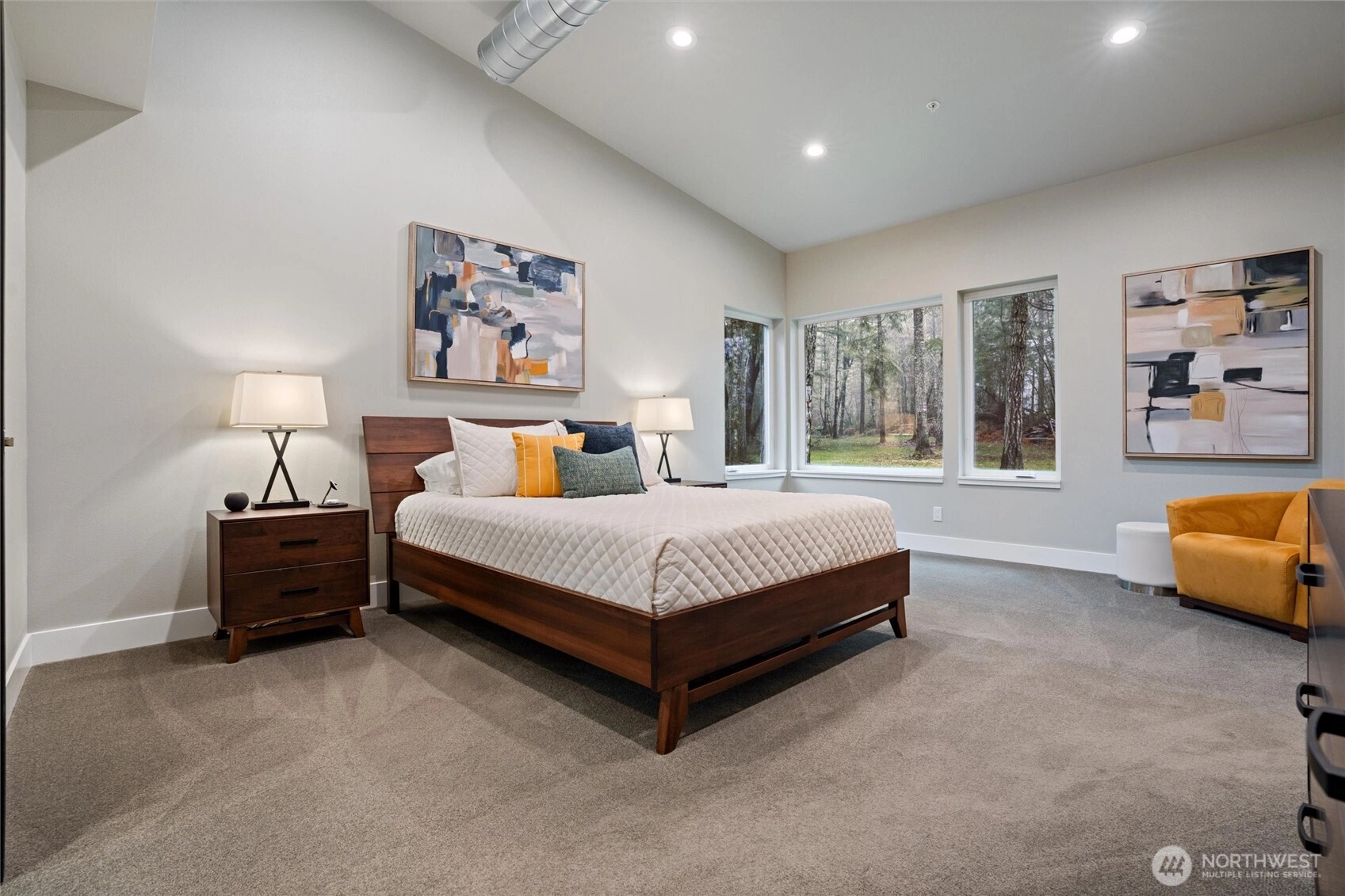 Custom architect-designed modern retreat on gated acreage in Longbranch. Designed by Mascord Design of Portland , this home blends modern, industrial, and rustic elements with exceptional privacy and livability—ideal for anyone seeking refined space in a peaceful Pacific Northwest setting. Features 3 private ensuites, with the primary suite thoughtfully separated to create a true owner’s retreat. Interior highlights include exposed spiral HVAC ducting, true white oak floors, solid hickory cabinetry, Wolf & Sub-Zero appliances, quartz countertops, and a striking stone fireplace. The open, flowing layout delivers elevated living designed for comfort, entertaining, and working from home. Exterior architecture showcases multi-textured cement siding with cedar accents, cedar tongue-and-groove soffits, and a standing seam metal roof. An oversized 1,100 sq ft three-car garage provides exceptional flexibility for storage, workshop space, or recreation. Gated entry, circular gravel driveway, stamped concrete apron, and a serene wooded setting complete the arrival experience. The acreage includes multiple architecturally cohesive outbuildings, including a large covered storage/shop for RVs, vans, equipment, or recreational toys, plus a separate well/pump structure with its own 200-AMP electrical service. Located approximately 25 minutes from town, this property offers a rare balance of seclusion, modern luxury, and accessibility. A unique opportunity to own a luxury home on acreage.