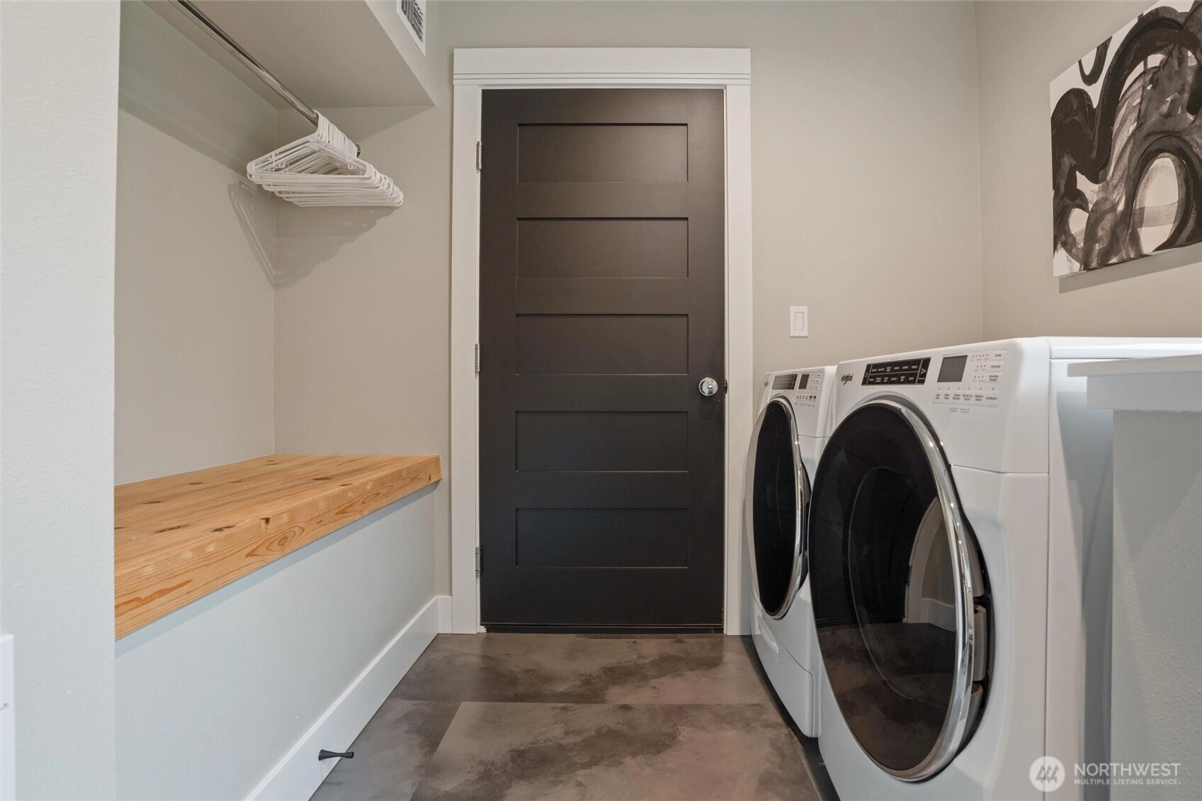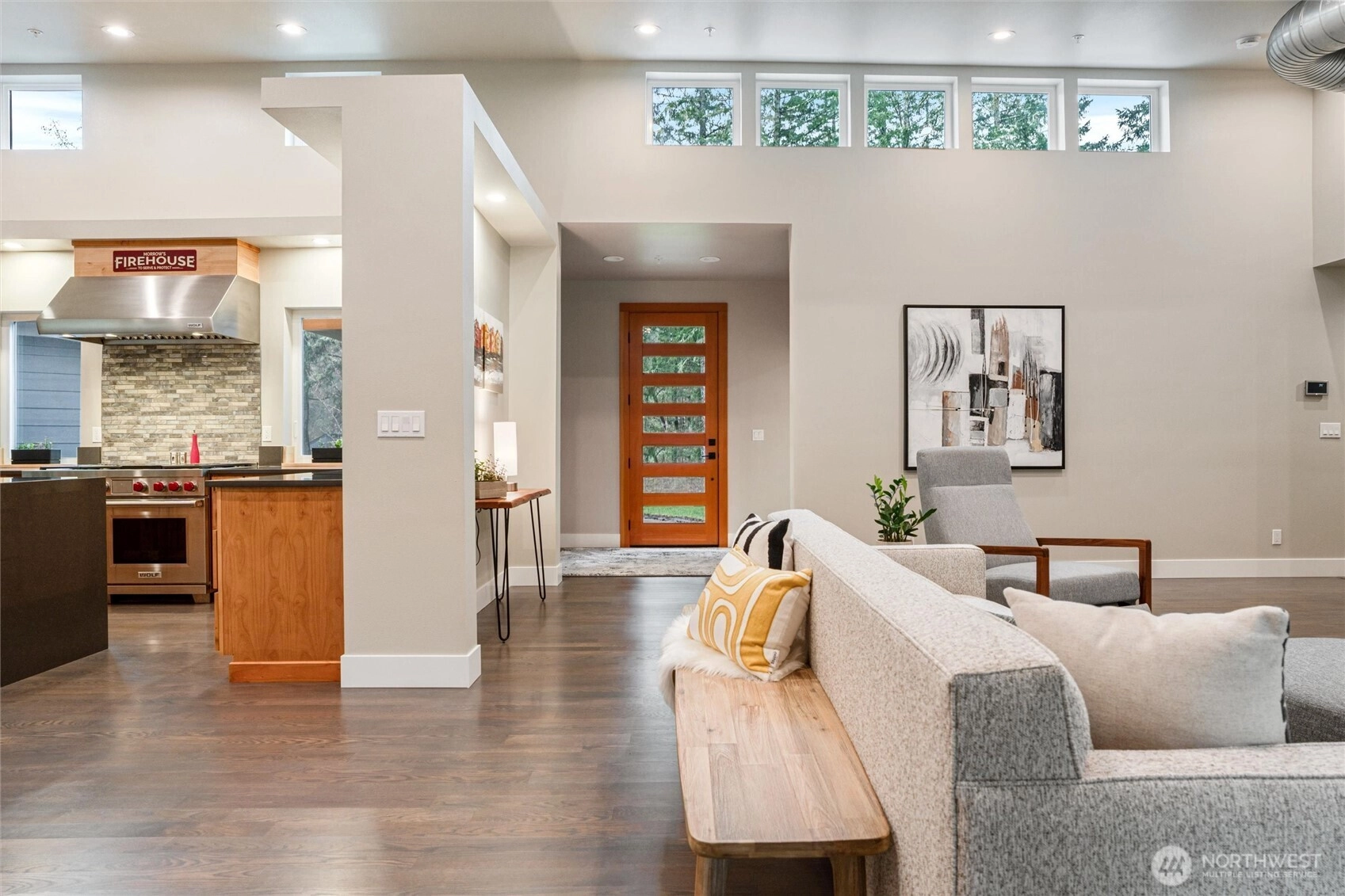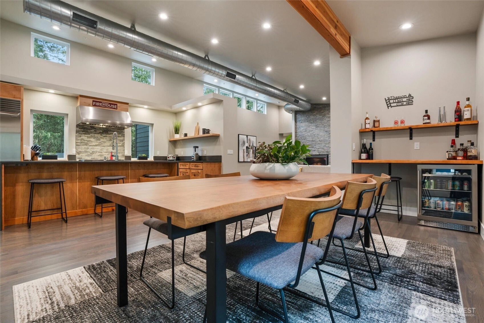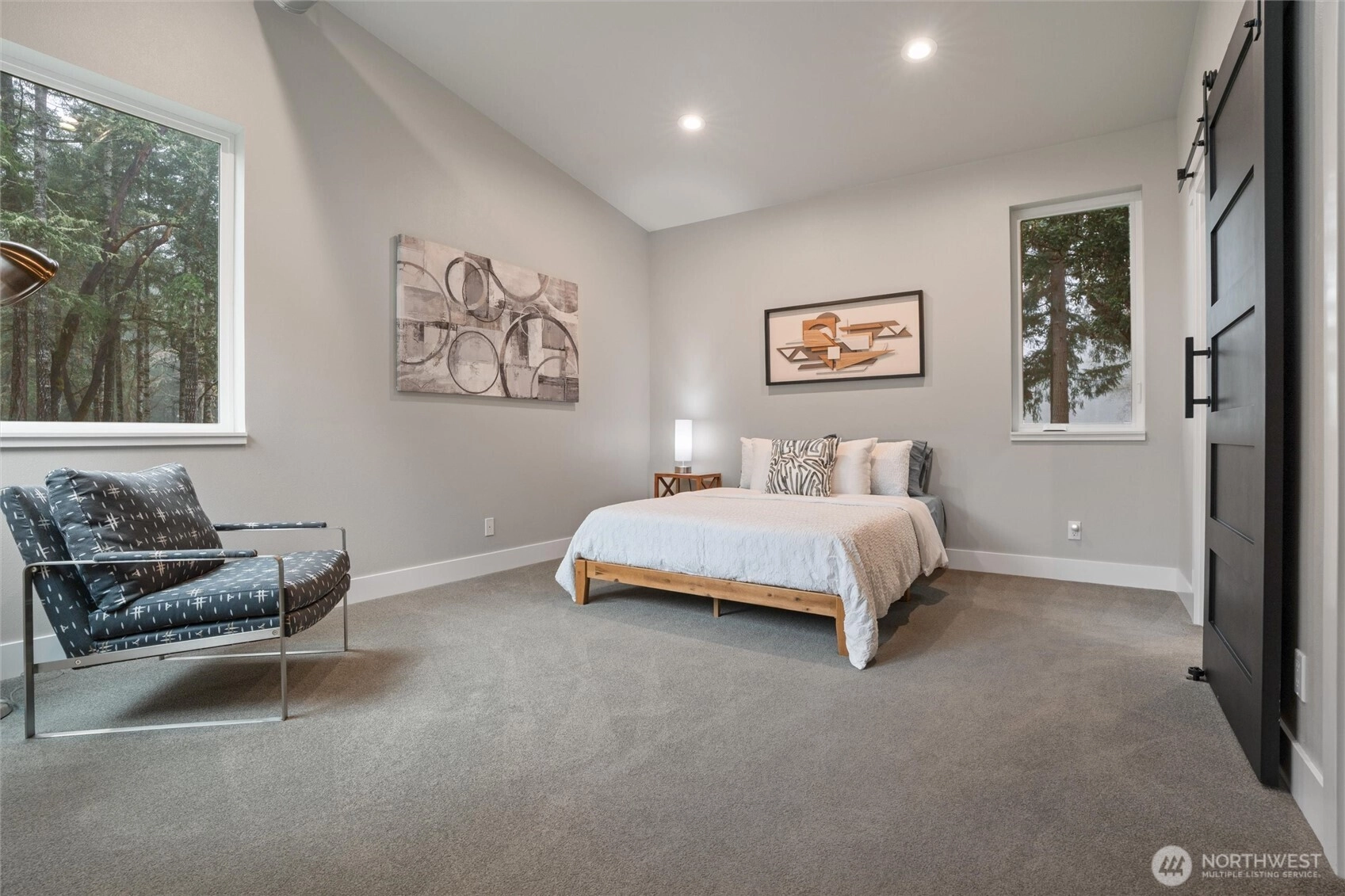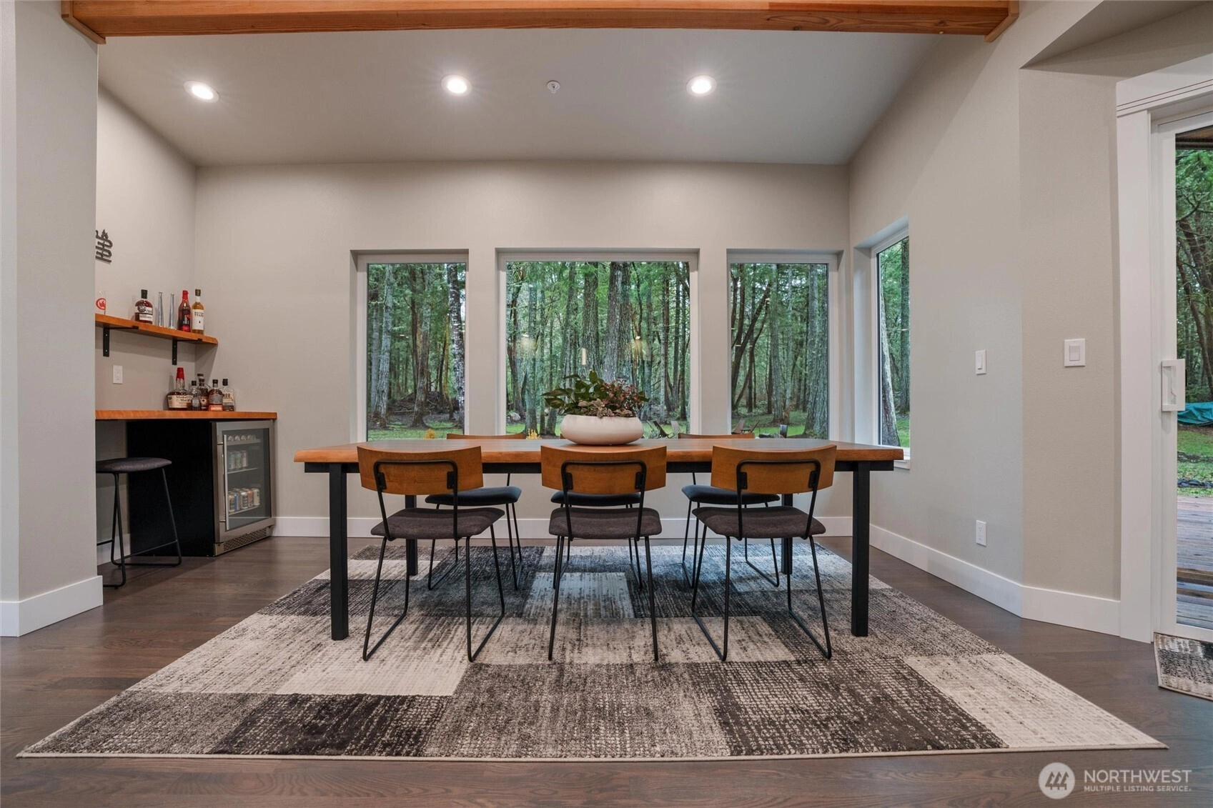 Custom architect-designed modern retreat on gated acreage in Longbranch. Designed by Mascord Design of Portland , this home blends modern, industrial, and rustic elements with exceptional privacy and livability—ideal for anyone seeking refined space in a peaceful Pacific Northwest setting. Features 3 private ensuites, with the primary suite thoughtfully separated to create a true owner’s retreat. Interior highlights include exposed spiral HVAC ducting, true white oak floors, solid hickory cabinetry, Wolf & Sub-Zero appliances, quartz countertops, and a striking stone fireplace. The open, flowing layout delivers elevated living designed for comfort, entertaining, and working from home. Exterior architecture showcases multi-textured cement siding with cedar accents, cedar tongue-and-groove soffits, and a standing seam metal roof. An oversized 1,100 sq ft three-car garage provides exceptional flexibility for storage, workshop space, or recreation. Gated entry, circular gravel driveway, stamped concrete apron, and a serene wooded setting complete the arrival experience. The acreage includes multiple architecturally cohesive outbuildings, including a large covered storage/shop for RVs, vans, equipment, or recreational toys, plus a separate well/pump structure with its own 200-AMP electrical service. Located approximately 25 minutes from town, this property offers a rare balance of seclusion, modern luxury, and accessibility. A unique opportunity to own a luxury home on acreage.