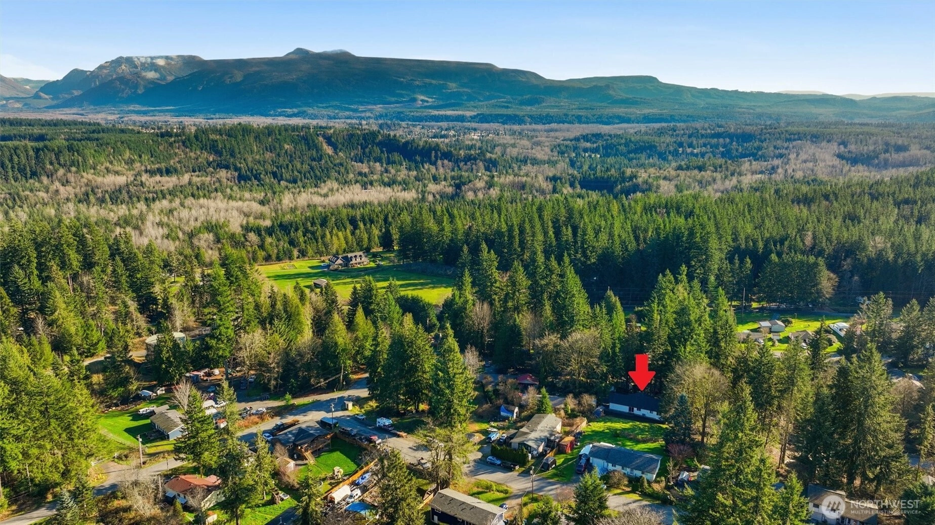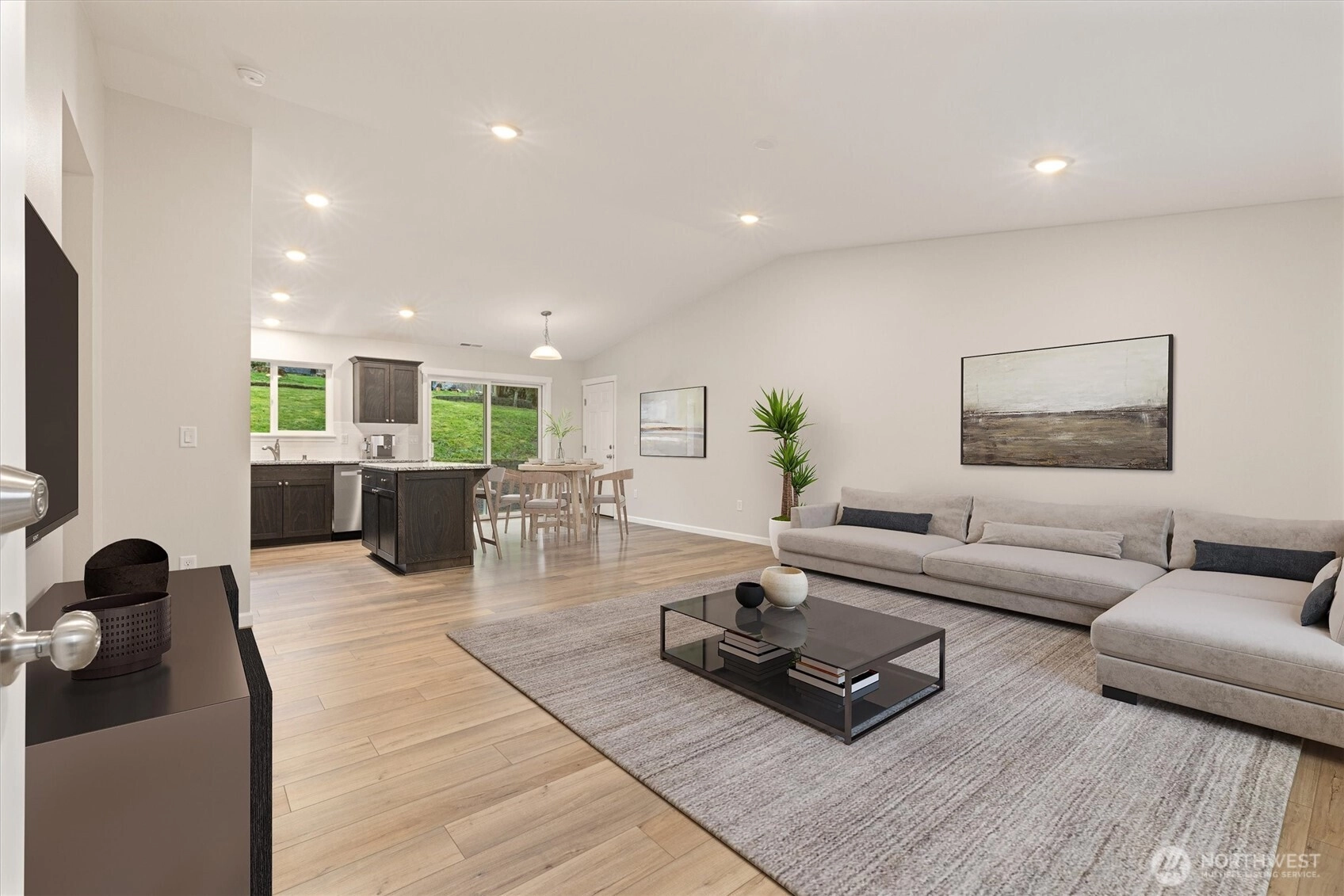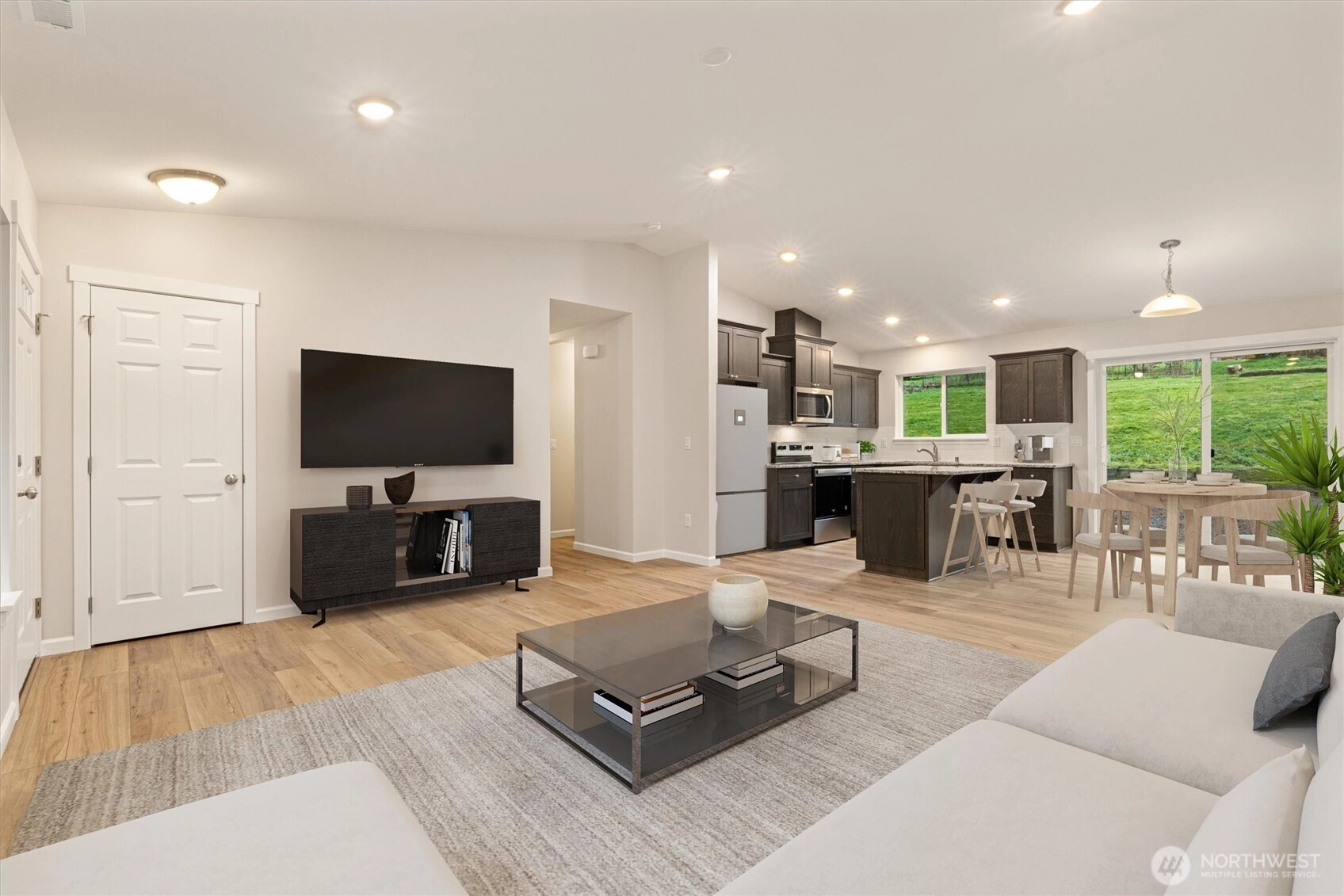 BRAND NEW IN PEACEFUL SETTING just outside of town! This spacious 3 bedroom, 2 bath, one-level home offers a vaulted, open floor plan with modern finishes, durable plank flooring, and abundant natural light. The stylish kitchen features dark cabinetry with soft-close drawers, stone countertops, stainless appliances, and a center island - perfect for everyday living or entertaining. ENERGY-EFFICIENT systems include forced-air heat, HEAT PUMP A/C, and a high-efficiency water heater. The attached 2-car garage offers panel capacity for EV charging or a generator, + tall ceilings for potential overhead storage. Transferable 2-10 BUILDER WARRANTY, for added peace of mind. Set on an 11,761 sq ft lot, you’ll enjoy more outdoor space than most new construction homes, with mature trees, room to garden, and a quiet, tucked-away feel. Quaint community with a low-key HOA that maintains the neighborhood water system and park. Just a short drive to Monroe shops and restaurants with multiple routes of access. MOVE-IN READY and waiting for you to make it your own! (virtually staged)