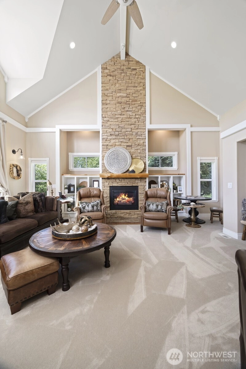 Refined 5-Acre Estate with Luxury Living & Resort-Style Amenities. This custom-crafted home delivers timeless quality, thoughtful design, and room to breathe. Offering 4 spacious bedrooms, 3.5 baths, and (two primary suites with one on each level, each with heated bathroom floors), this home is built for comfort and flexibility. Ten-and twenty-foot ceilings, wainscotting, crown molding, and vaulted spaces elevate the craftsmanship throughout. The gourmet kitchen anchors the home with granite countertops, maple cabinetry, Jean-Air appliances, double ovens, gas range, wine and beverage fridges, walk-in pantry, and hardwood floors-ideal for entertaining or everyday living. Gather in the stately dining room or relax in the vaulted living room with floor-to-ceiling stone fireplace, built-ins, and wet bar. Additional features include air conditioning, tankless hot water, whole-house water purification, built-in vacuum, alarm system, generator wiring. The oversized 3-car garage is complemented by a fully insulated 42x48 shop with multiple height tall doors, RV power, welder hookup, wood stove, and new LED lighting-perfect for hobbies & storage. Enjoy outdoor living with covered patio and built-in grill, granite counters, and cedar deck with Bullfrog spa. Located in a gated community with private access to Lake Terrell, this property offers privacy, quality, and lifestyle-inside and out.
