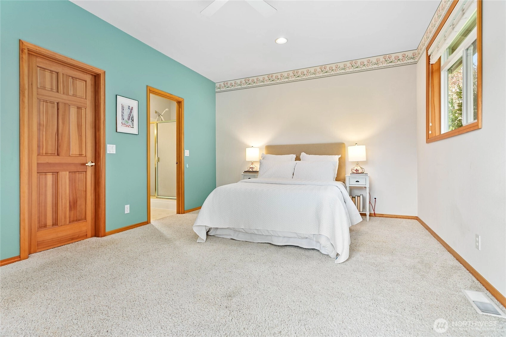 Located in desirable Geneva Park, this no stairs rambler offers comfort, privacy, and an unbeatable Bellingham lifestyle. Proudly owned by only one owner, this well cared for home features 4 bedrooms, 2 baths, and 2,184 sq ft, and sits on a half acre lot backing to trees and park for a peaceful, private setting. The thoughtful floor plan provides great flow and abundant natural light throughout. Hardwood floors, plantation shutters, and a cozy gas fireplace add warmth and character. The spacious and open kitchen and living areas open to a large deck perfect for entertaining, plus a private deck off the primary bedroom. Enjoy garden space, mature landscaping, and room to relax outdoors. The generous sized 2 car garage includes a workbench and ample storage. Ideally located near Lake Whatcom, Galbraith Mountain trails, Sudden Valley, downtown Bellingham, Whatcom Falls Park, and easy I-5 access. A rare opportunity for single level living in one of Bellingham’s most sought after neighborhoods.