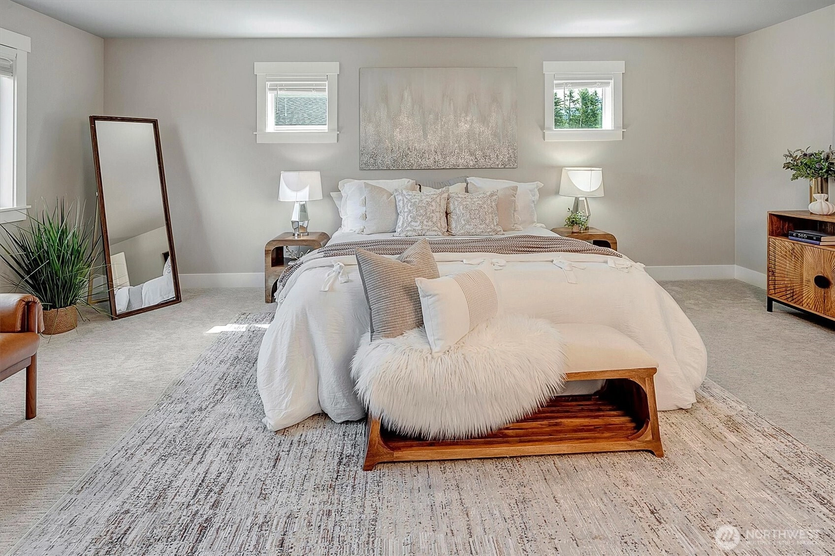 Discover this stunning, better-than-new corner lot home with views of Mt. Si! This exceptional 2 story residence with a spacious 2 car garage offers versatile flex spaces on both levels, perfect for work, play or relaxation. Sun-drenched rooms showcase a gorgeous chef's kitchen with a gas range and high-end finishes. Enjoy seamless open-concept living with a cozy gas fireplace with easy access to a brand-new entertainment sized deck overlooking a generous backyard. Ideal for both lively entertaining and peaceful relaxation. This home offers a main level guest suite, plus a dedicated private office. Upstairs: retreat to a luxurious primary suite with a spa-inspired bath and walk-in closet, complemented by two additional bedrooms, a spacious family room and an additional guest room. SMART-wired, a wine fridge, tankless water heater, and central A/C, Perfectly situated next to a community park! Just minutes to the acclaimed Snoqualmie Valley School District, I-90, restaurants & shopping. This location truly has it all!.