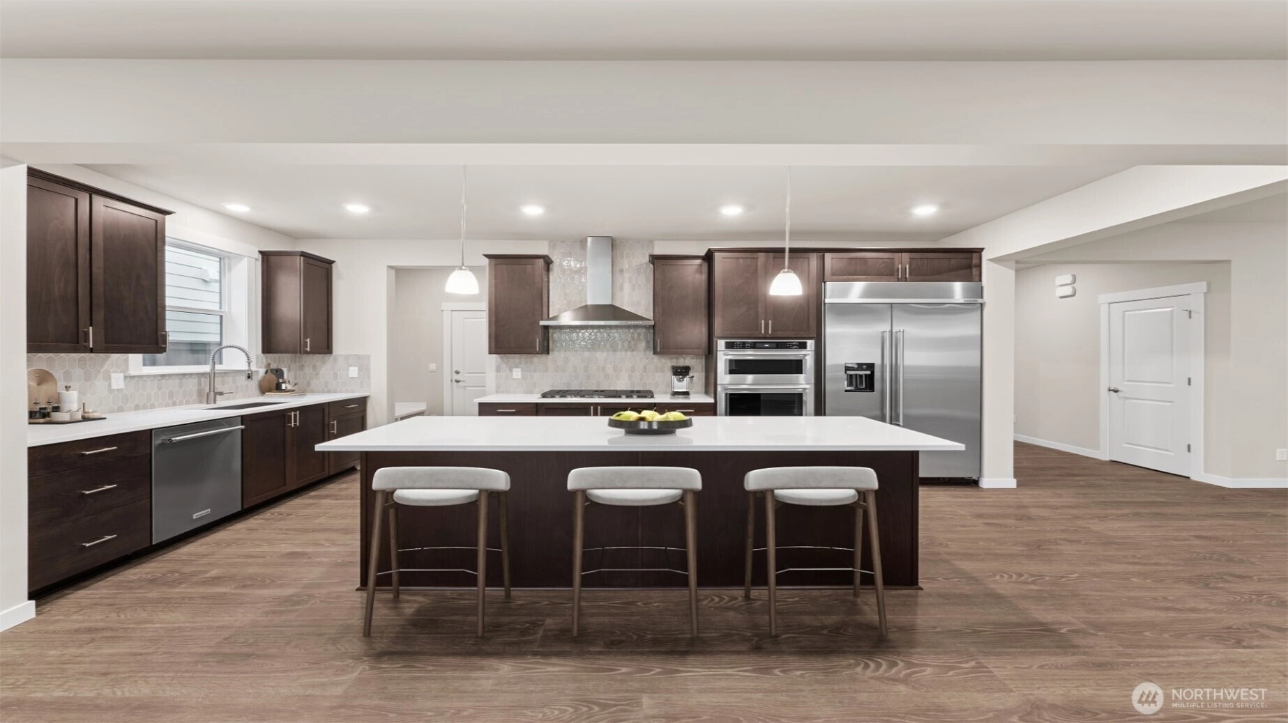 Welcome to Parkside at May Creek in Newcastle by D.R. Horton. North facing BRENTWOOD plan is a very open layout W/ the great room opening to the kitchen w/breakfast bar & dining room. Kitchen includes quartz counters, GAS COOKTOP, KitchenAid appliances incl. 48" built-in fridge. Unique floorplan w/ 2 entry doors (North/South facing), upper floor boasts primary suite w/private bath & walk-in closet, EV charging, full fencing, built-in smart home features. Community is conveniently located in Newcastle minutes from Lake Washington. Park area, playground & rock-climbing equipment, picnic pavilion, & walking trails are a must see! Buyers must register their broker on site at their first visit. Book a private tour and experience beautifully furnished BRENTWOOD model in person.