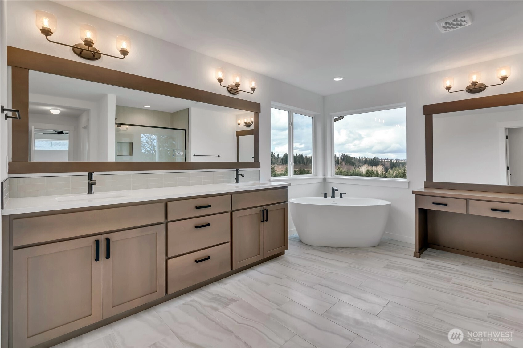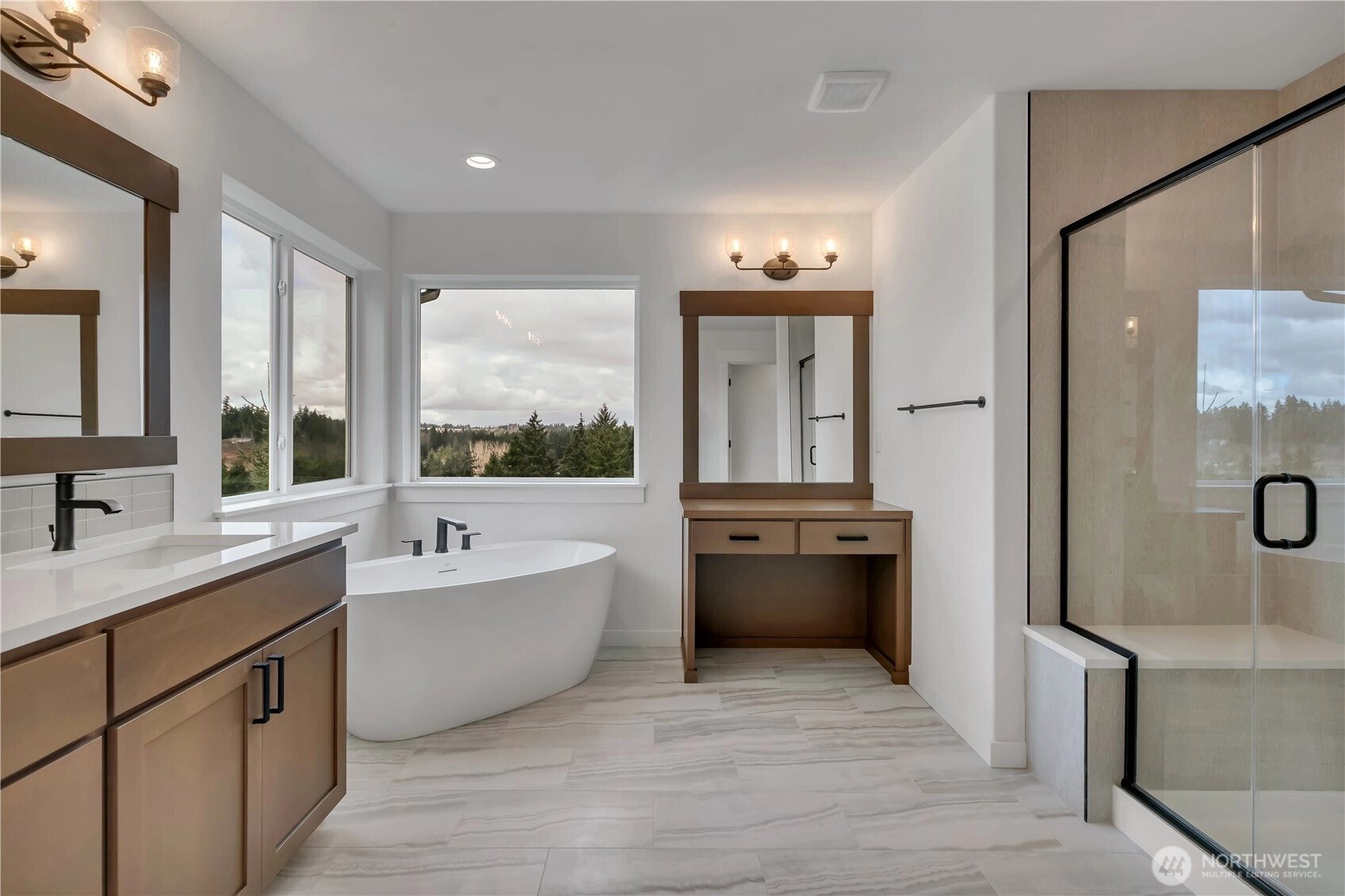 Only one of its kind at Dell Vista by HC Homes - This exceptional 3,830 SQ FT home is the only home available featuring a fully finished daylight basement! Thoughtfully designed w/ refined craftsmanship throughout, the main level welcomes you w/ luxury plank vinyl flooring that flows seamlessly through the entry, kitchen, dining, & family room, creating a warm & cohesive living space. A highly desirable private mini-suite w/ a ¾ bath & dual sinks offers the perfect setup for guests or multi-generational living. At the heart of the home, the gourmet kitchen impresses w/ custom cabinetry, an oversized island, stainless steel appliances, & a premium refrigerator/freezer combination—ideal for both everyday living and effortless entertaining. Upstairs, retreat to the expansive primary suite featuring dual closets & a spa-inspired bath complete with a freestanding soaking tub, dual vanities, and a private water closet. A spacious bonus room provides flexible space for a media room, home office, or play area. The fully finished daylight basement expands your living options even further, offering a generous living room and rec room with a slider leading to a covered outdoor patio, plus an additional bedroom and ¾ bathroom—perfect for extended stays, hobbies, or entertaining. Additional highlights include professionally landscaped front and rear yards with backyard fencing, an energy-efficient heat pump for year-round comfort, and a rare three-car garage. Truly a unique opportunity!